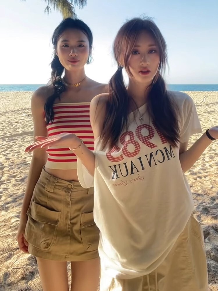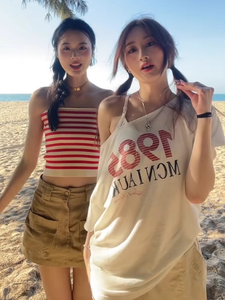 - 【包肩包领】夏日多巴胺穿搭恤美式短款辣妹修身