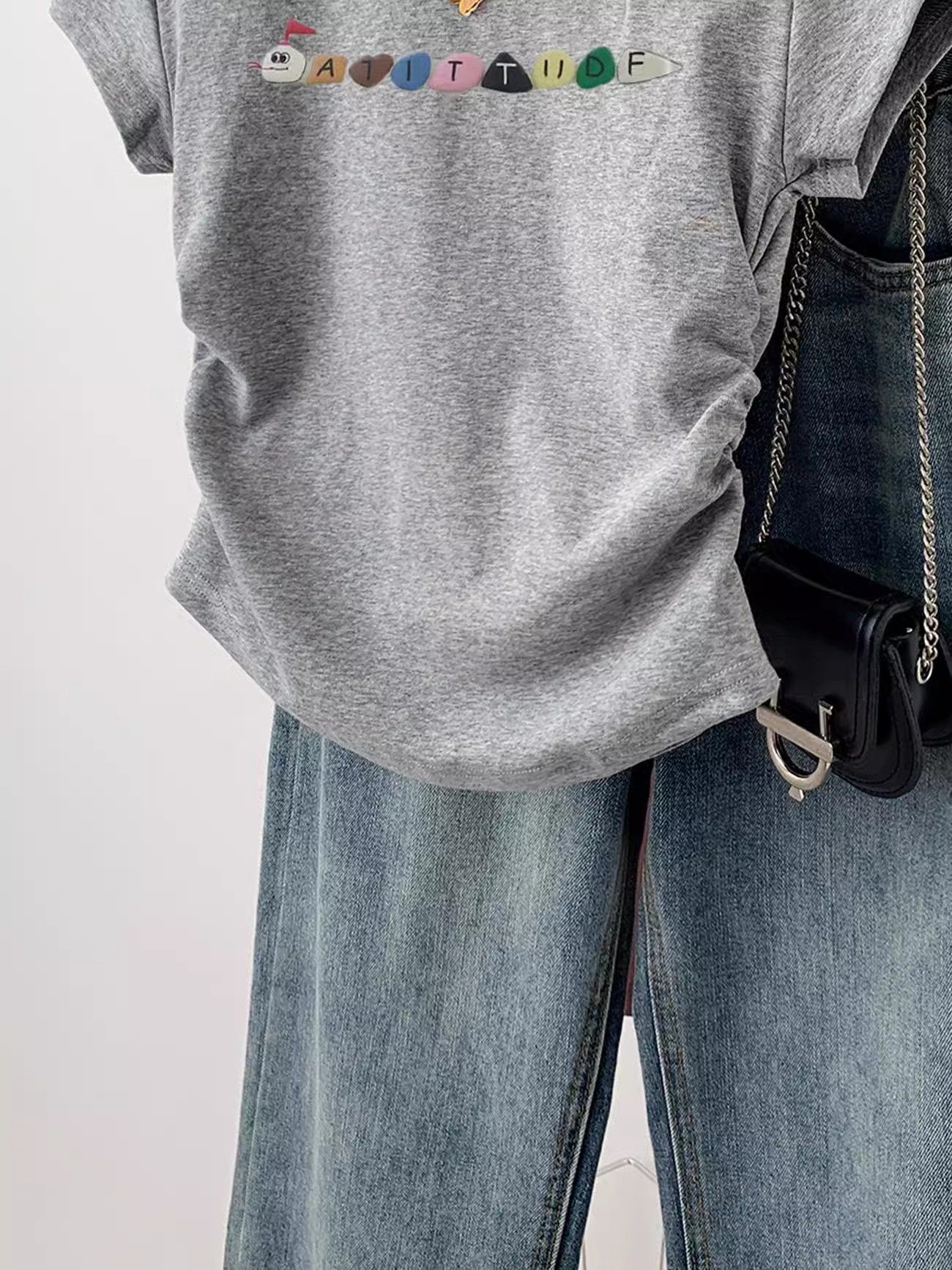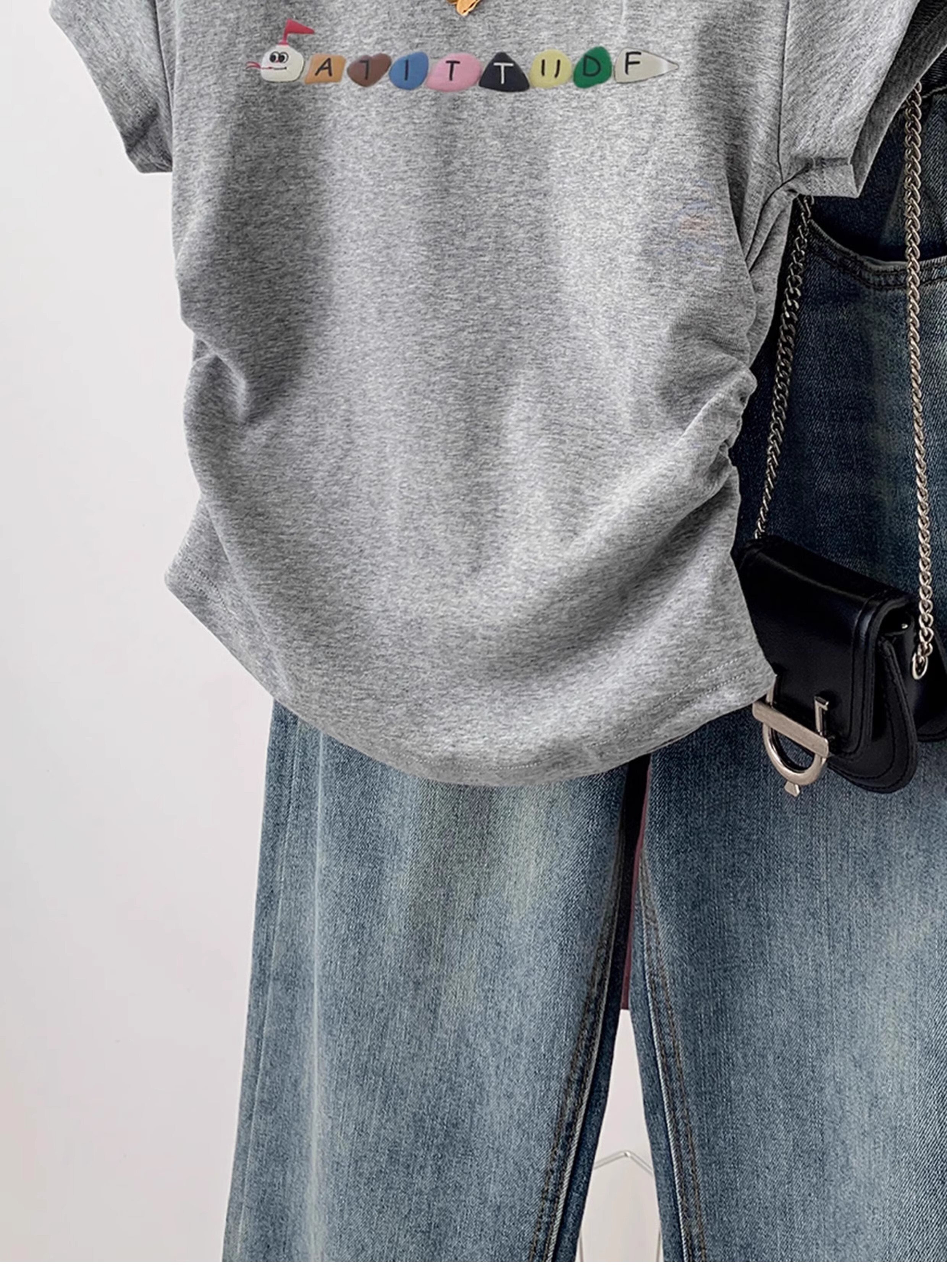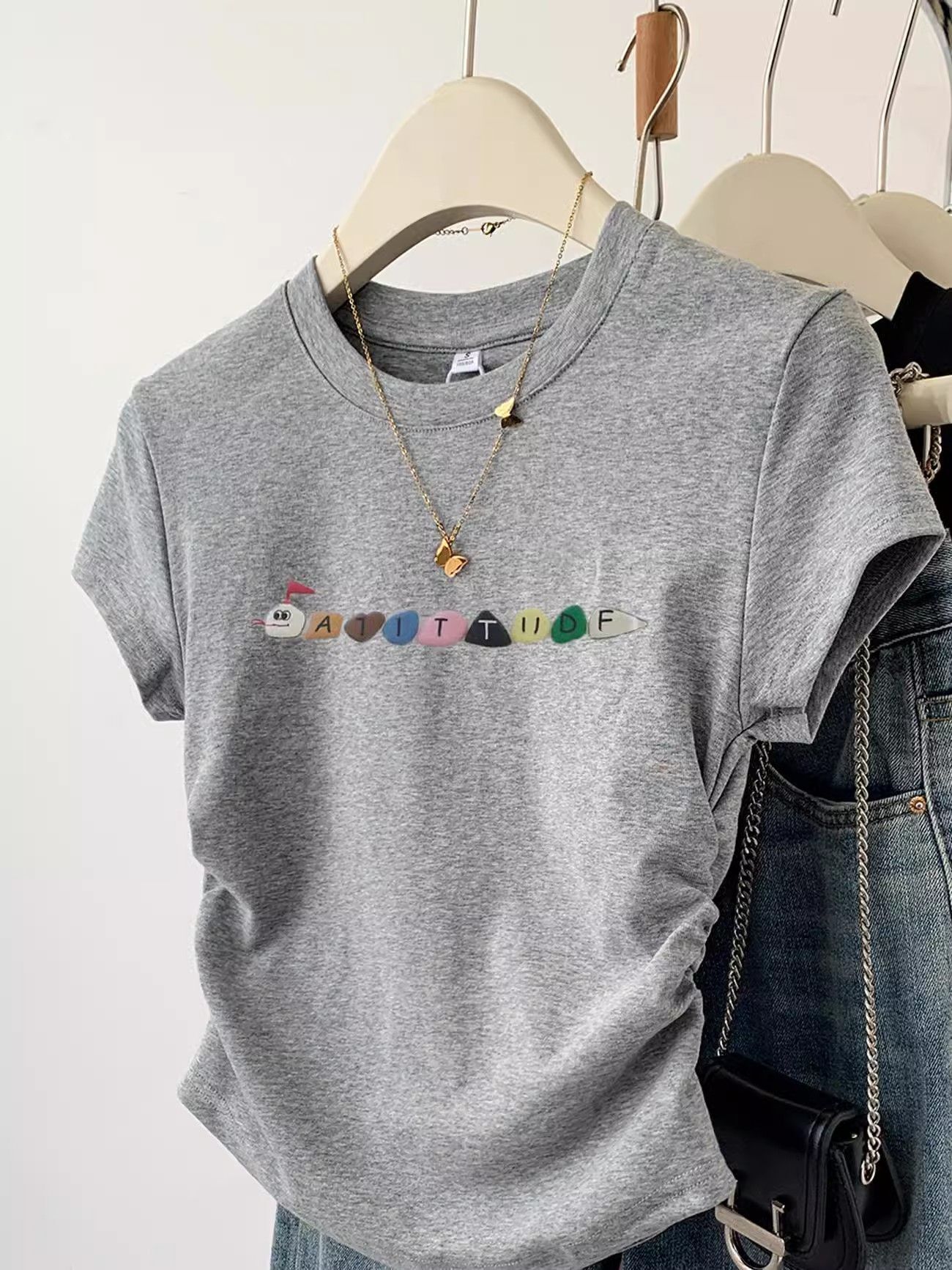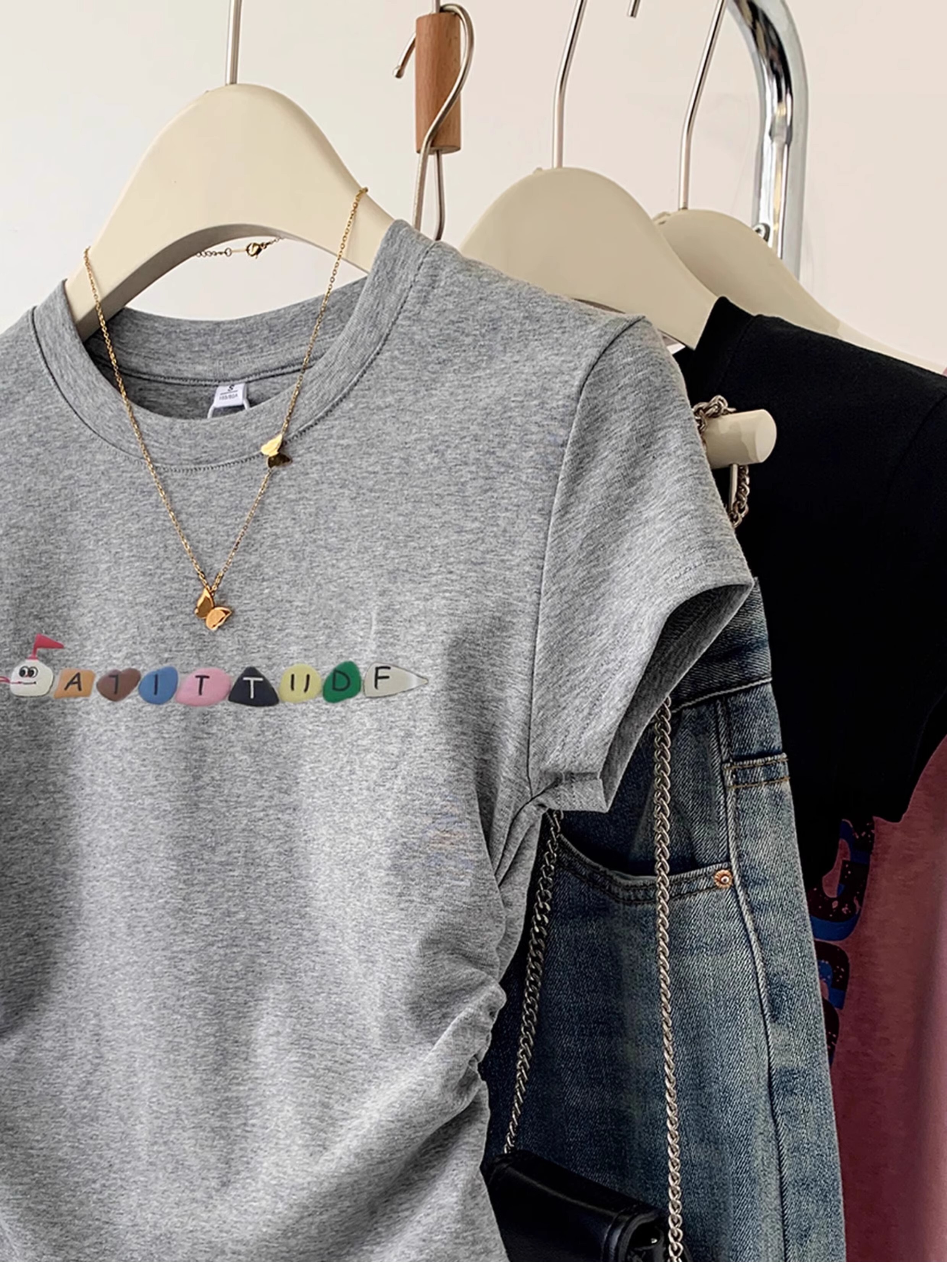 • 1*1纯棉 高弹力】褶皱收腰小飞袖短袖t恤女夏季新款修身T恤