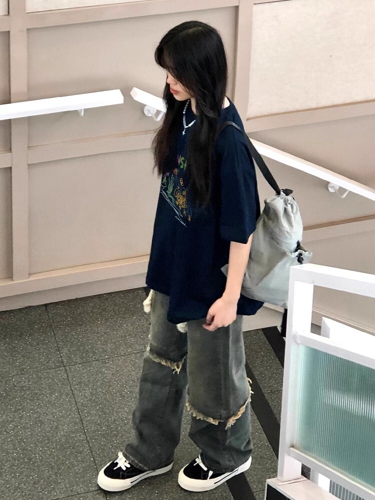 • 高品质纯棉200克精梳紧密100%棉宽松短袖t恤女
