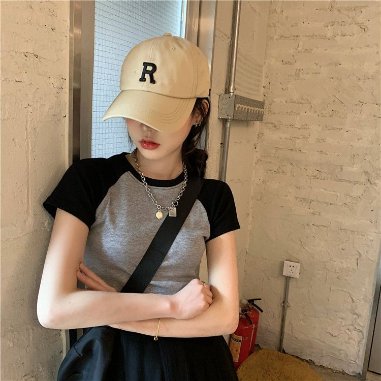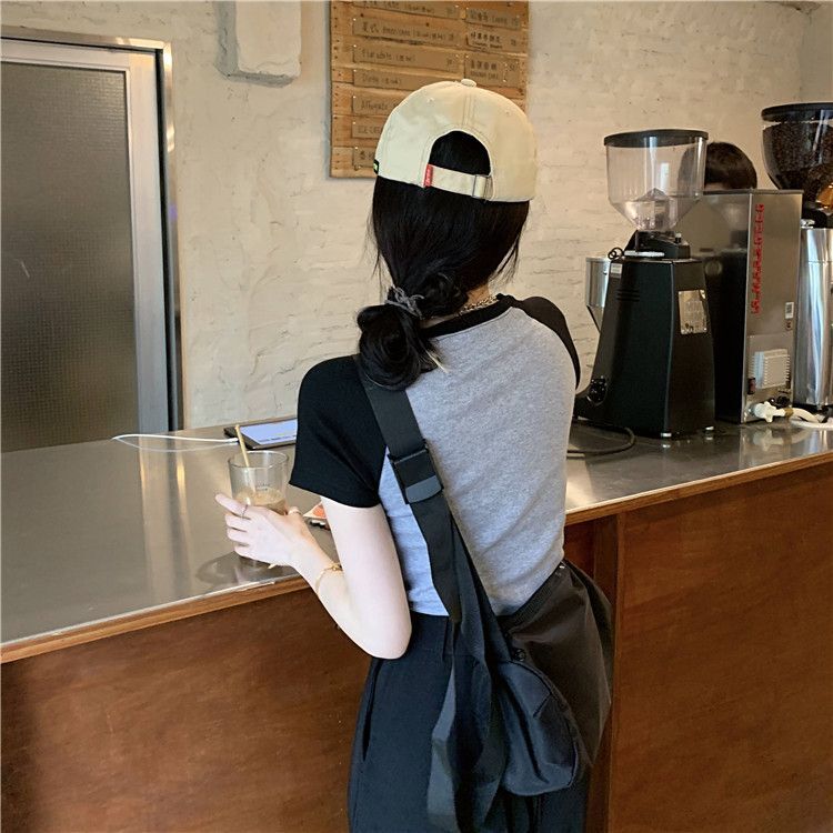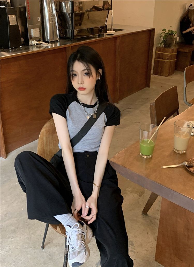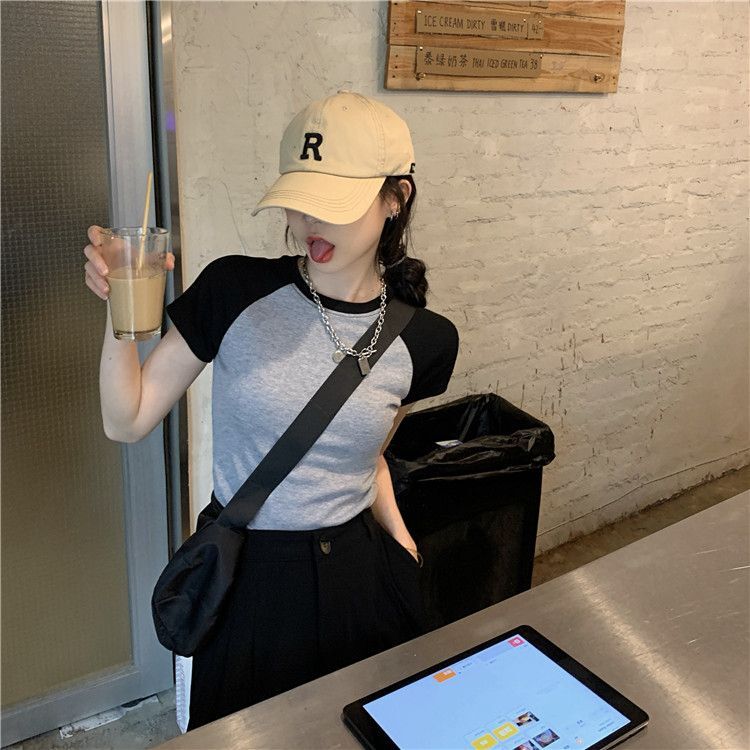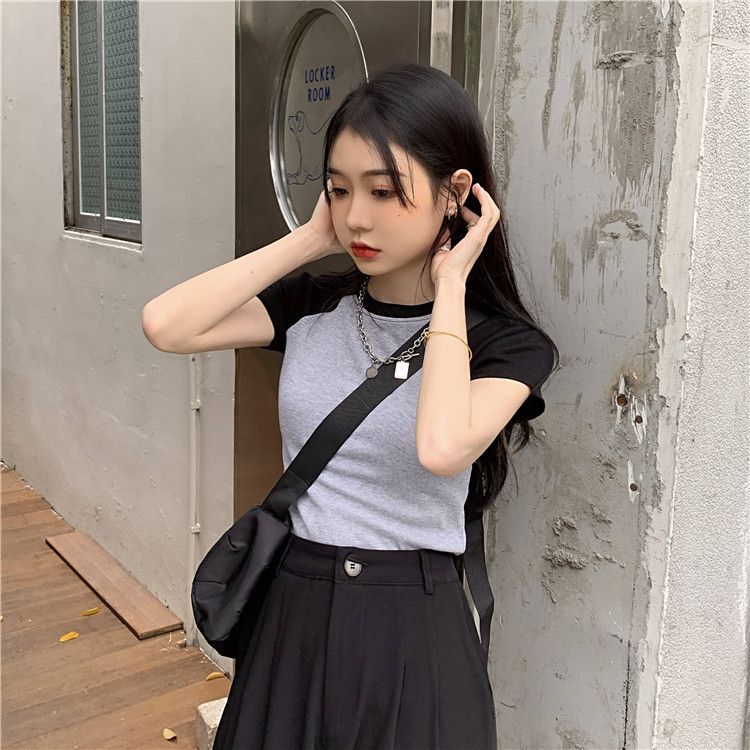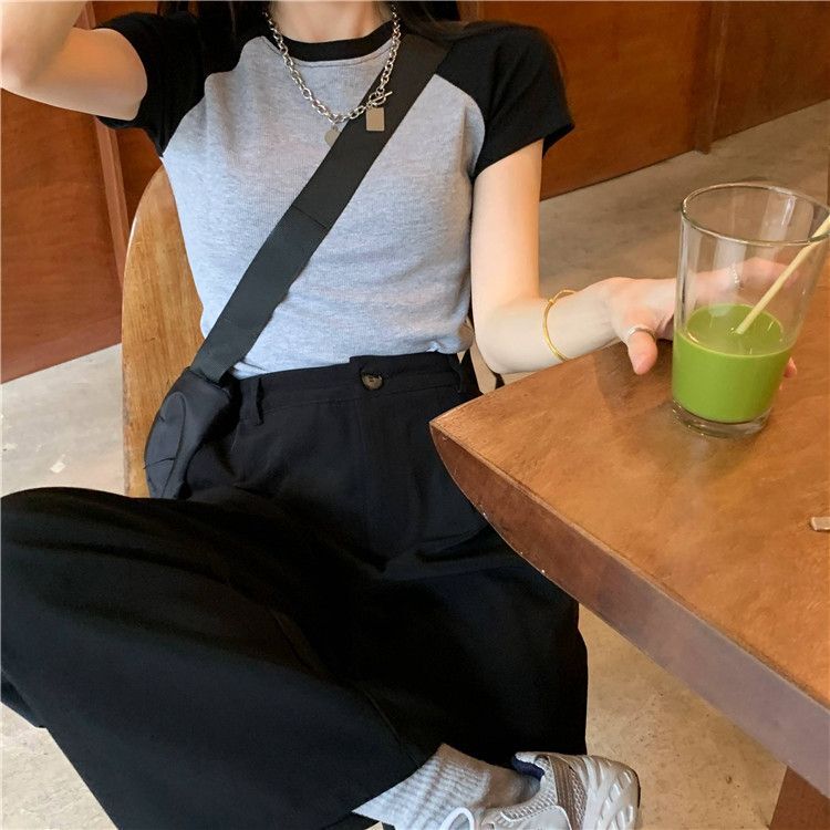 - 1*1纯棉 高弹力新款女三条杠条纹设计感上衣