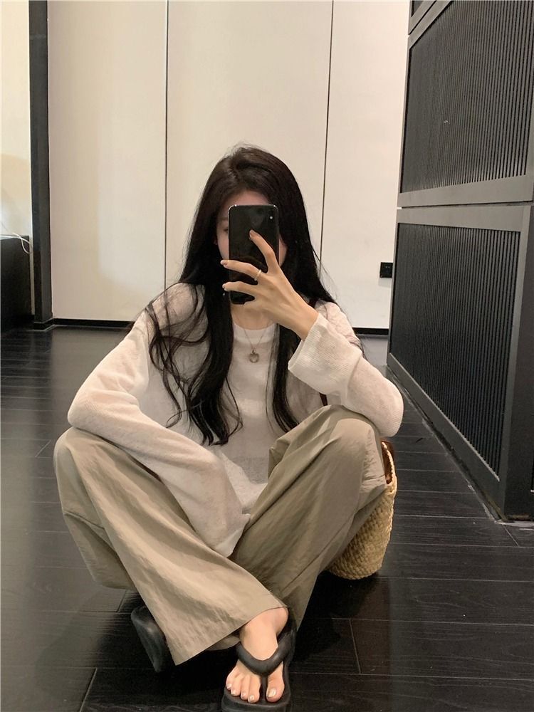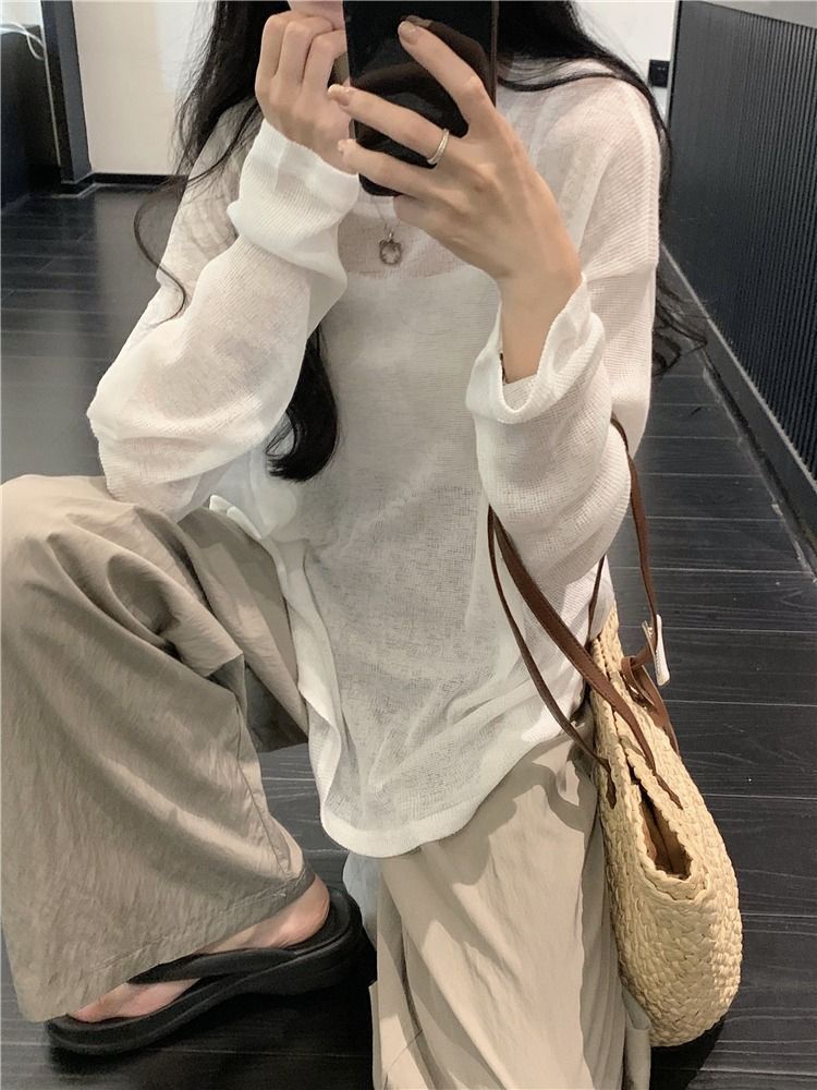 - 1*1纯棉 高弹力新款女三条杠条纹设计感上衣