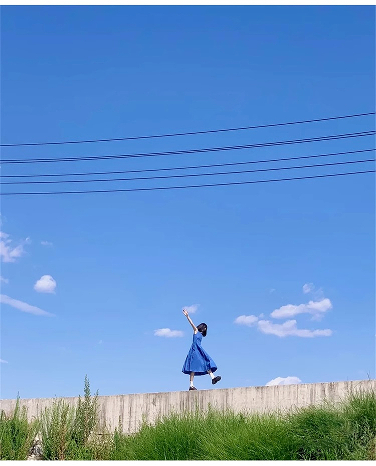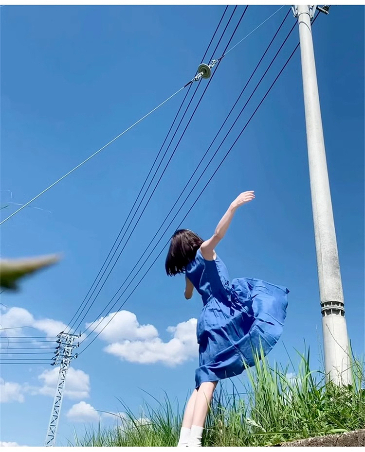 • 2025新款小个子法式无袖连衣裙子夏季女装海边度假蓝色长裙吊