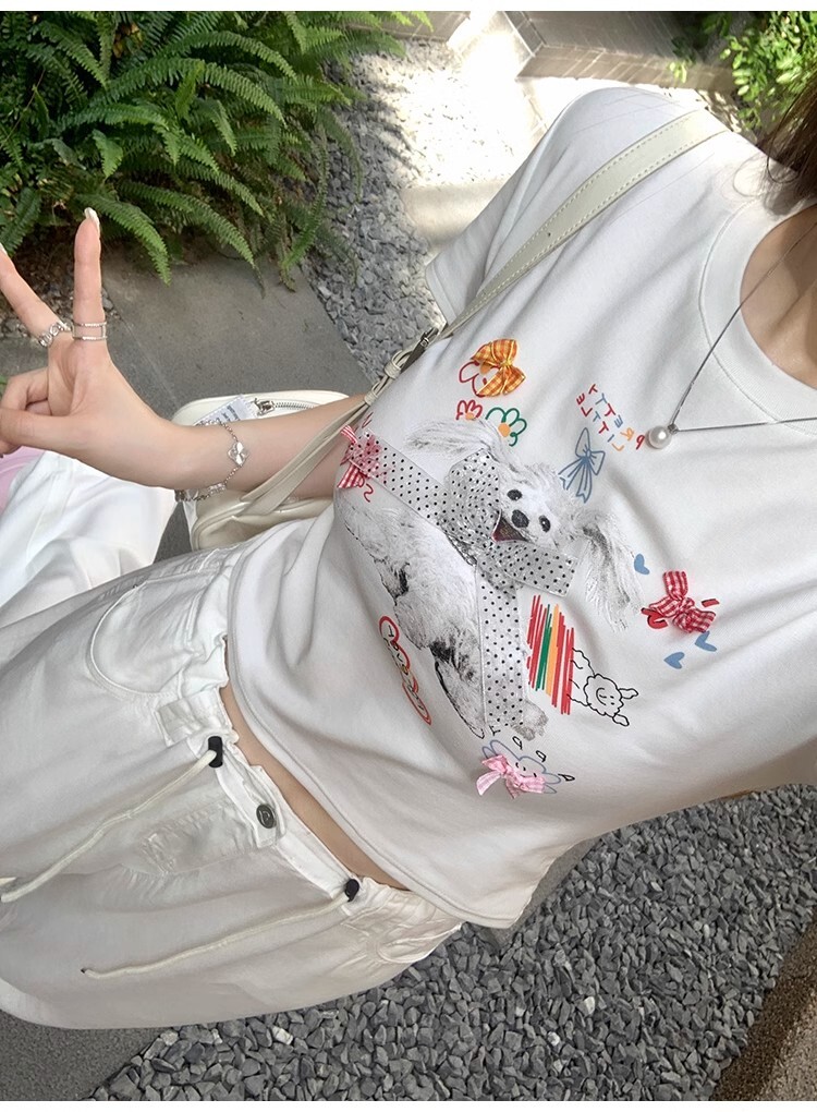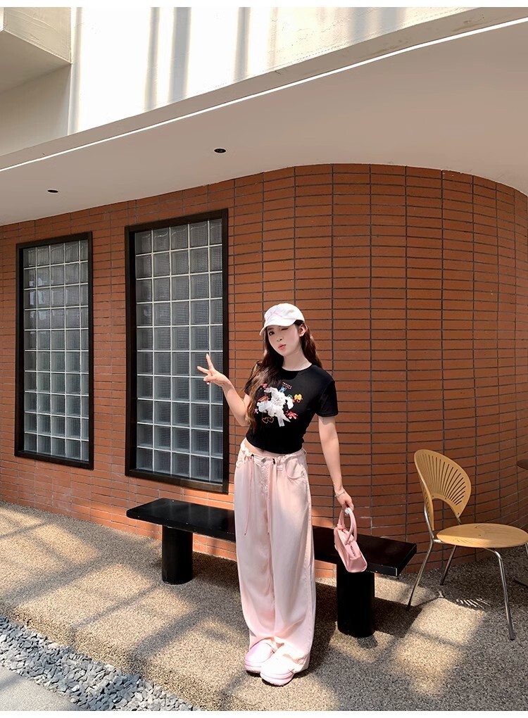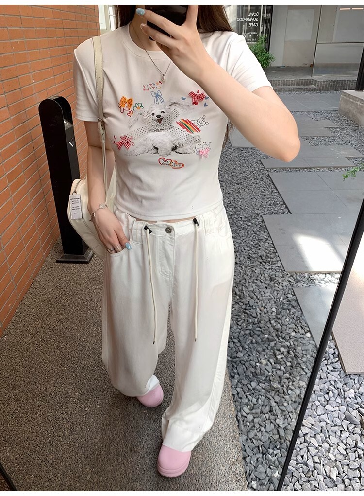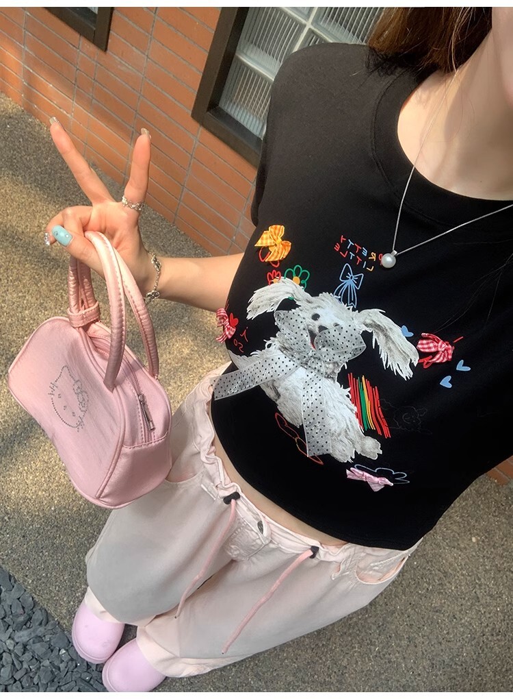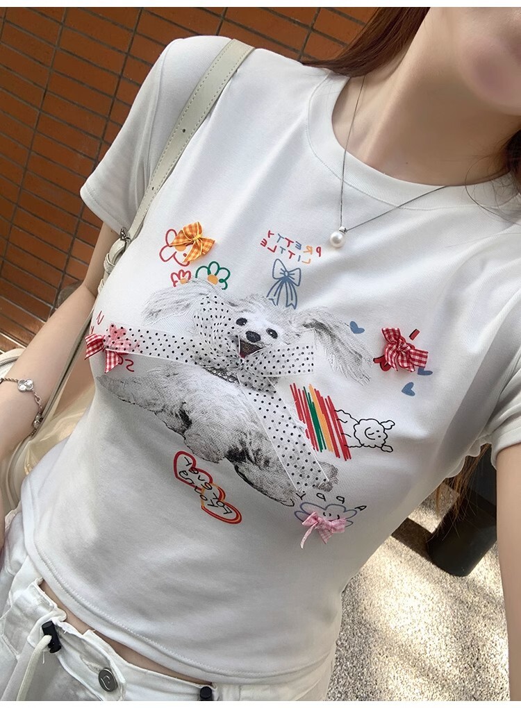 1*1纯棉 高弹力新款夏季短袖短款搭配高腰裤修身显瘦洋气上衣