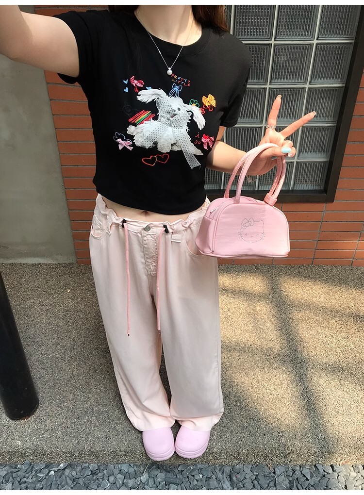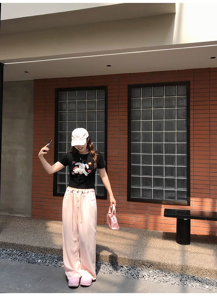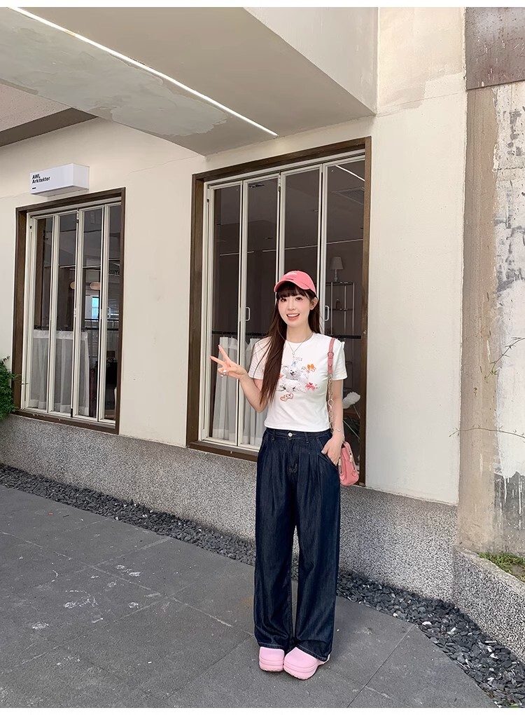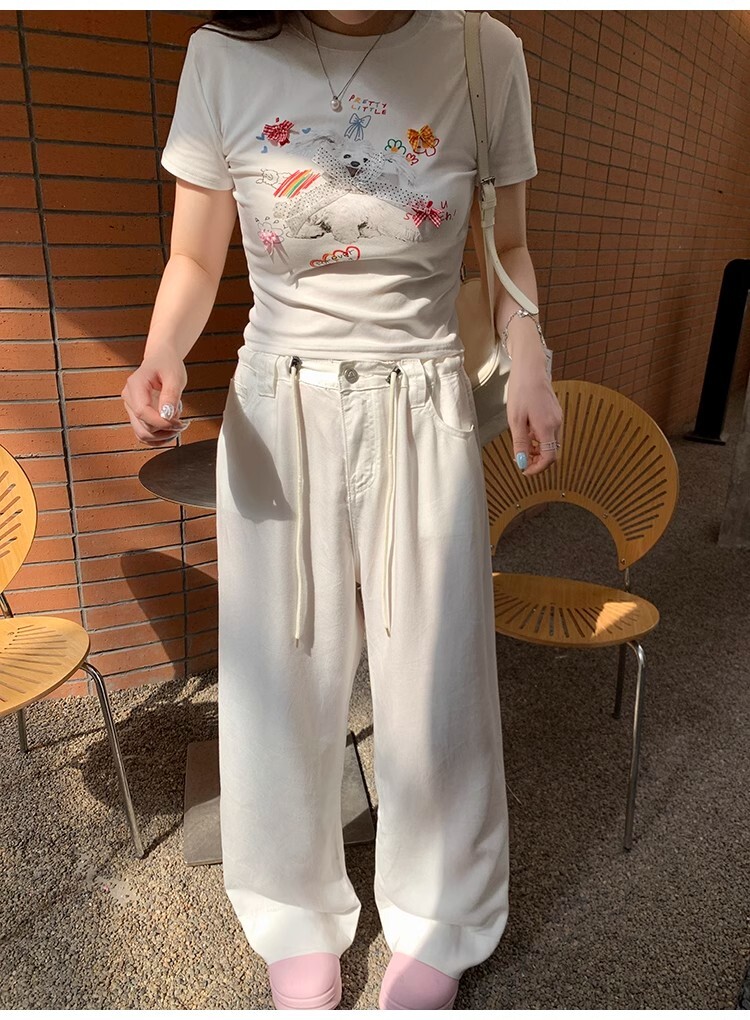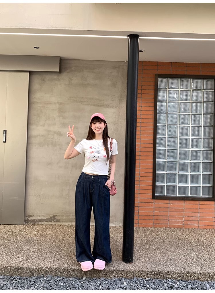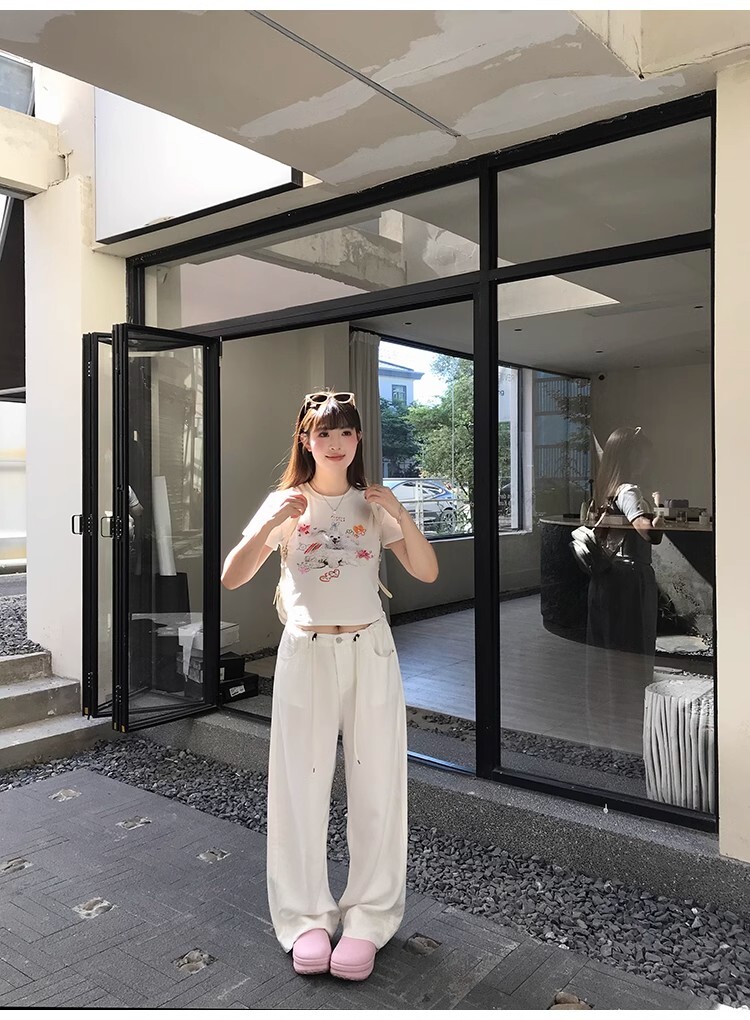 1*1纯棉 高弹力新款夏季短袖短款搭配高腰裤修身显瘦洋气上衣