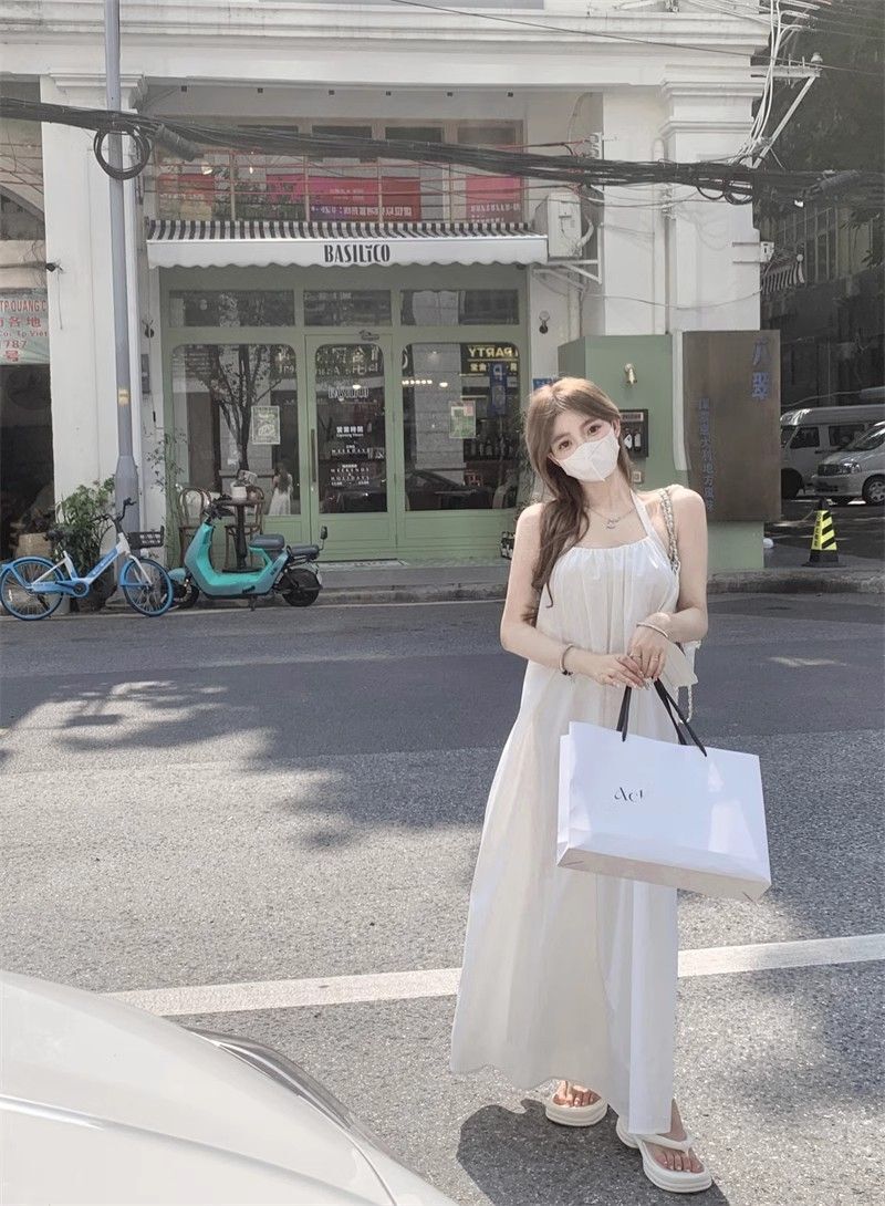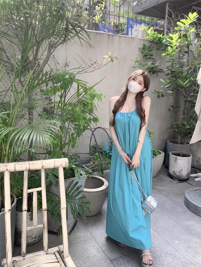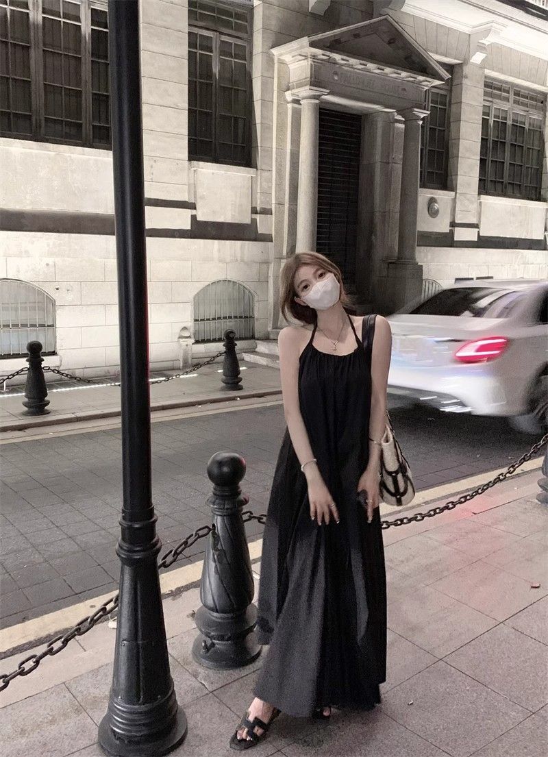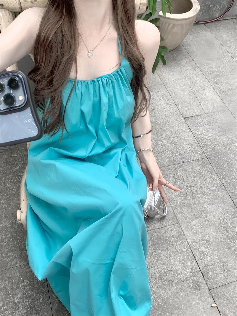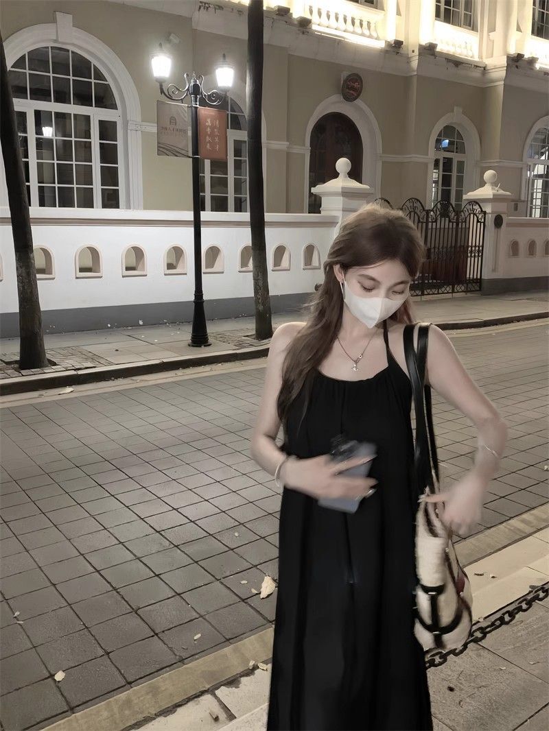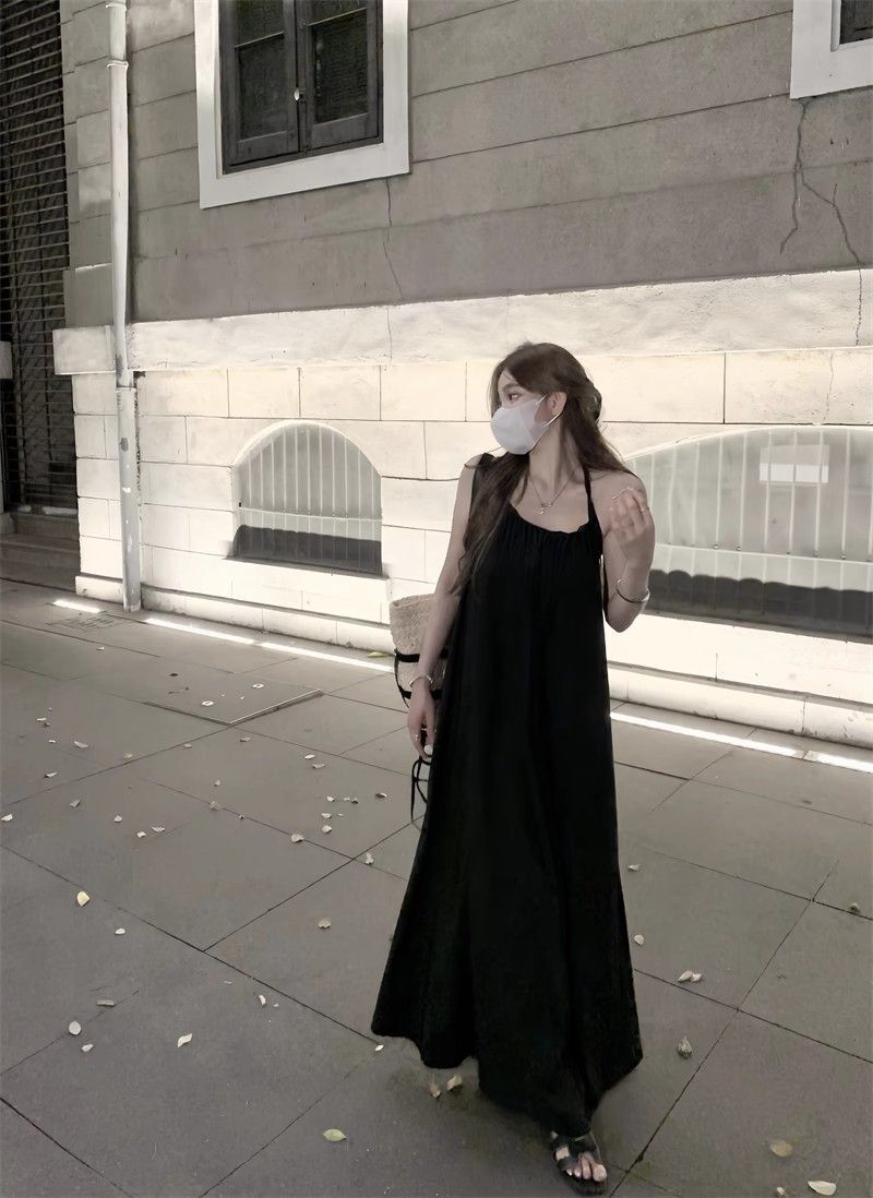 - 韩系假两件碎花吊带长裙修身收腰显瘦垂坠连衣裙
