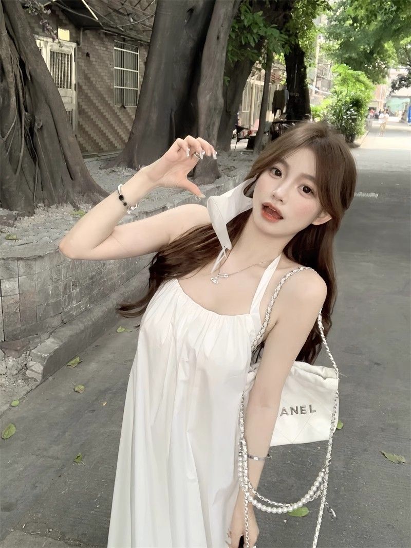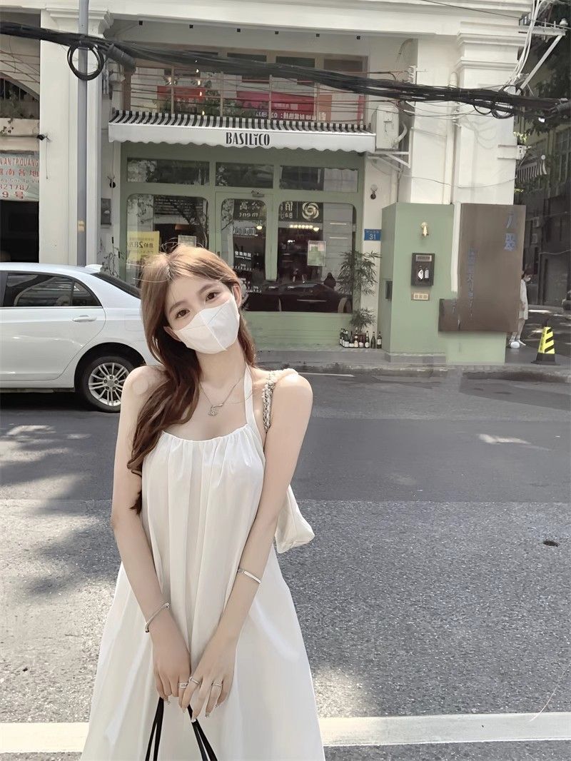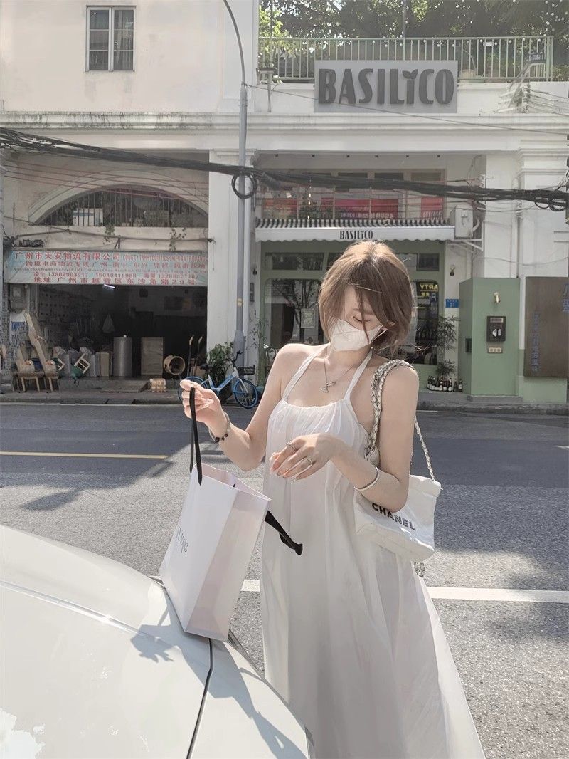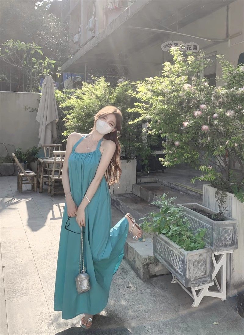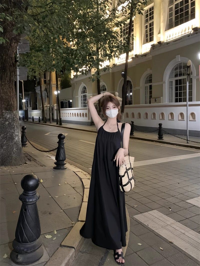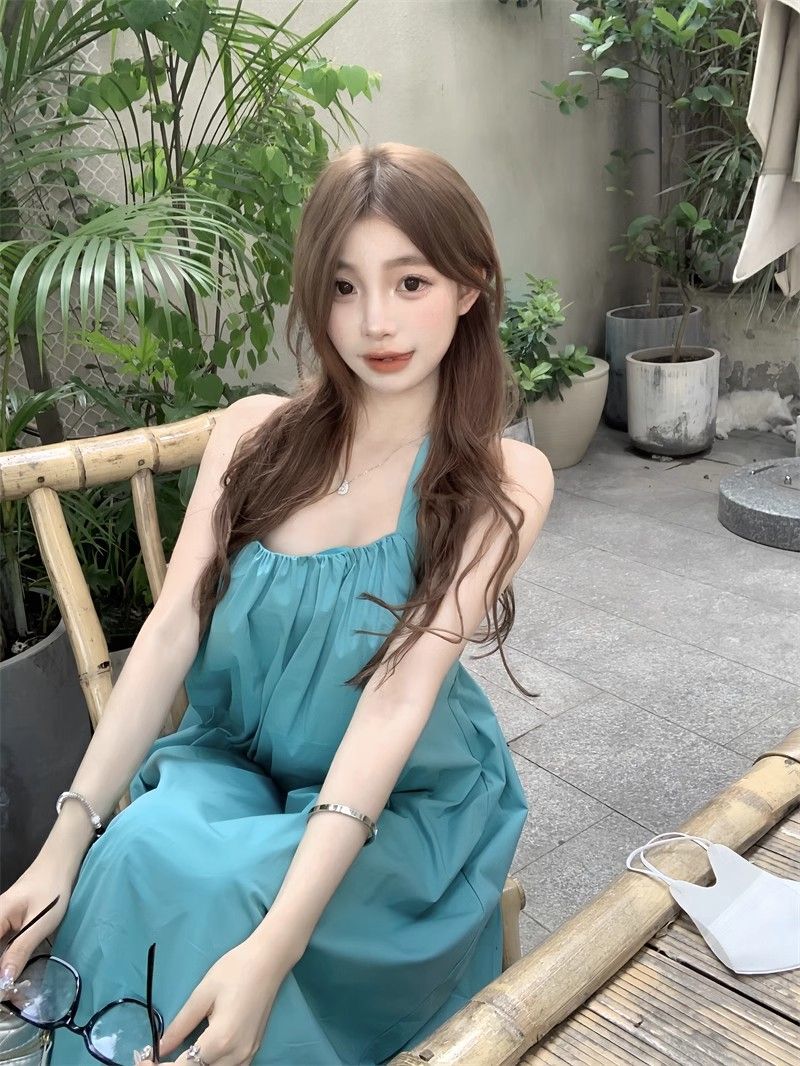 - 韩系假两件碎花吊带长裙修身收腰显瘦垂坠连衣裙