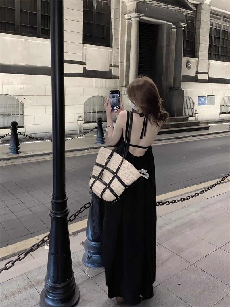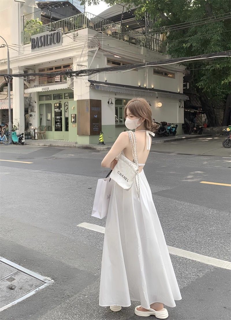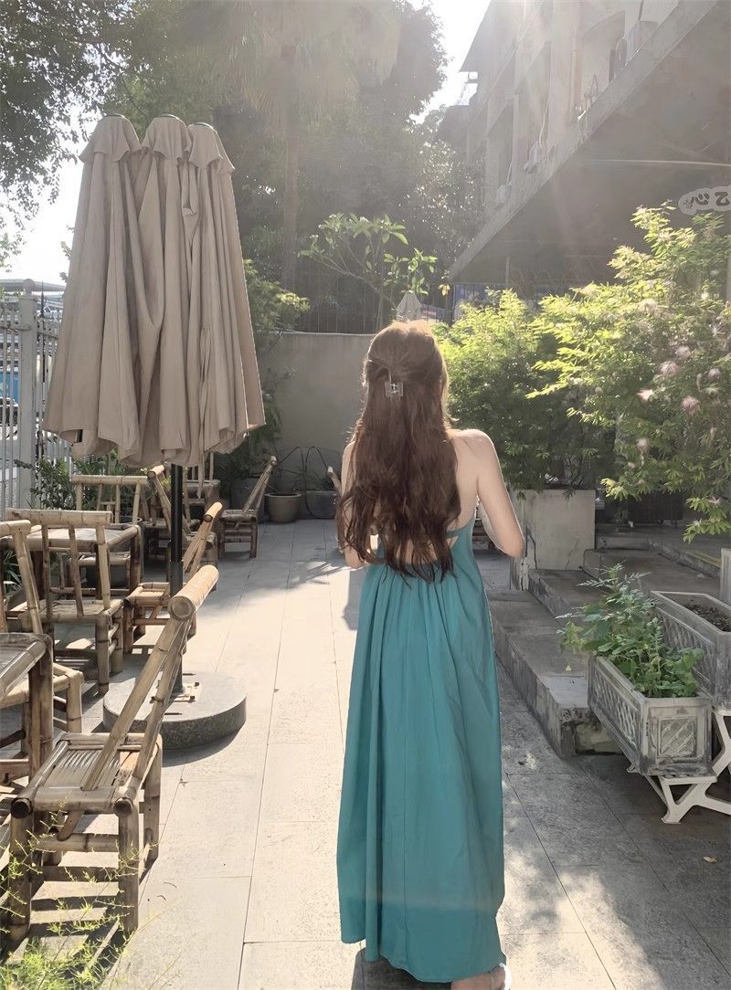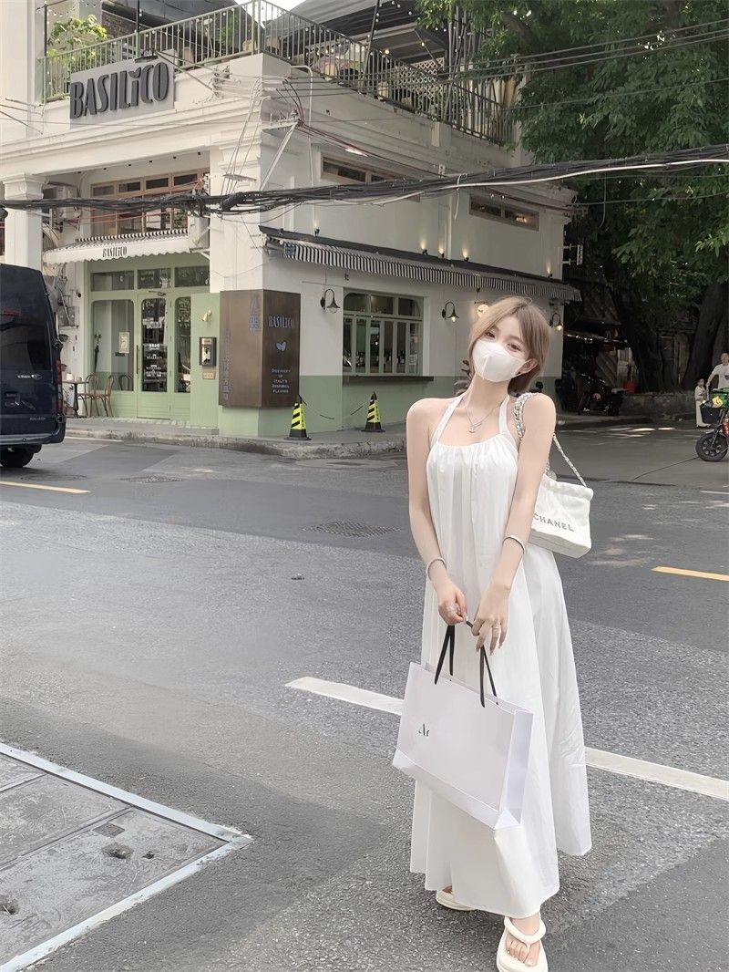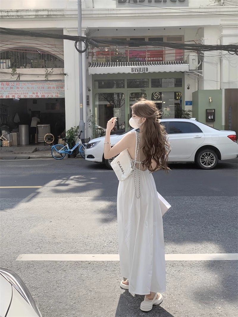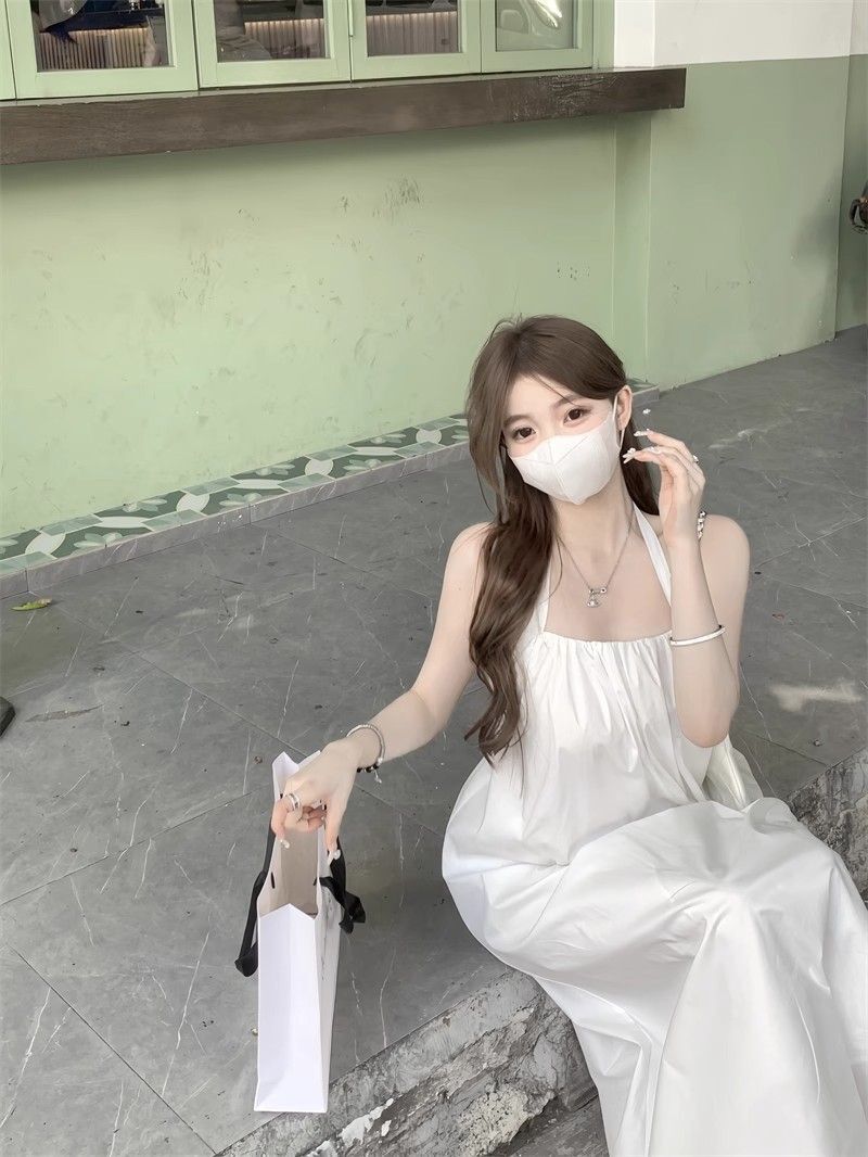 - 韩系假两件碎花吊带长裙修身收腰显瘦垂坠连衣裙