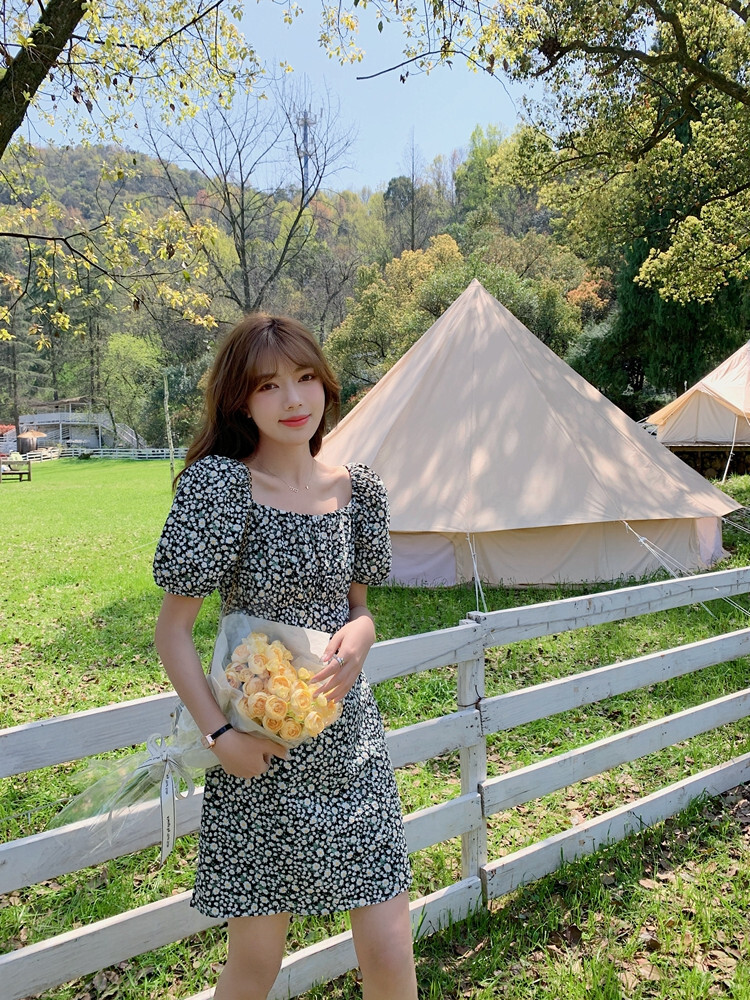 - 春夏色度超美浪漫肌理感双V领背心连衣裙