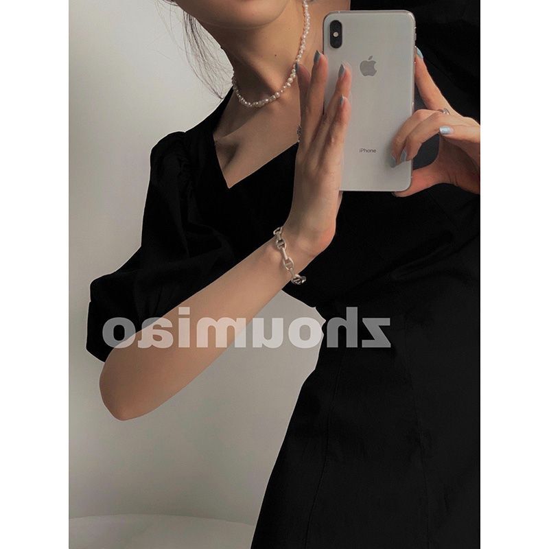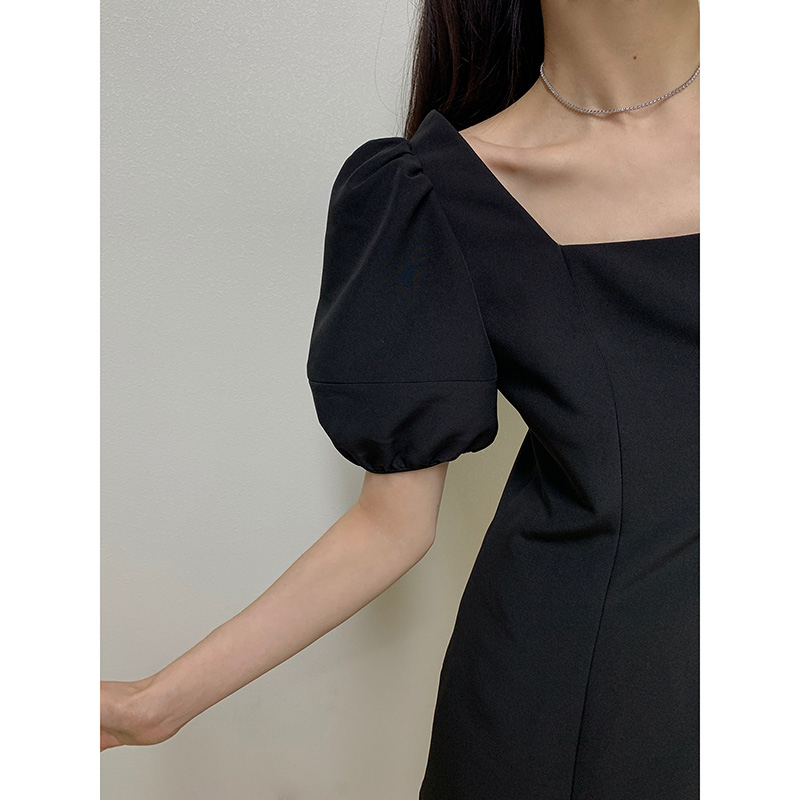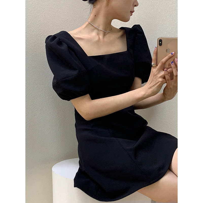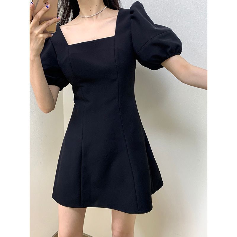 • 法式方领轻熟风泡泡袖连衣裙子春款2024年新款女赫本风小黑裙