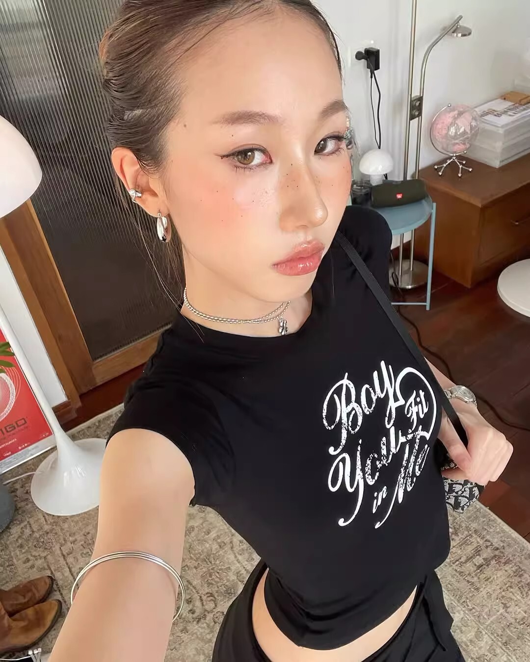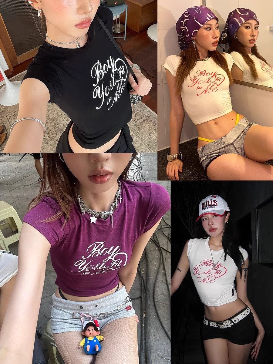 1*1纯棉 高弹力新款夏季短袖短款搭配高腰裤修身显瘦洋气上衣