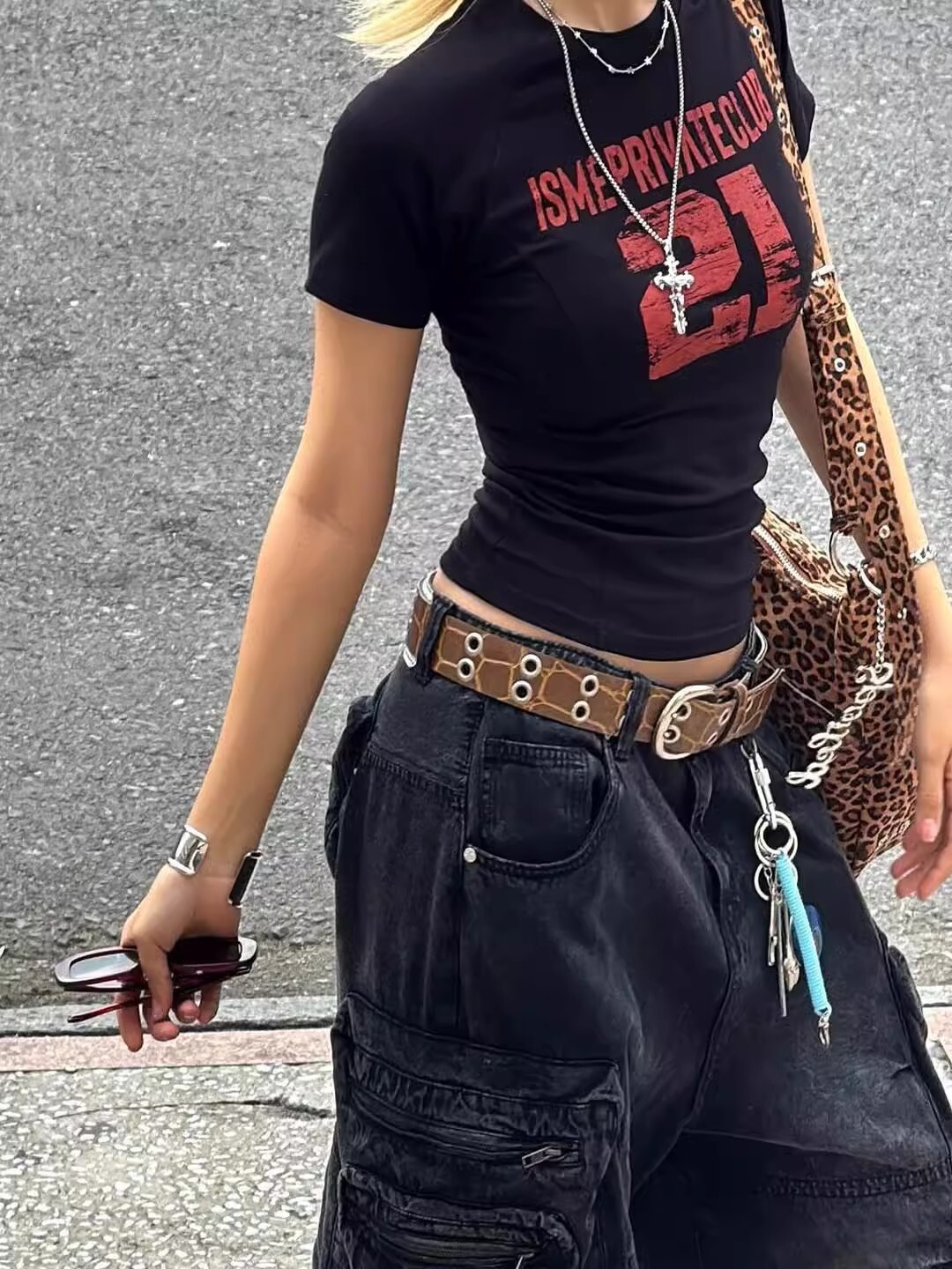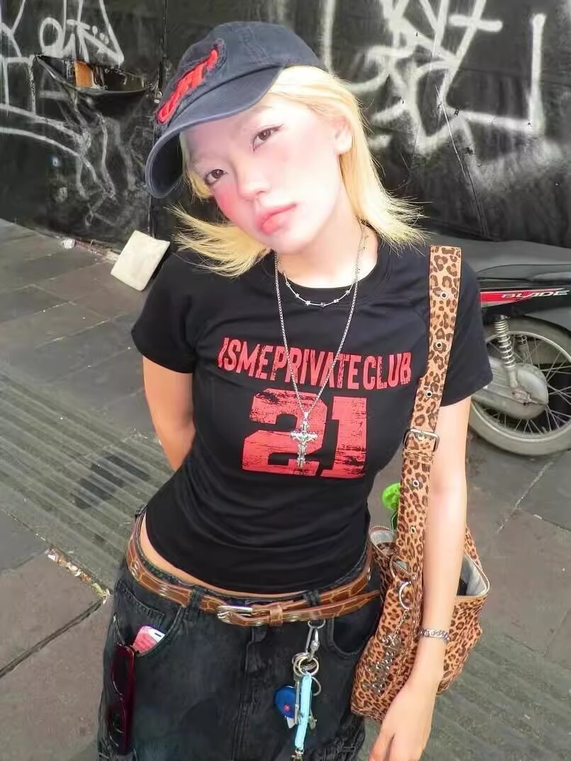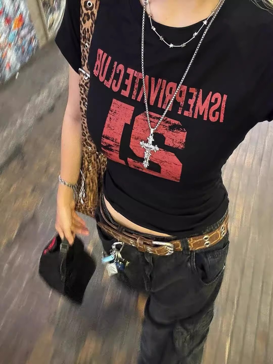 • 【1*1纯棉 常规款】印花正肩常规短袖 高弹力新款夏季修身显