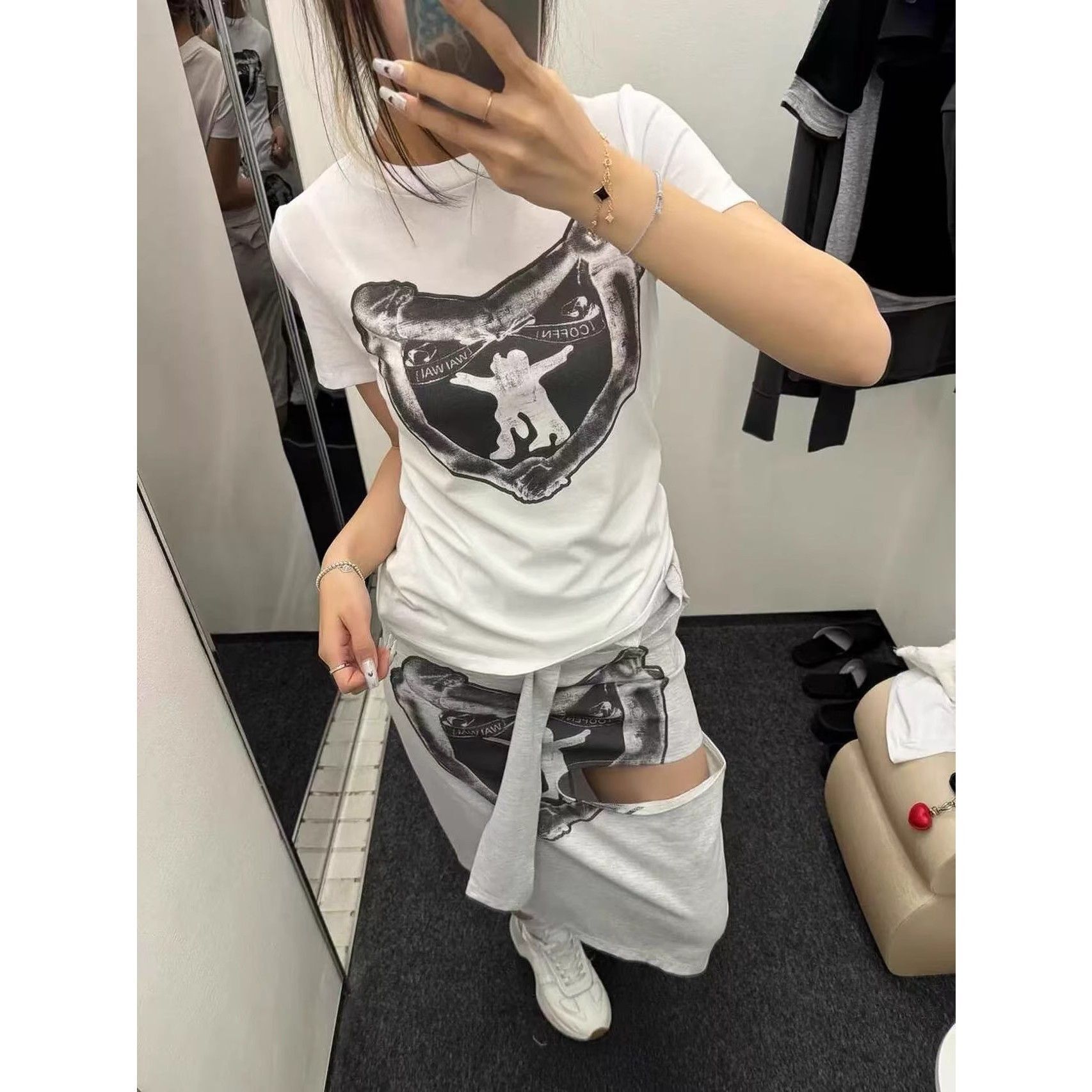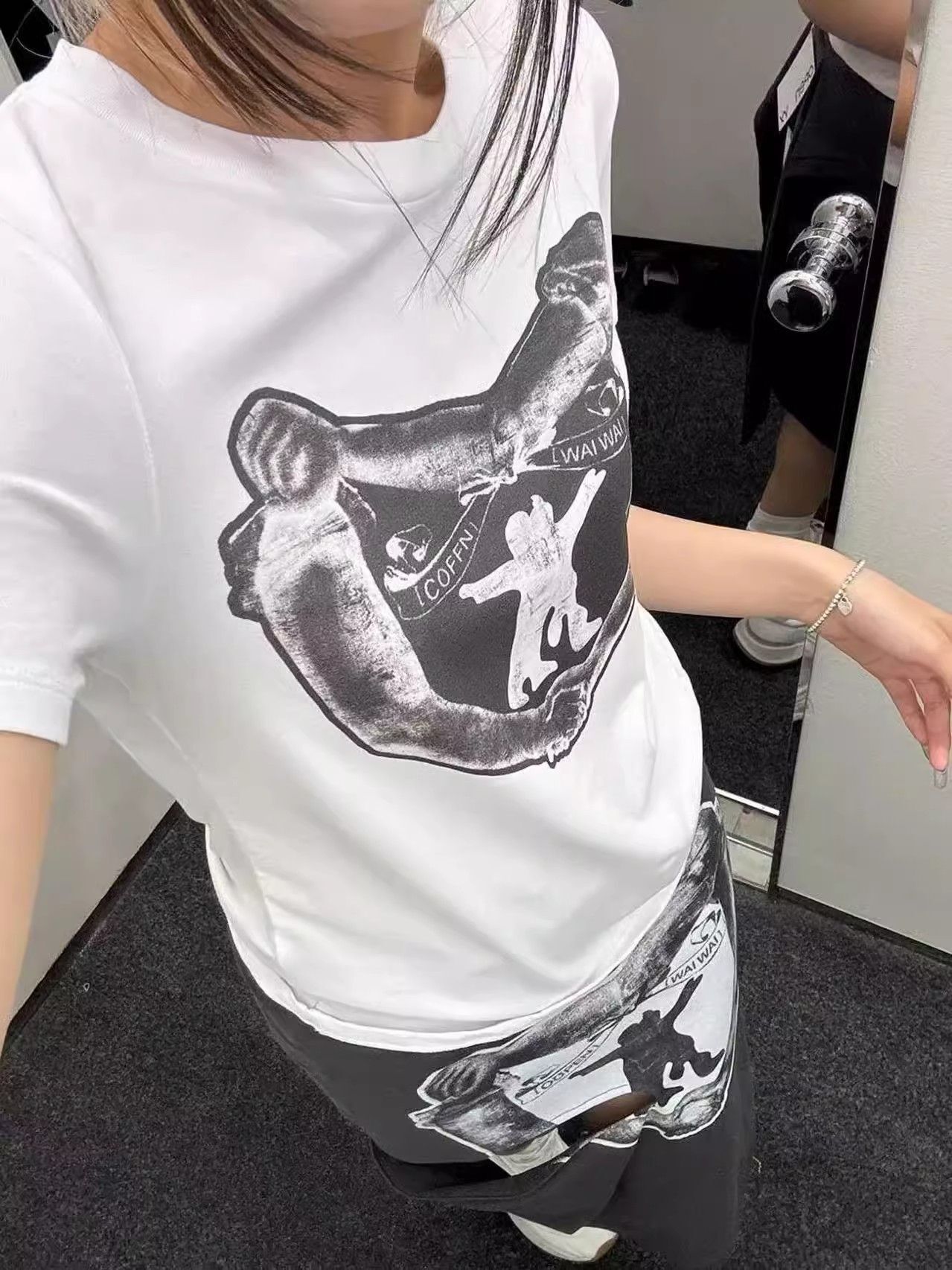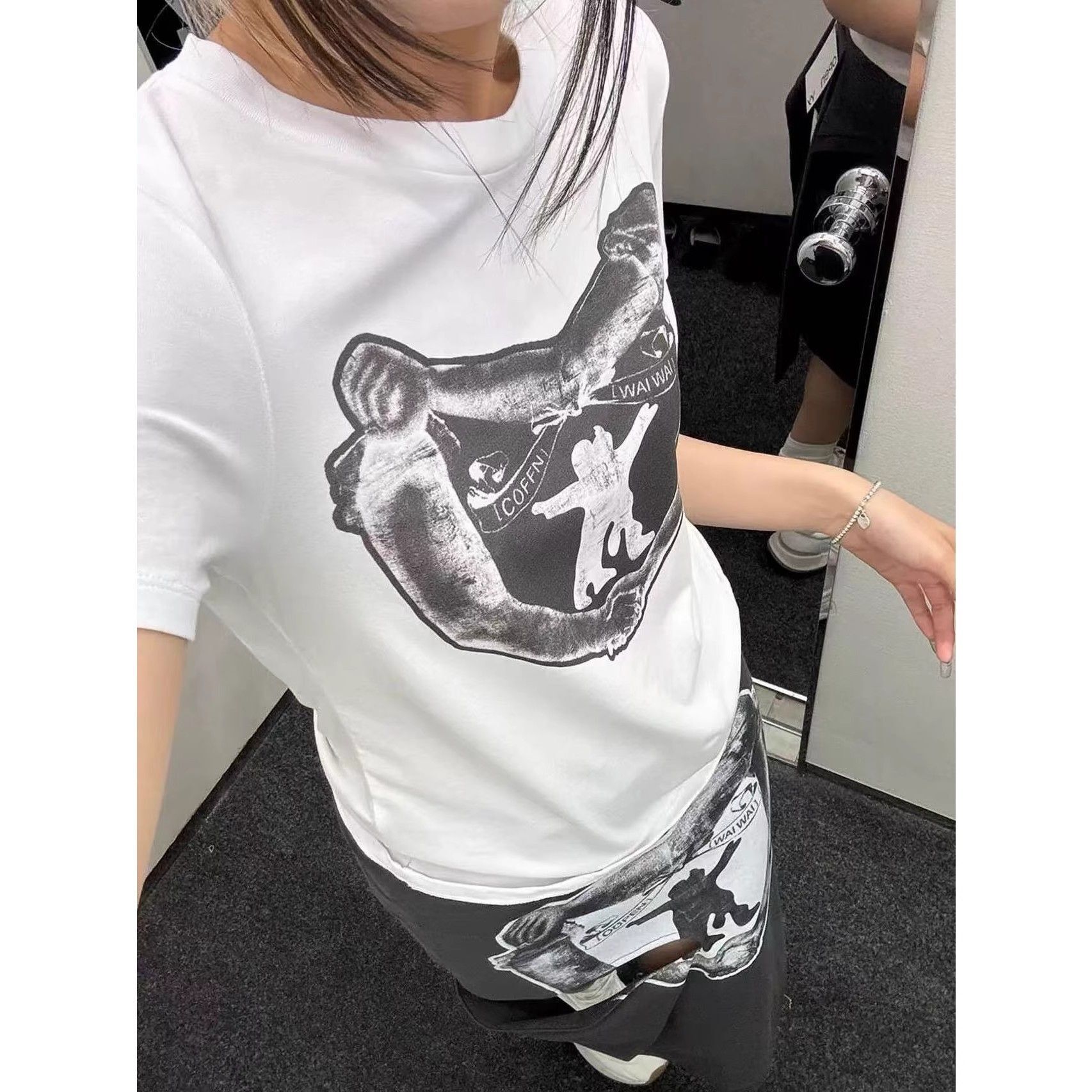 - 官图 实价 已出货 斜抽绳可爱猫咪上衣短袖t恤