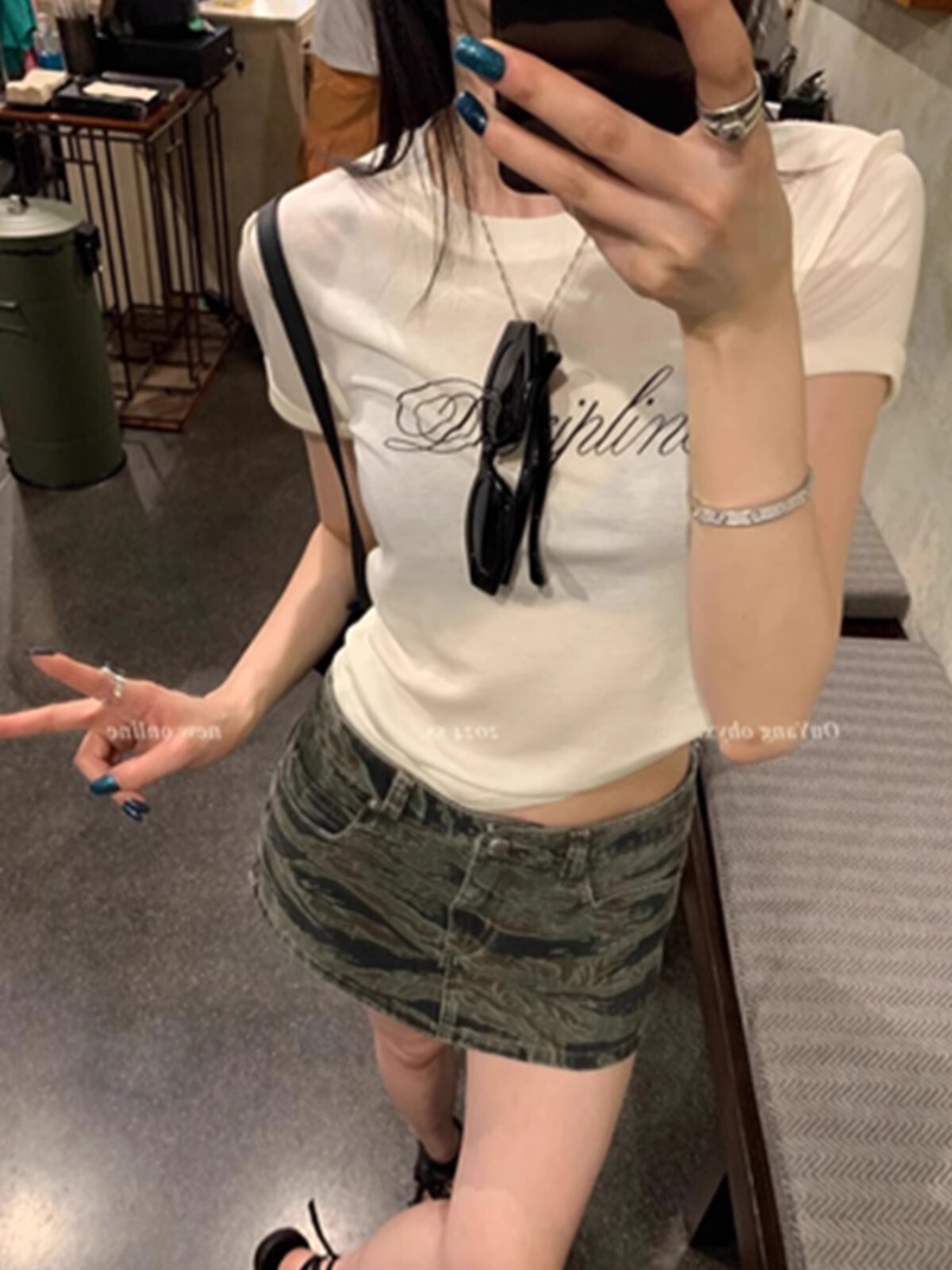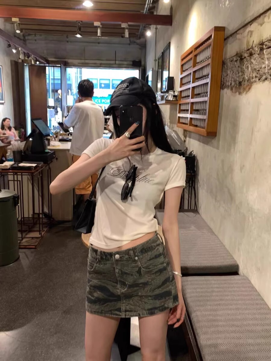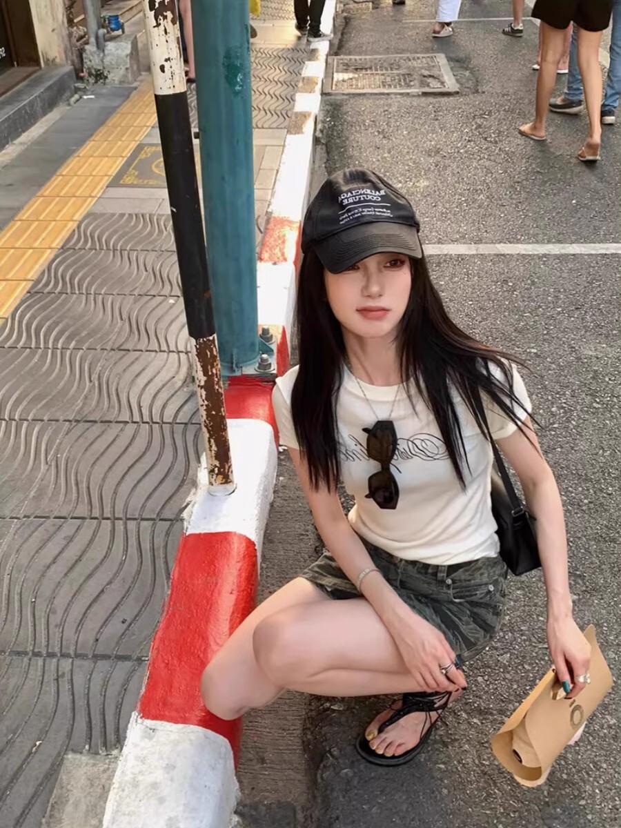 • 【1*1纯棉 常规款】印花正肩常规短袖 高弹力新款夏季修身显