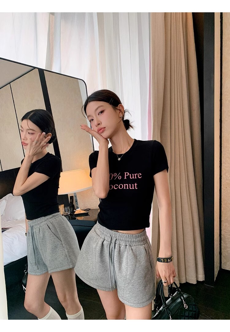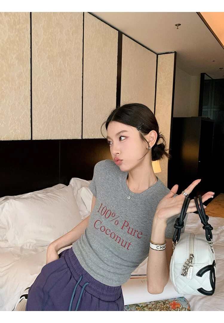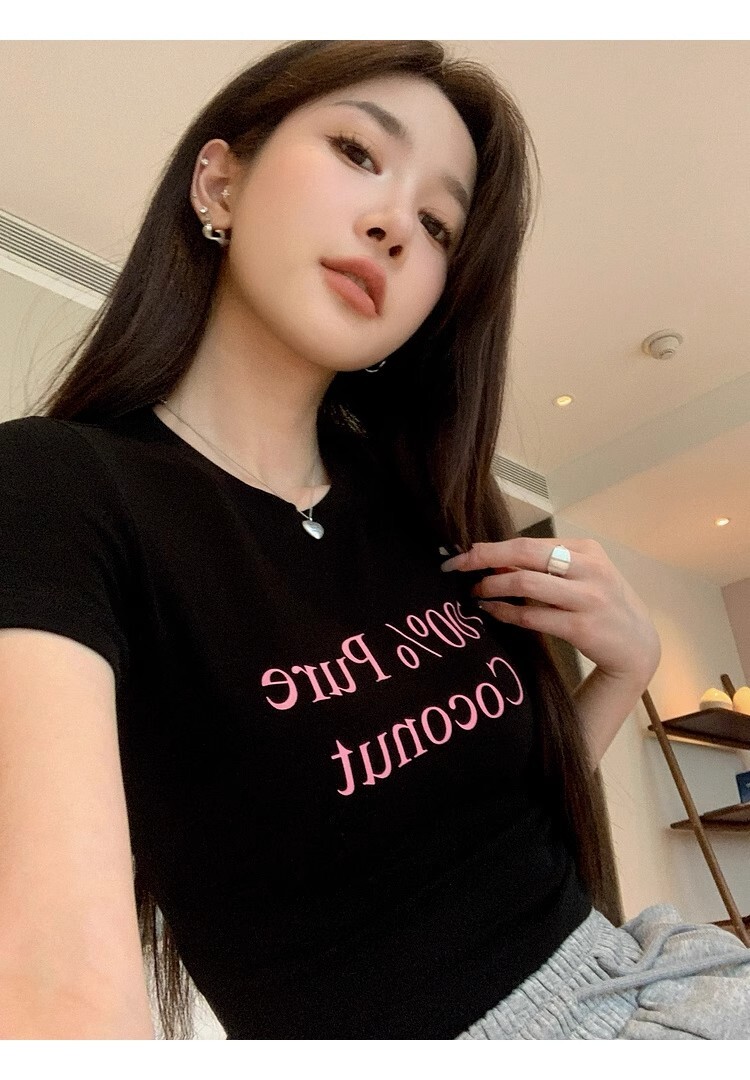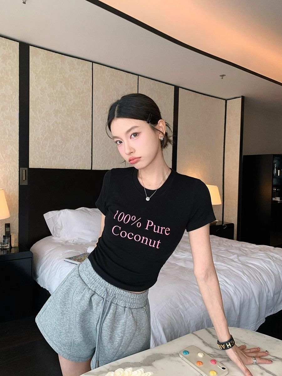 • 【1*1纯棉 常规款】印花正肩常规短袖 高弹力新款夏季修身显