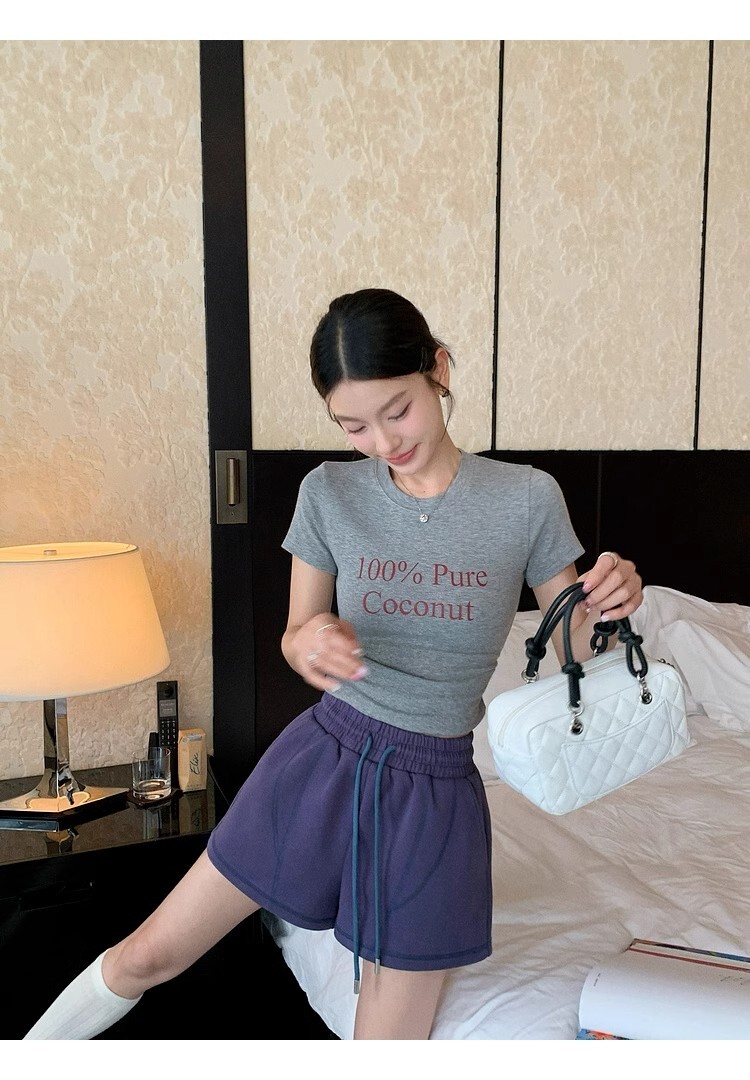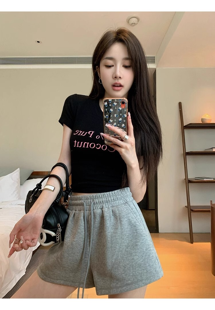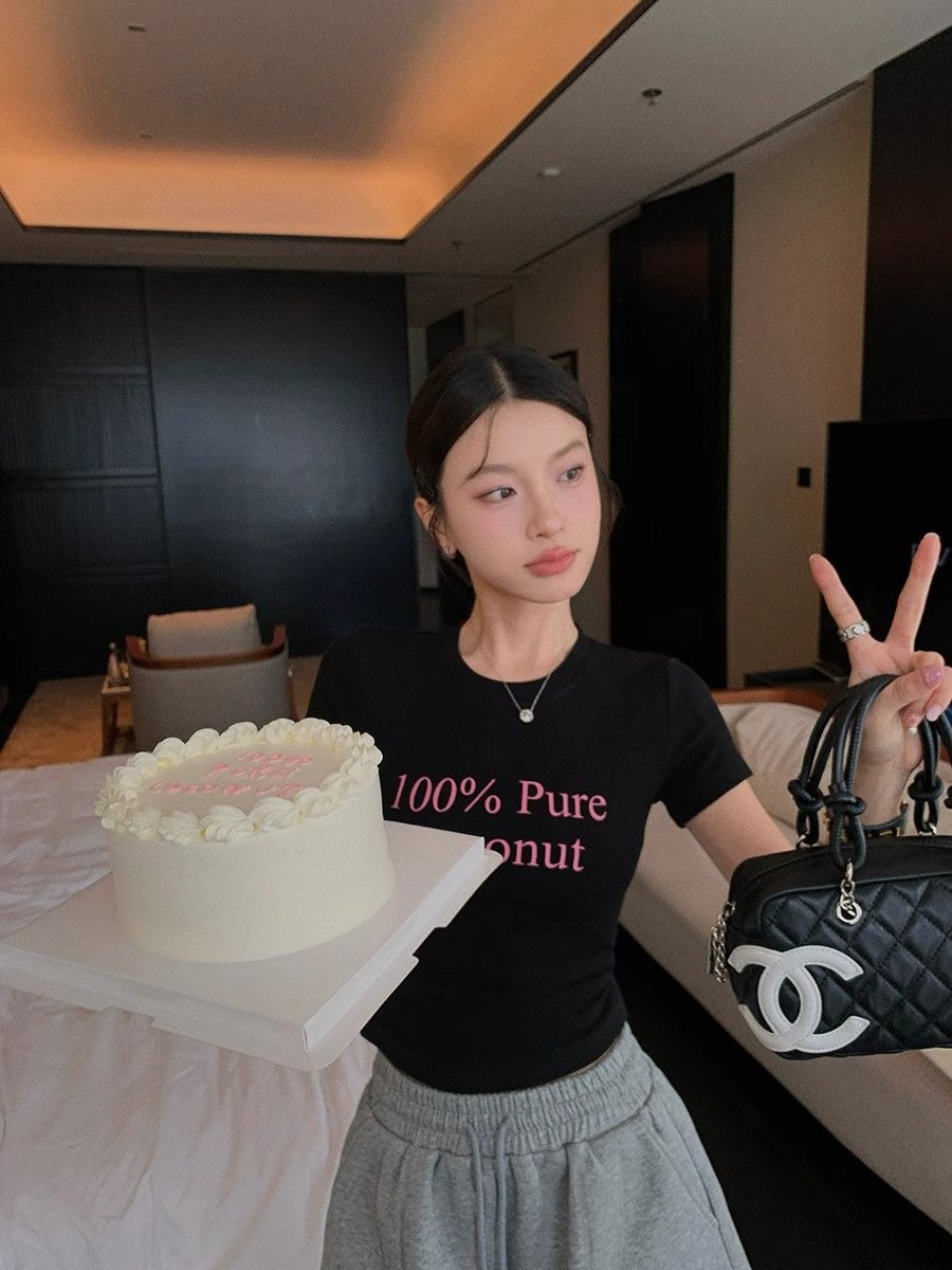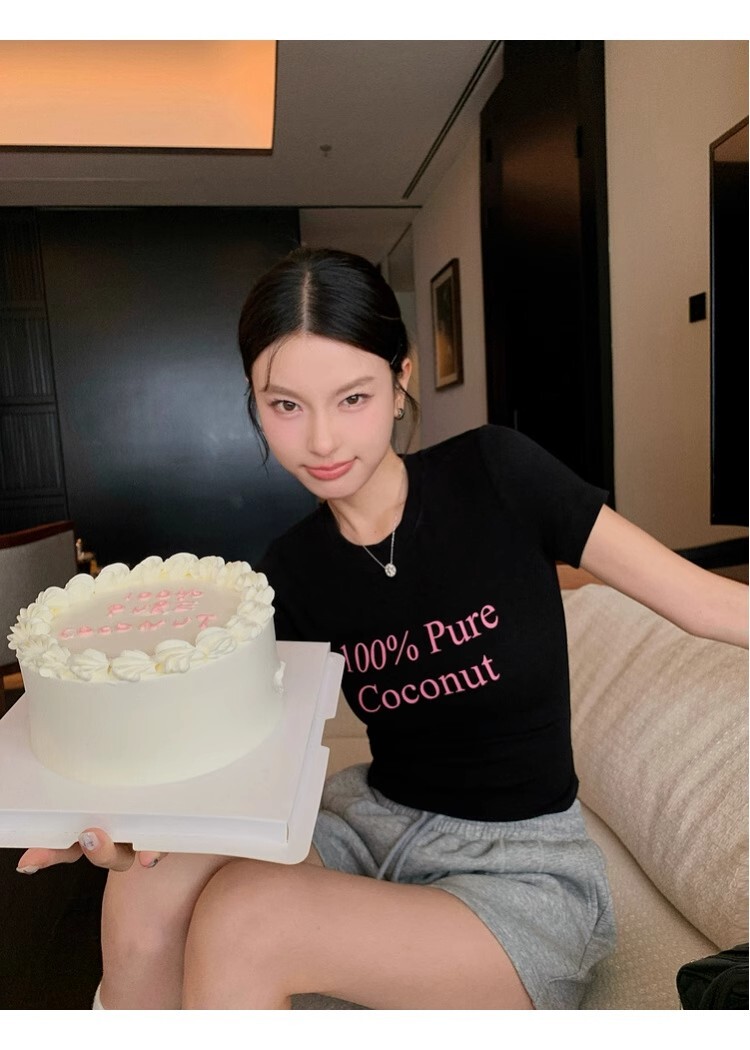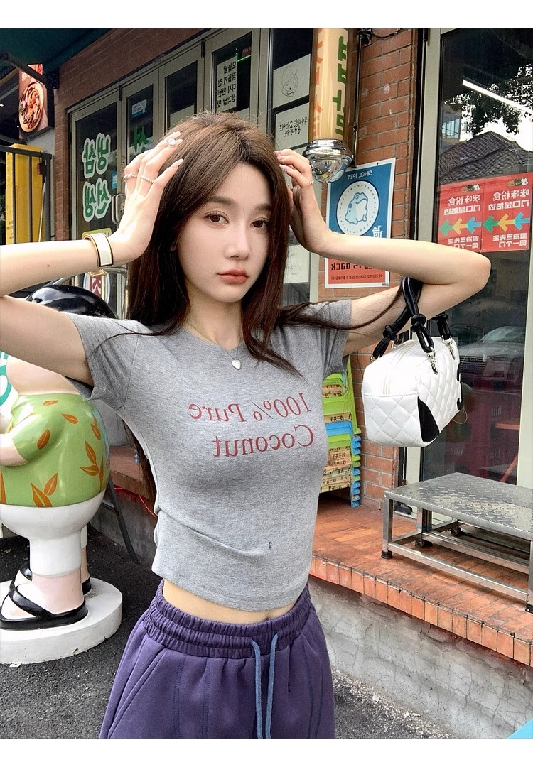 • 【1*1纯棉 常规款】印花正肩常规短袖 高弹力新款夏季修身显