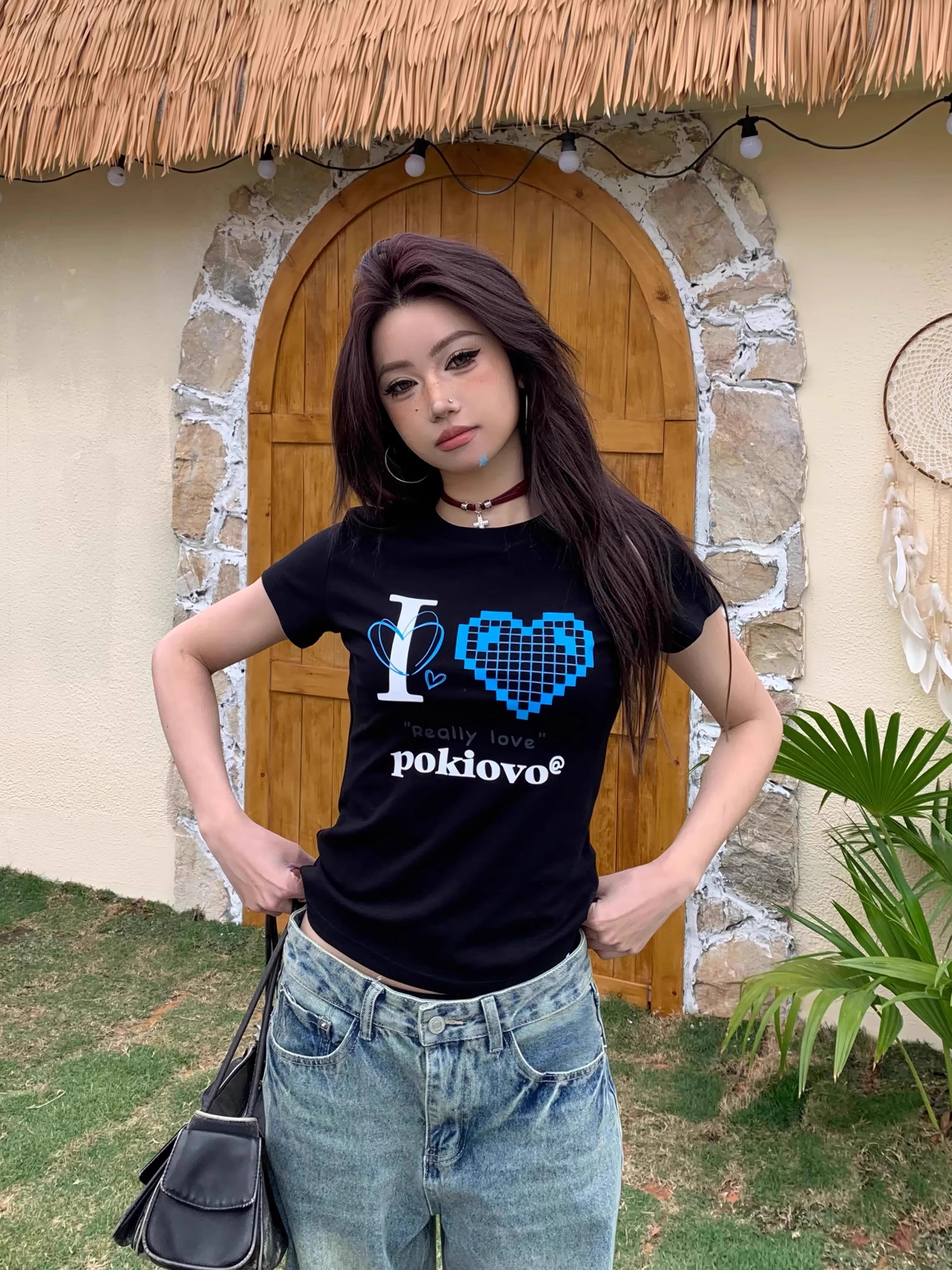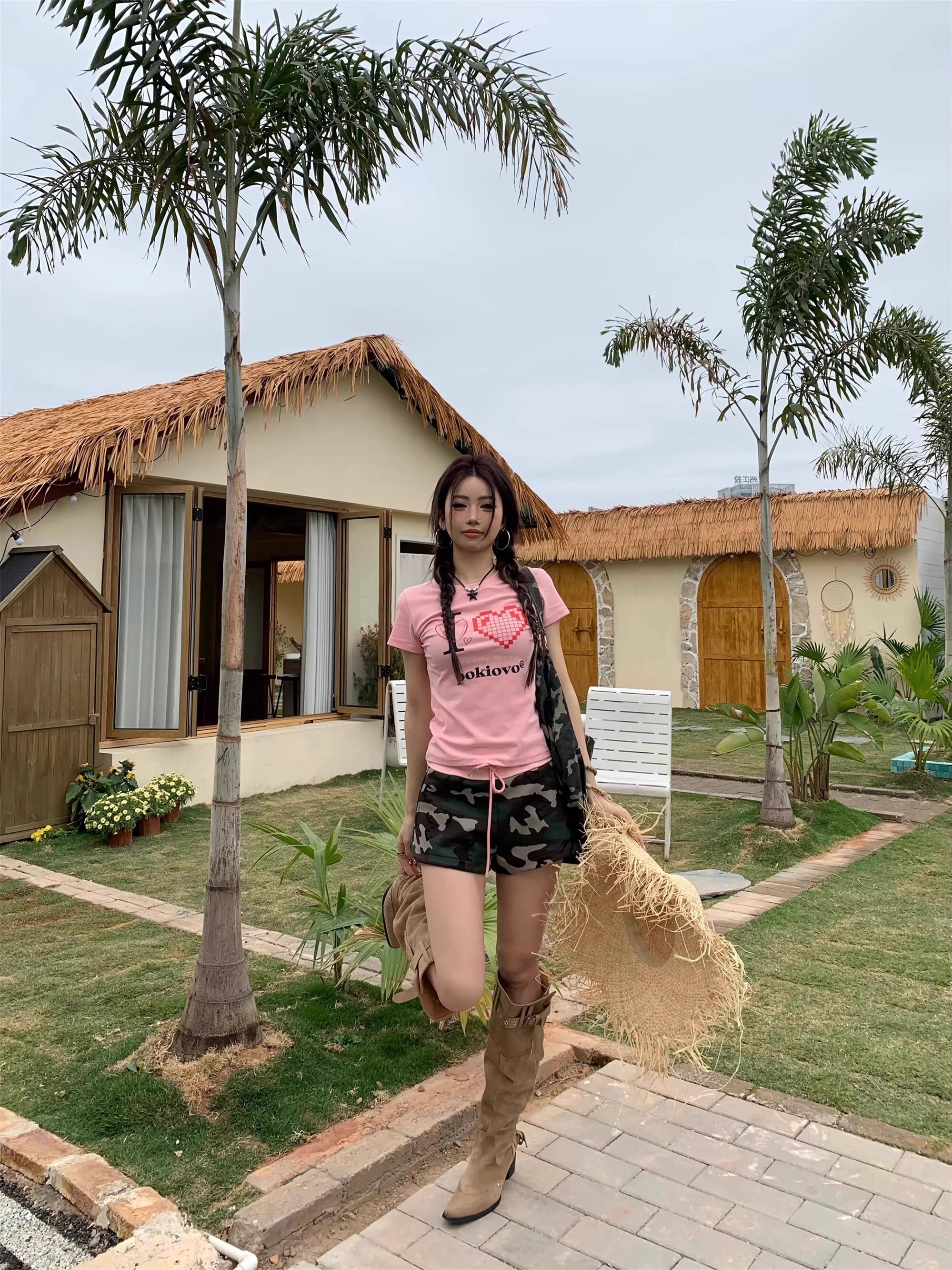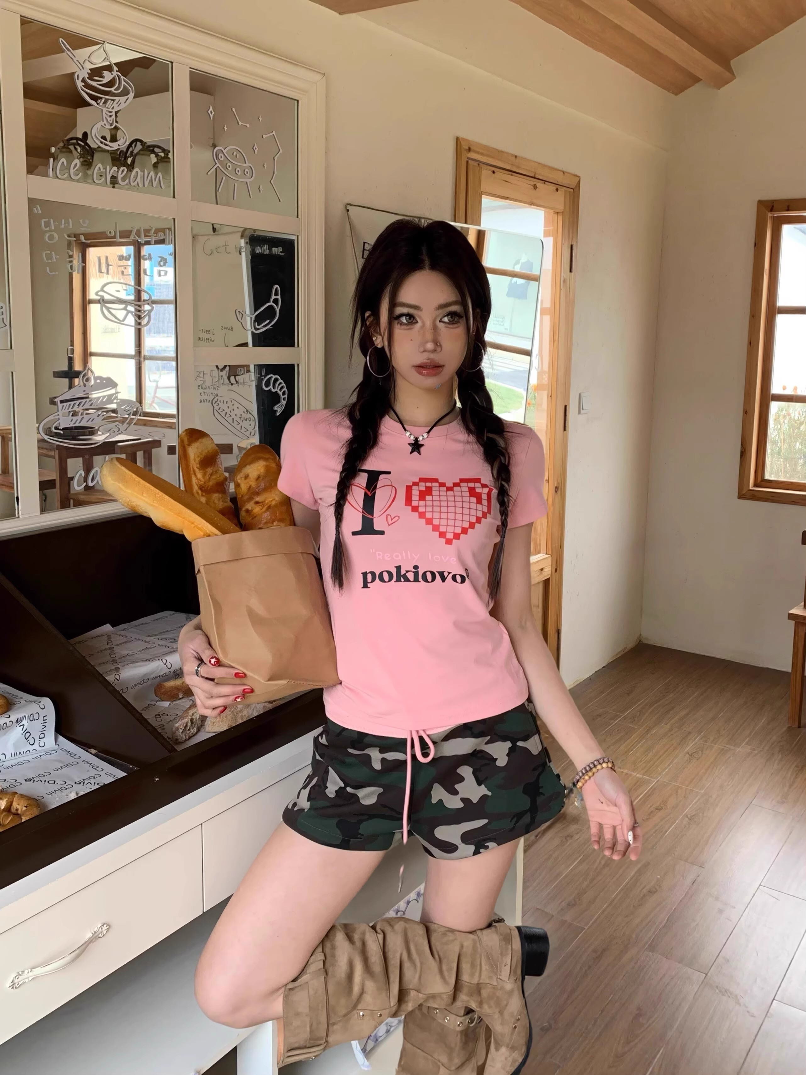 - 【包肩包领】夏日多巴胺穿搭恤美式短款辣妹修身