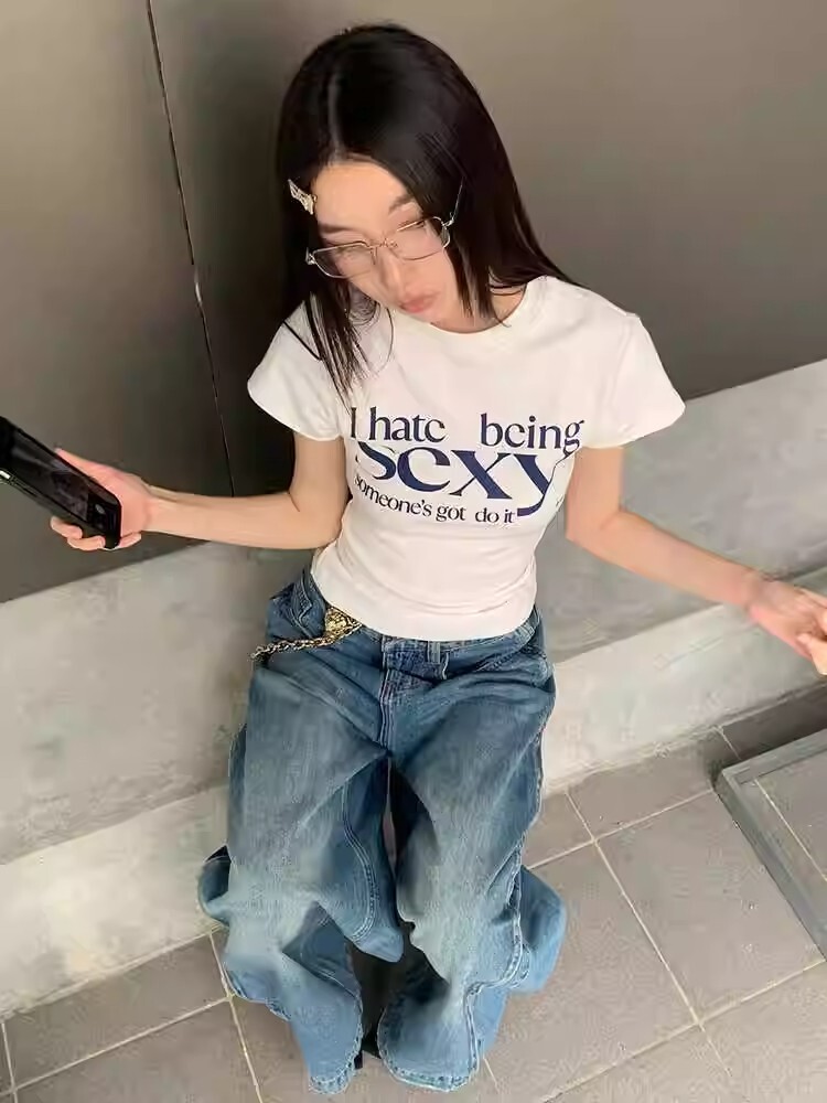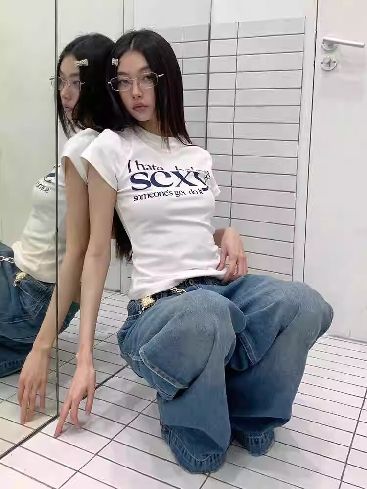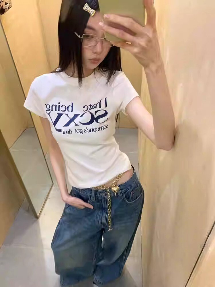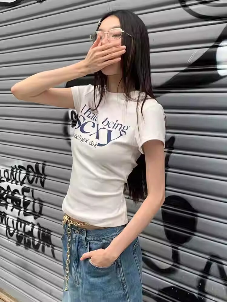 - 【包肩包领】夏日多巴胺穿搭恤美式短款辣妹修身