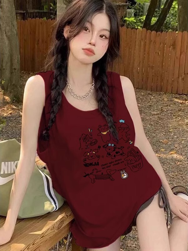 【包肩包领】夏日多巴胺穿搭无袖t恤美式坎肩背心无袖上衣