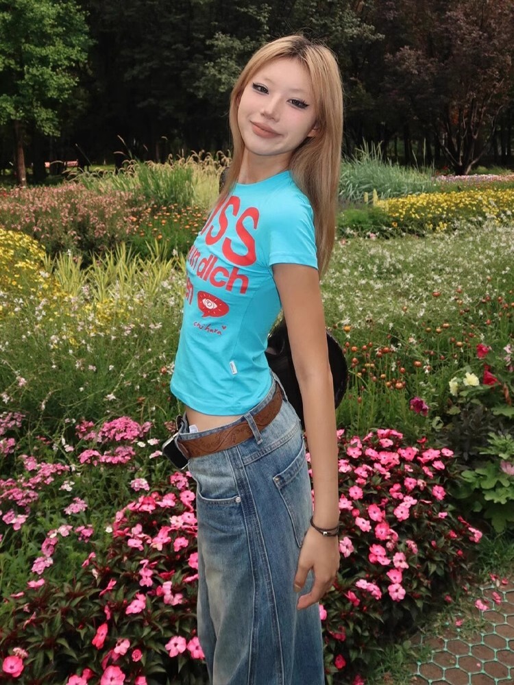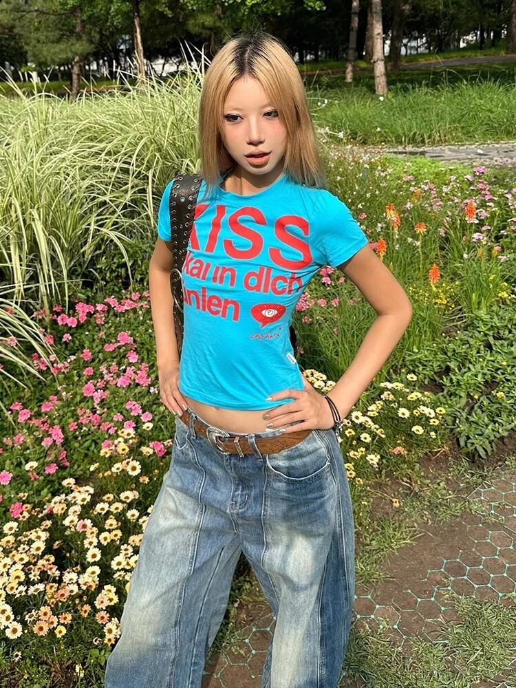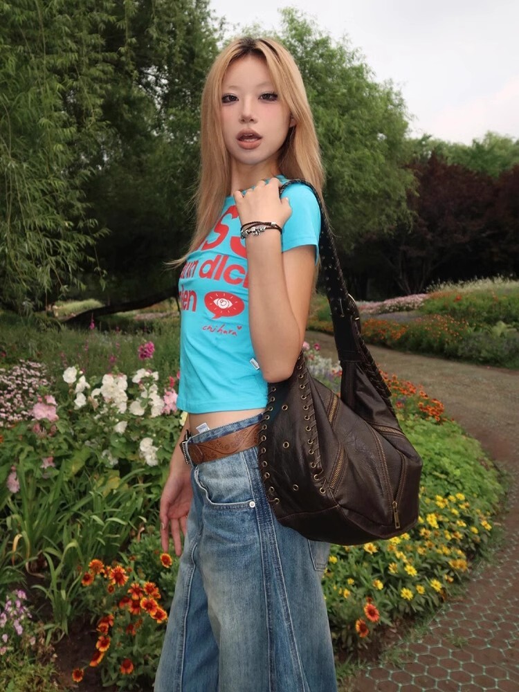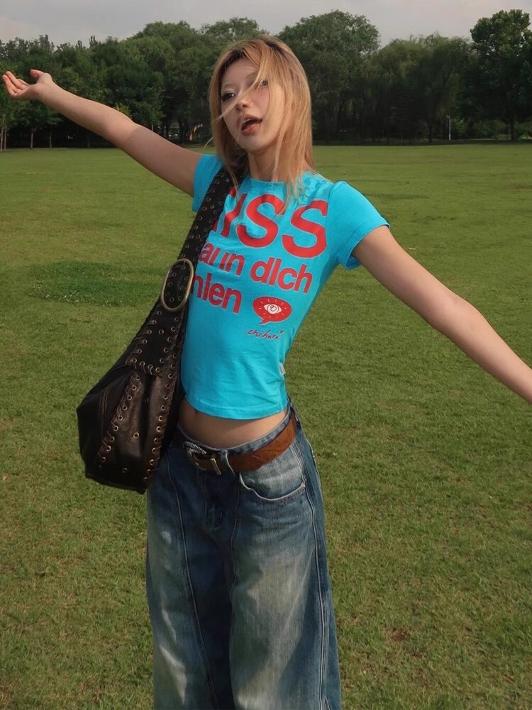- 【包肩包领】夏日多巴胺穿搭恤美式短款辣妹修身