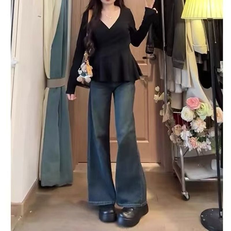 • MR【随心裁】大码v领打底衫长袖女早春胖mm遮肚子藏肉显瘦纯