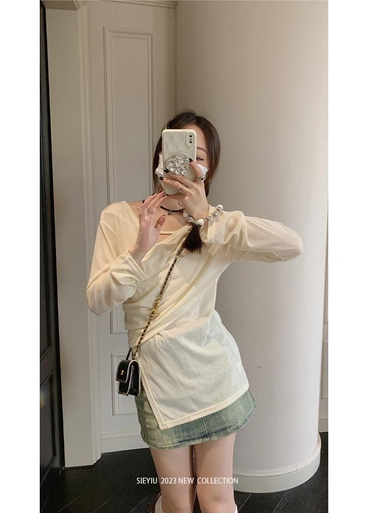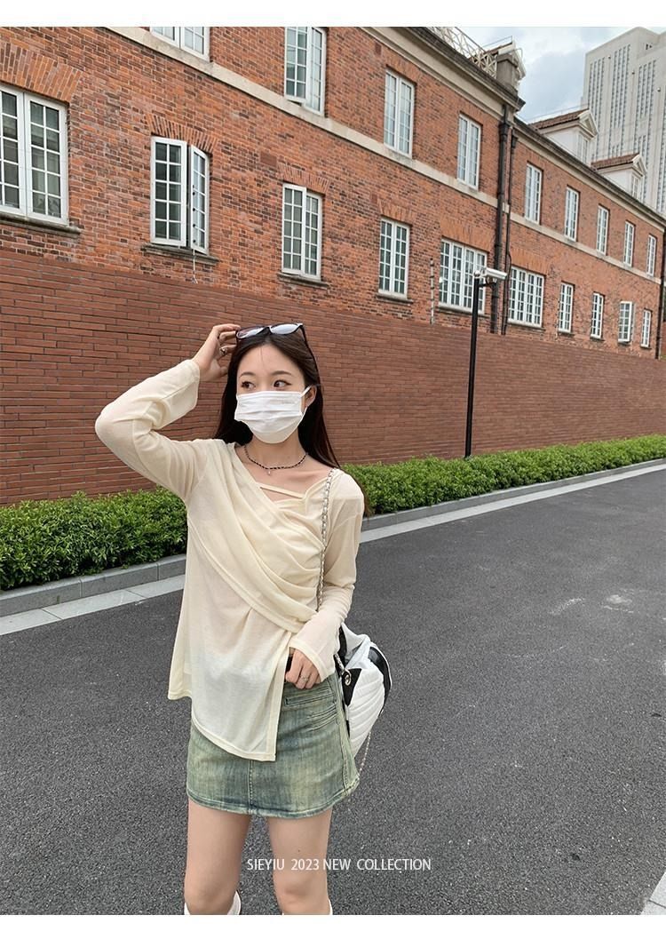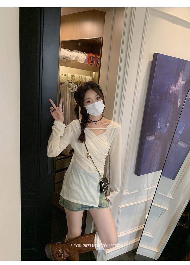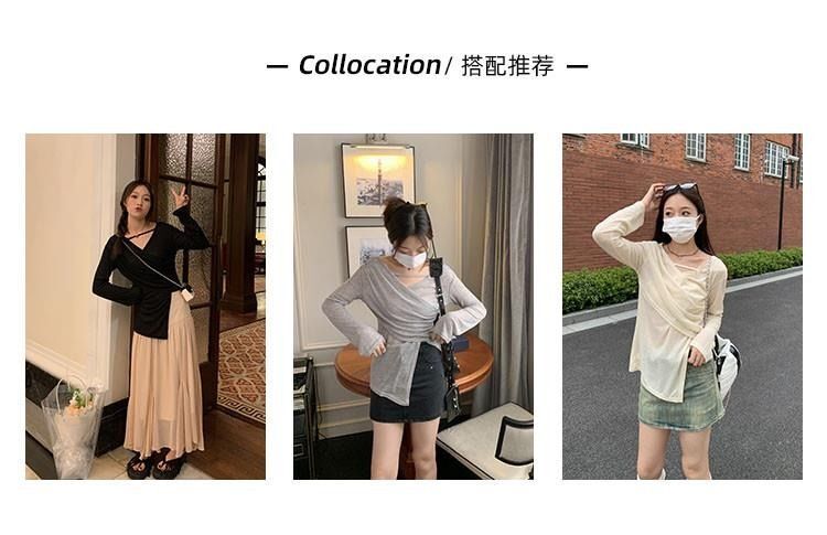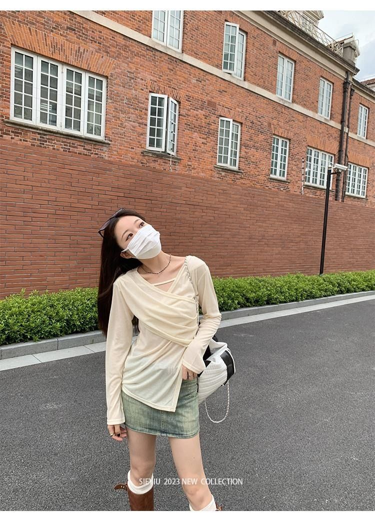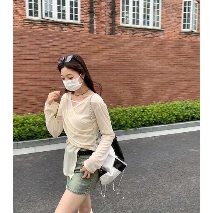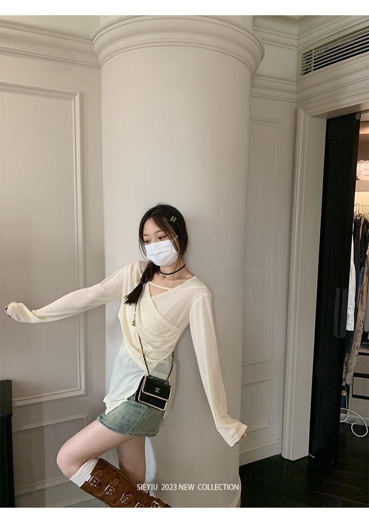 • MR 原版面料 小众设计交叉绑带防晒衫法式V领薄款长袖t恤