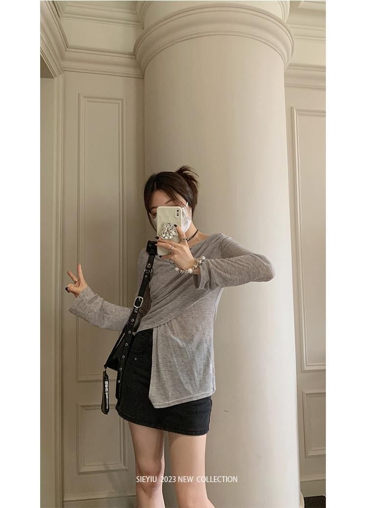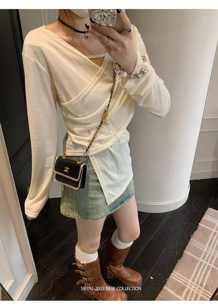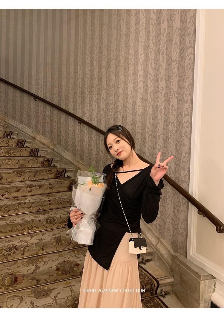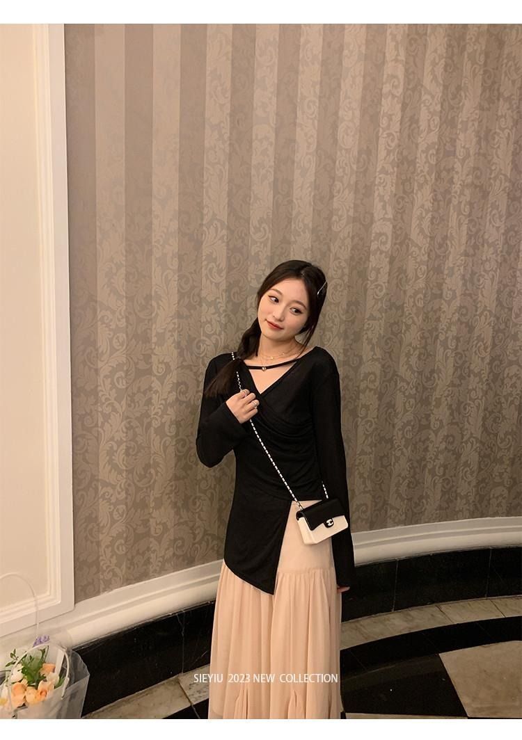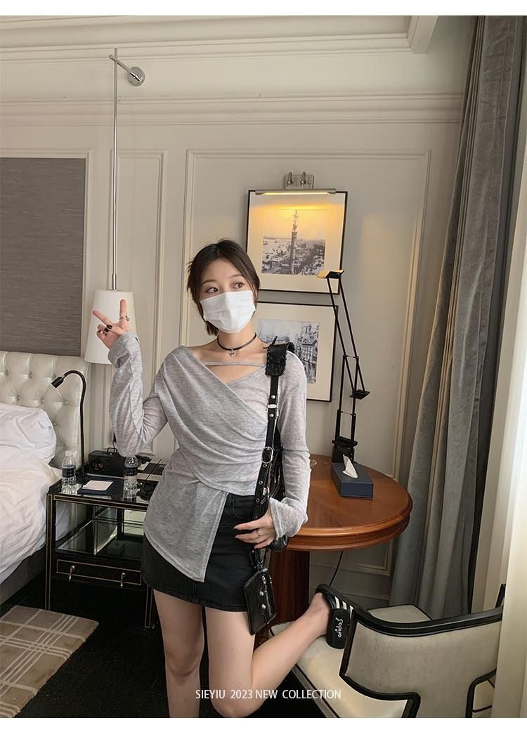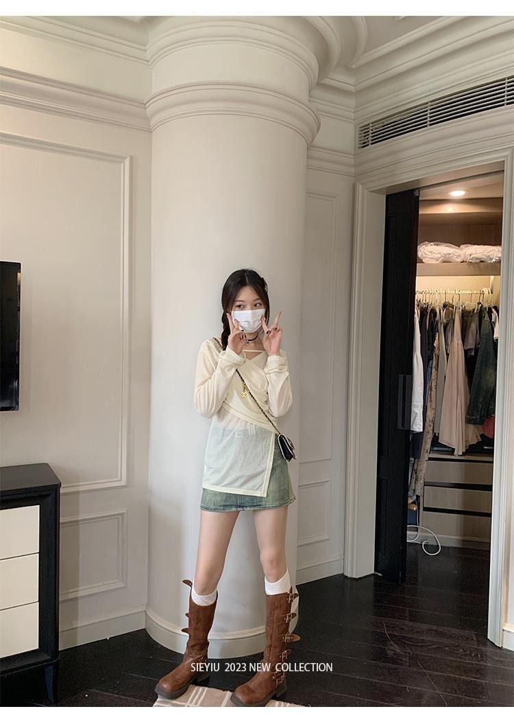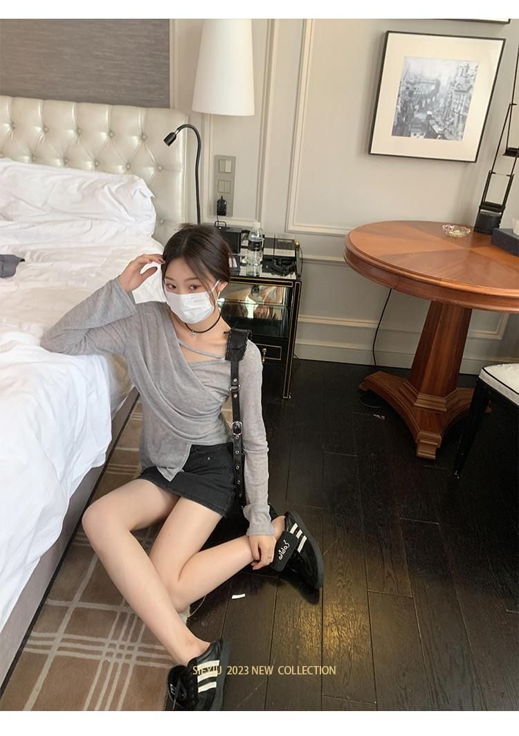• MR 原版面料 小众设计交叉绑带防晒衫法式V领薄款长袖t恤