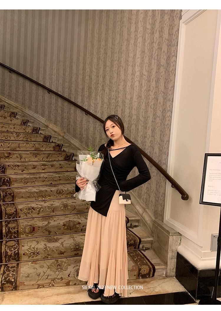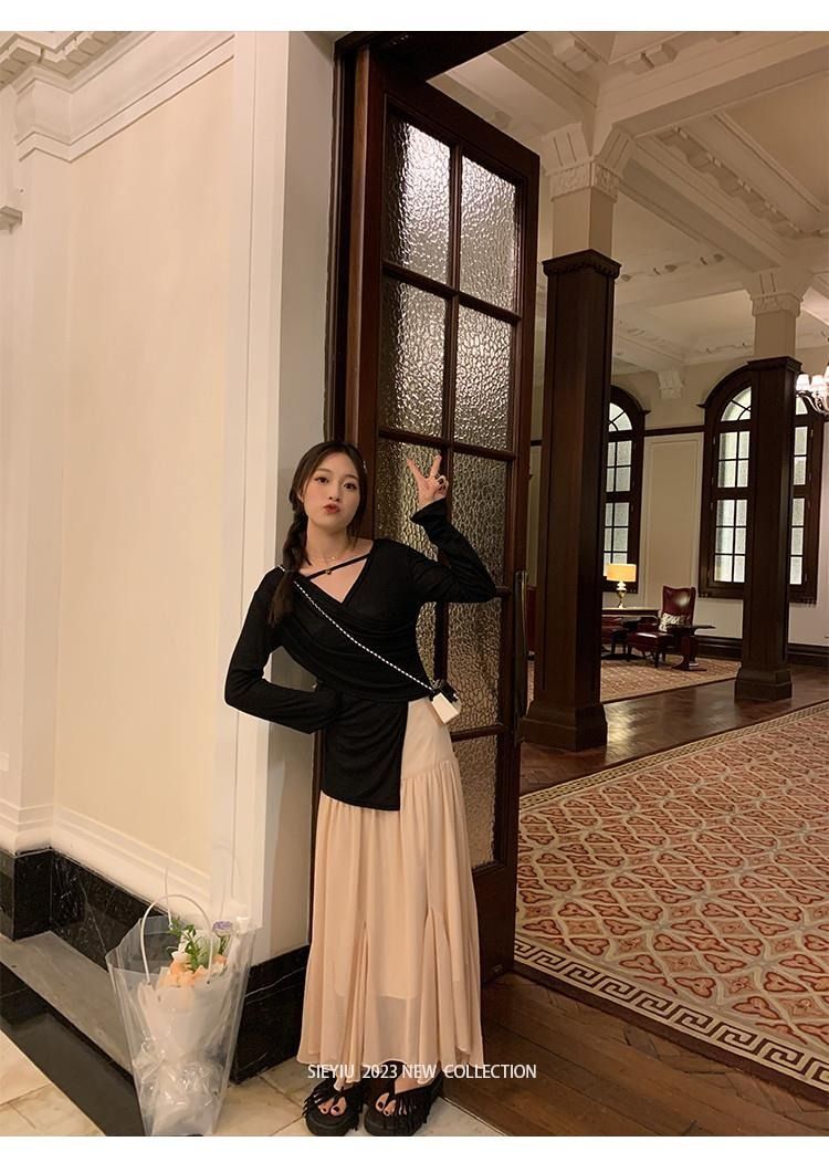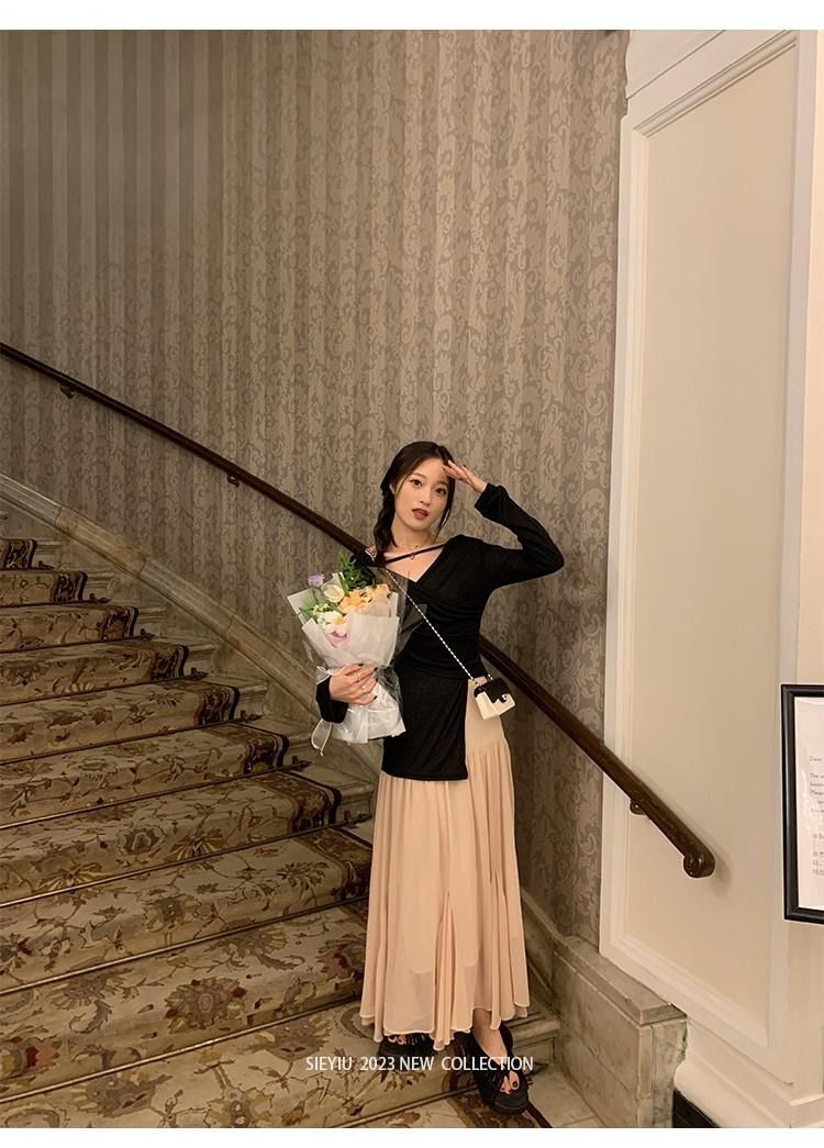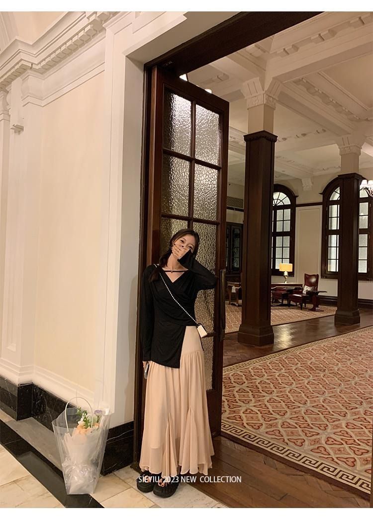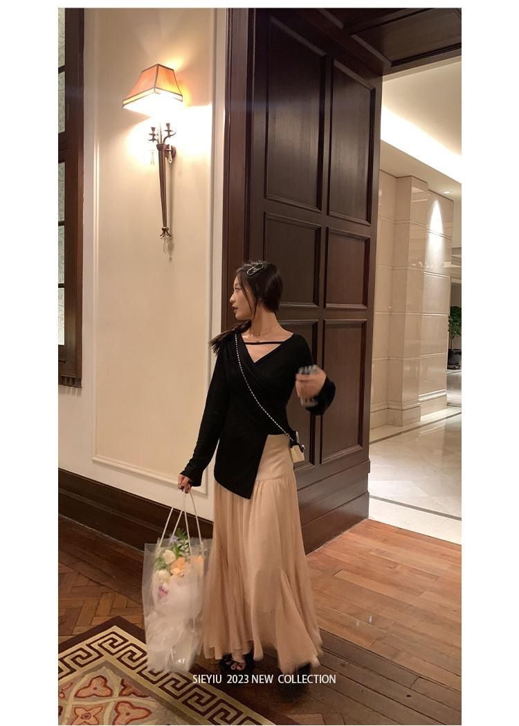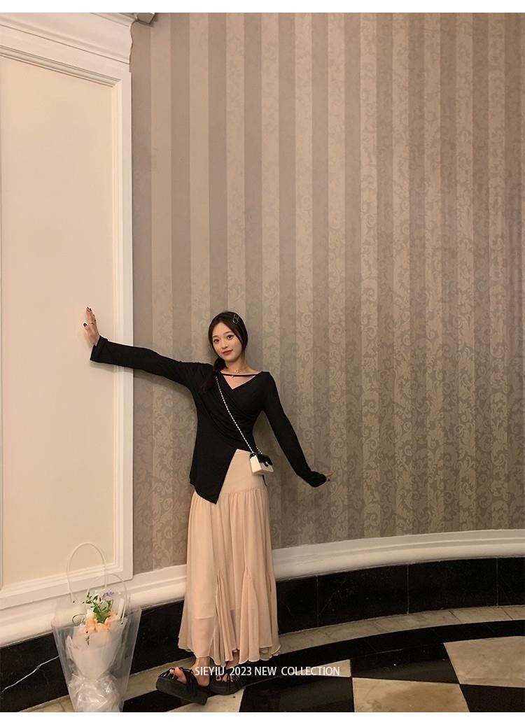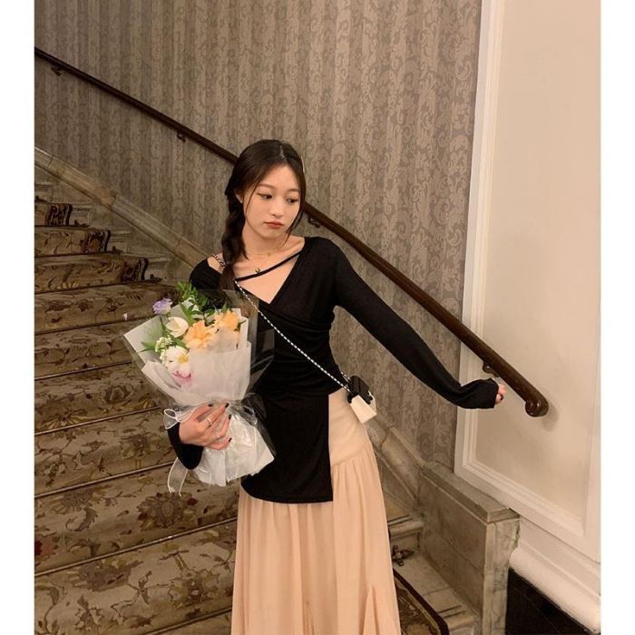 • MR 原版面料 小众设计交叉绑带防晒衫法式V领薄款长袖t恤