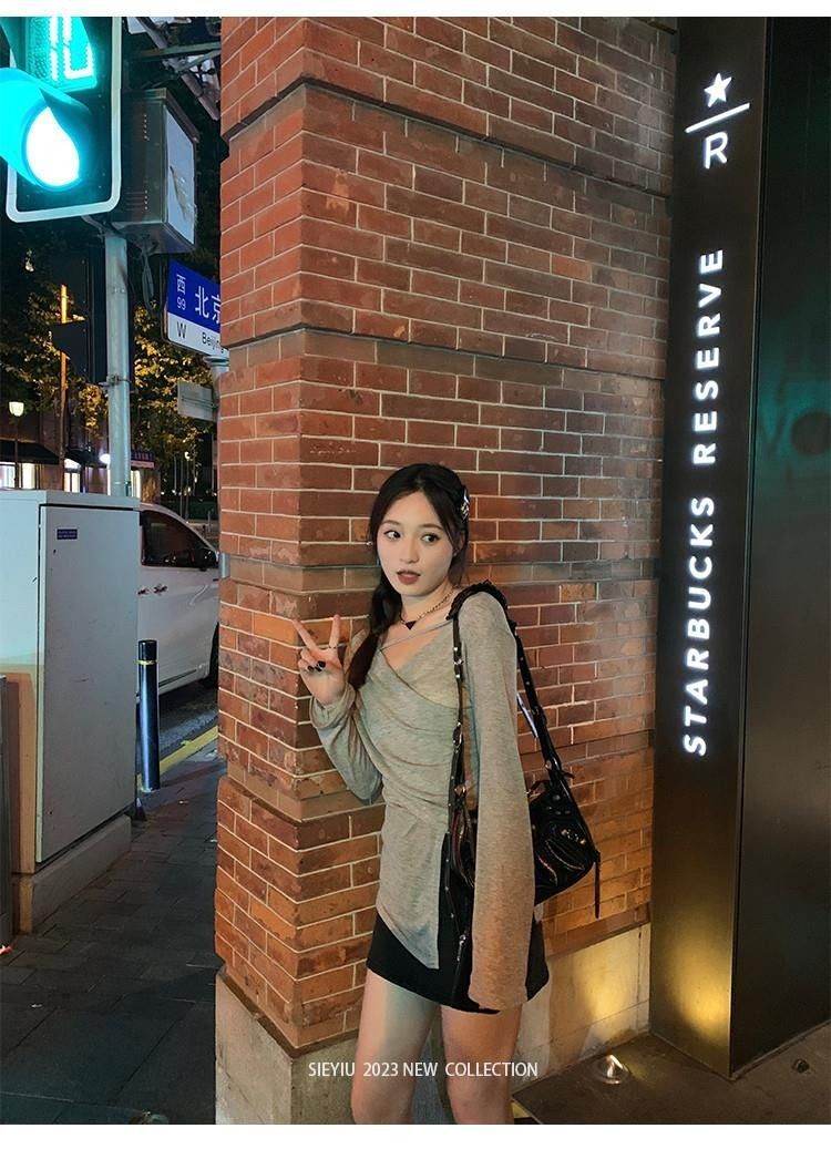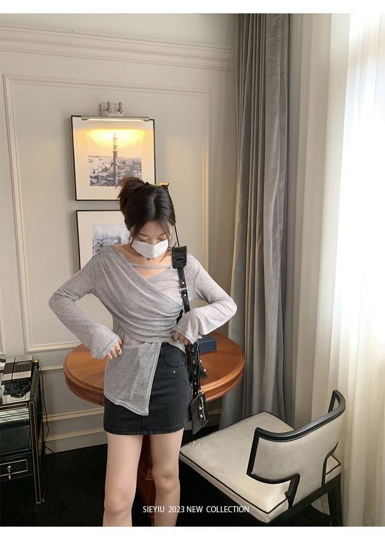 MR 原版面料 小众设计交叉绑带防晒衫法式V领薄款长袖t恤