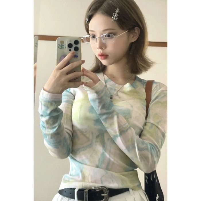 MR 40D网纱 扎染网纱渐变防晒T恤女夏季修身薄款设计感辣