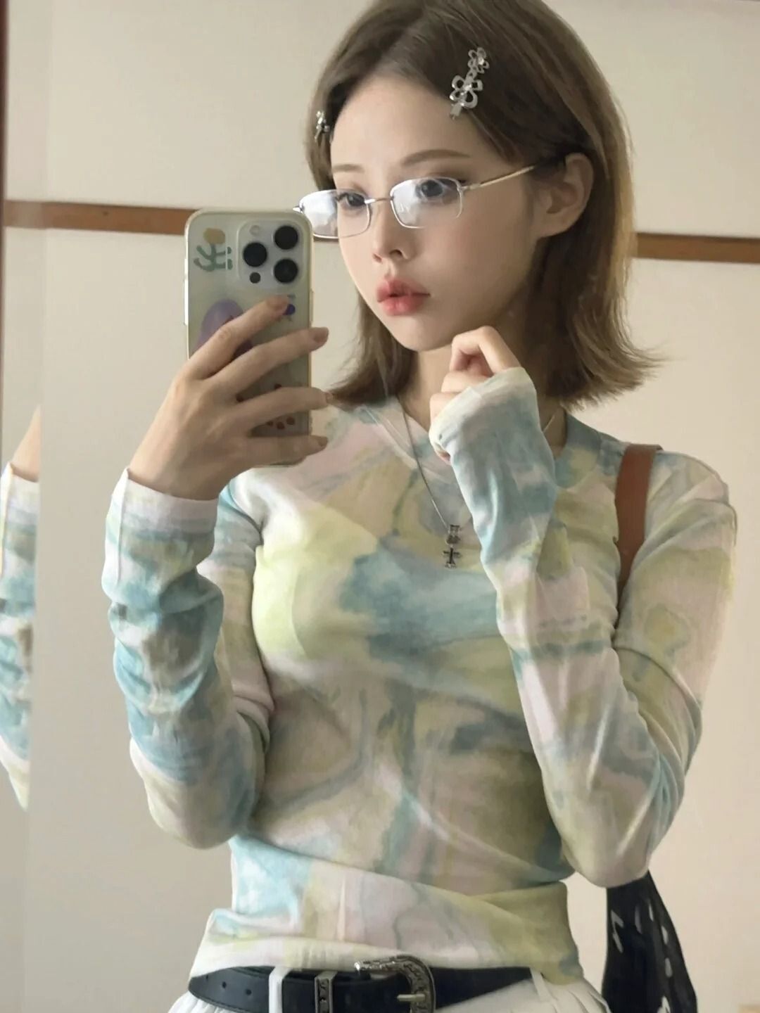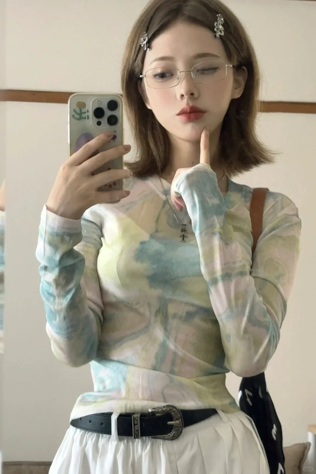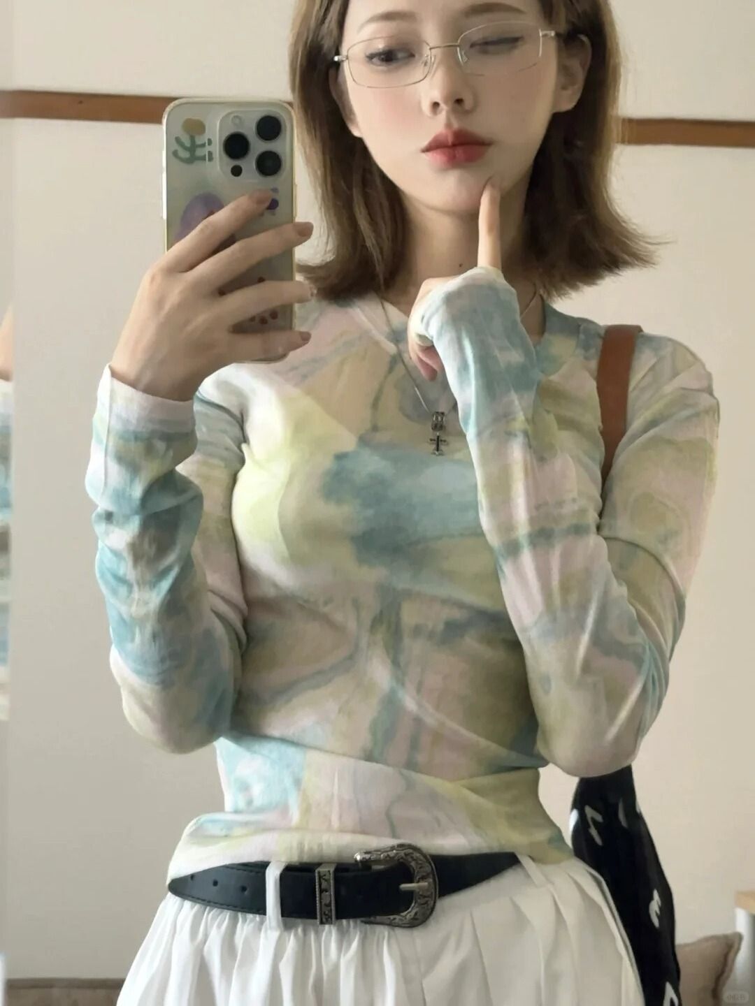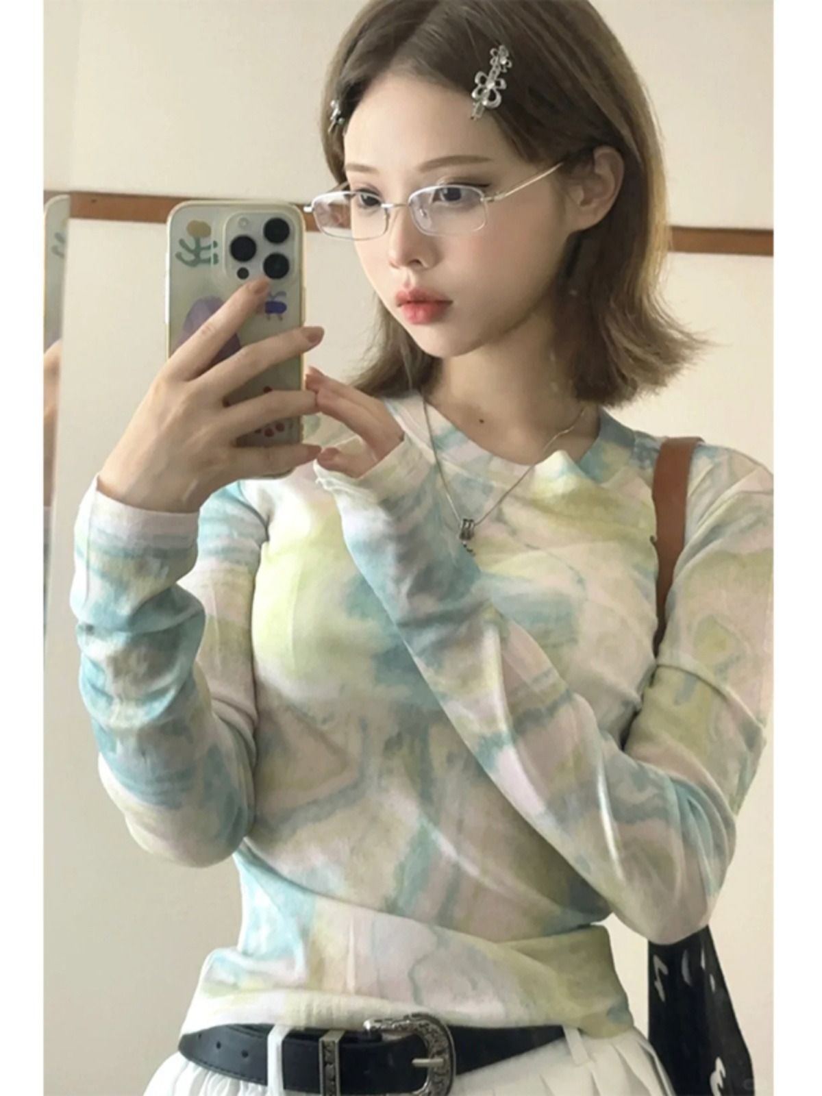 • MR 40D网纱 扎染网纱渐变防晒T恤女夏季修身薄款设计感辣