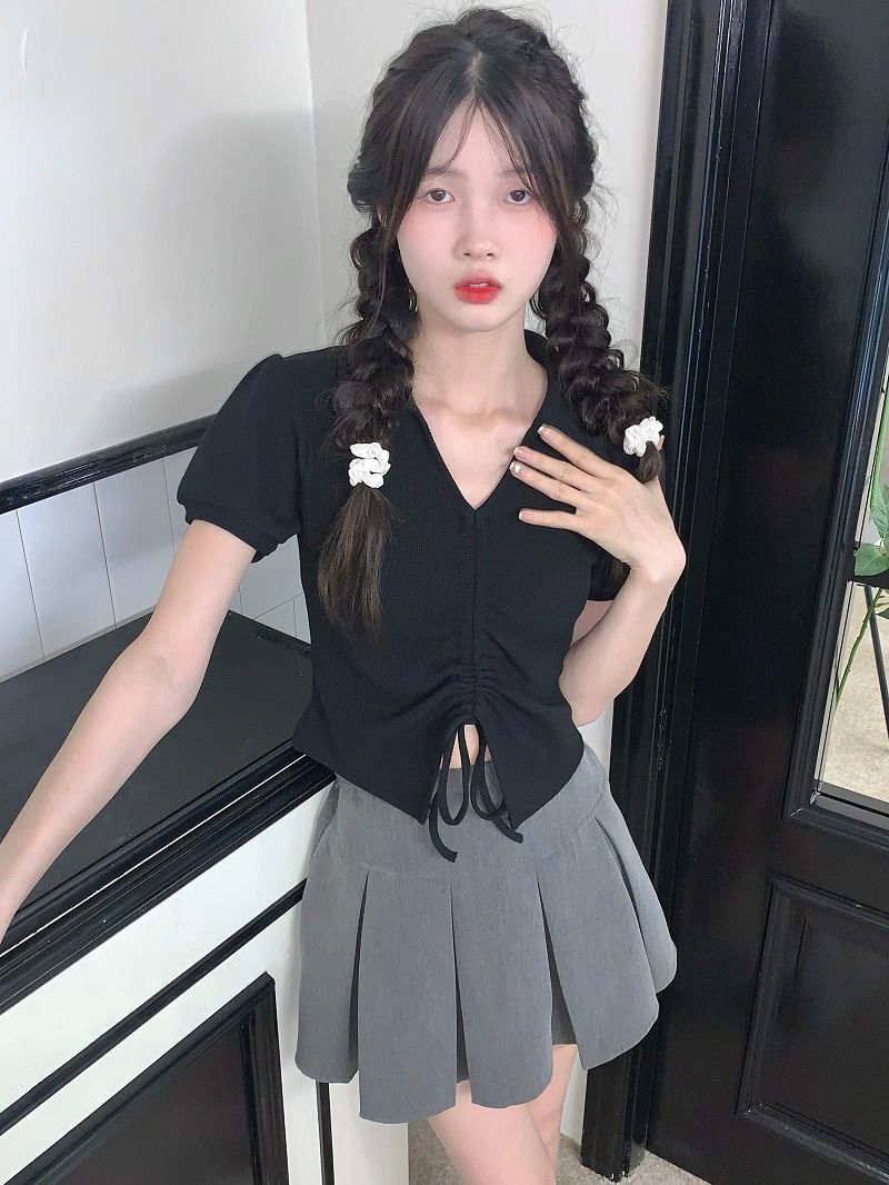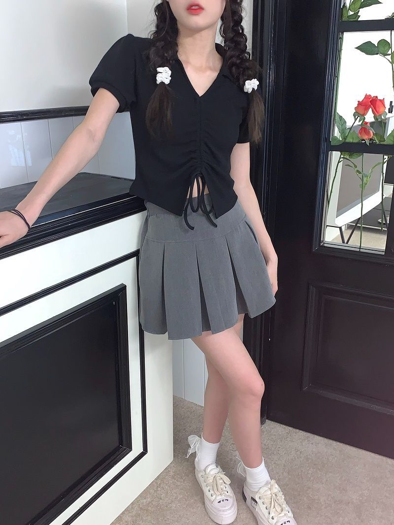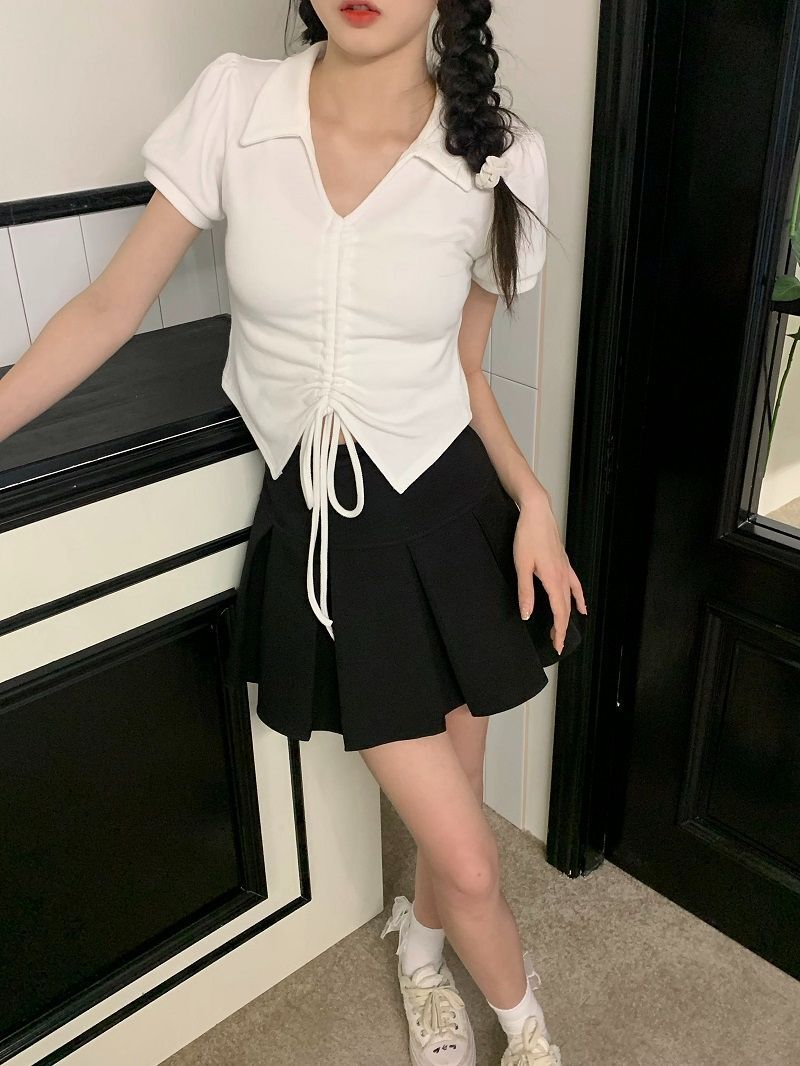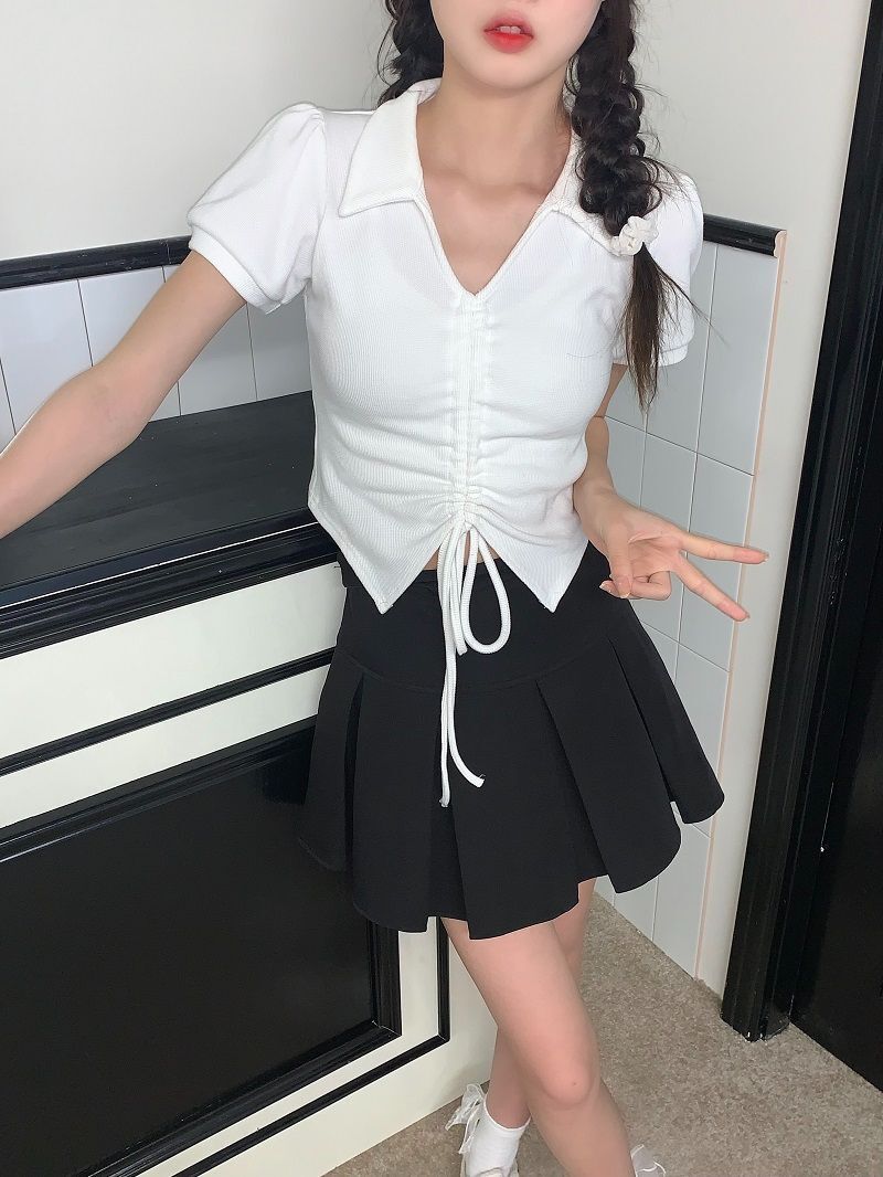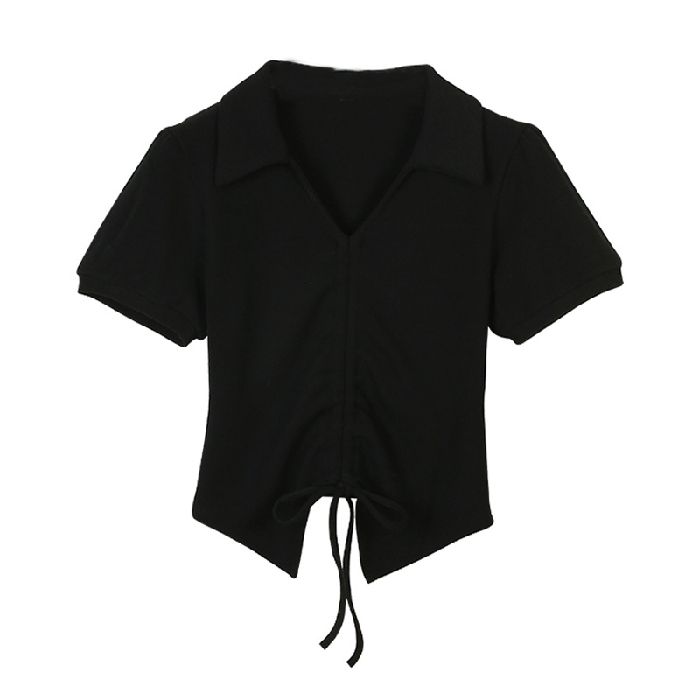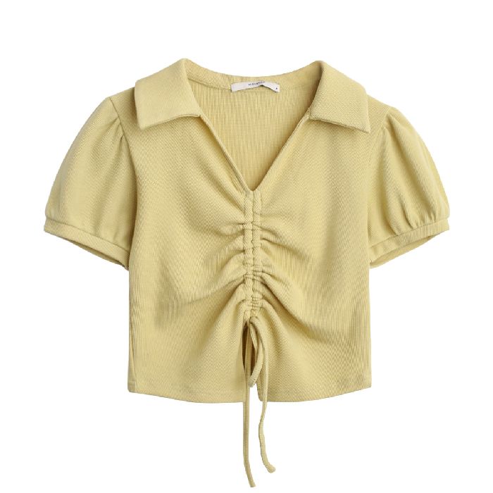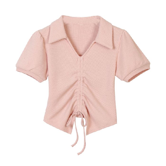 • 【现货】主播自选!正肩泡泡袖 抽绳V领 polo领 短款华夫