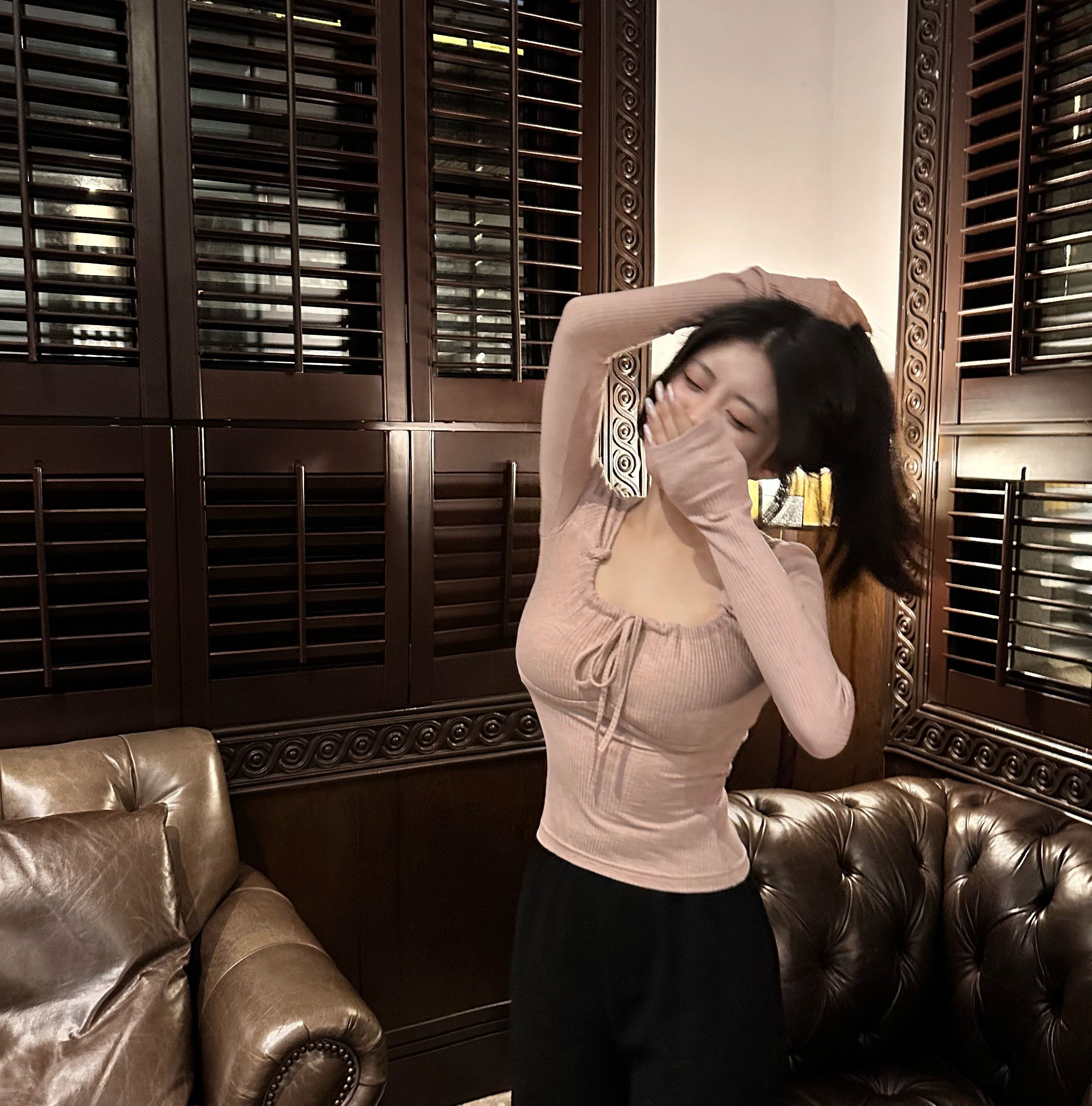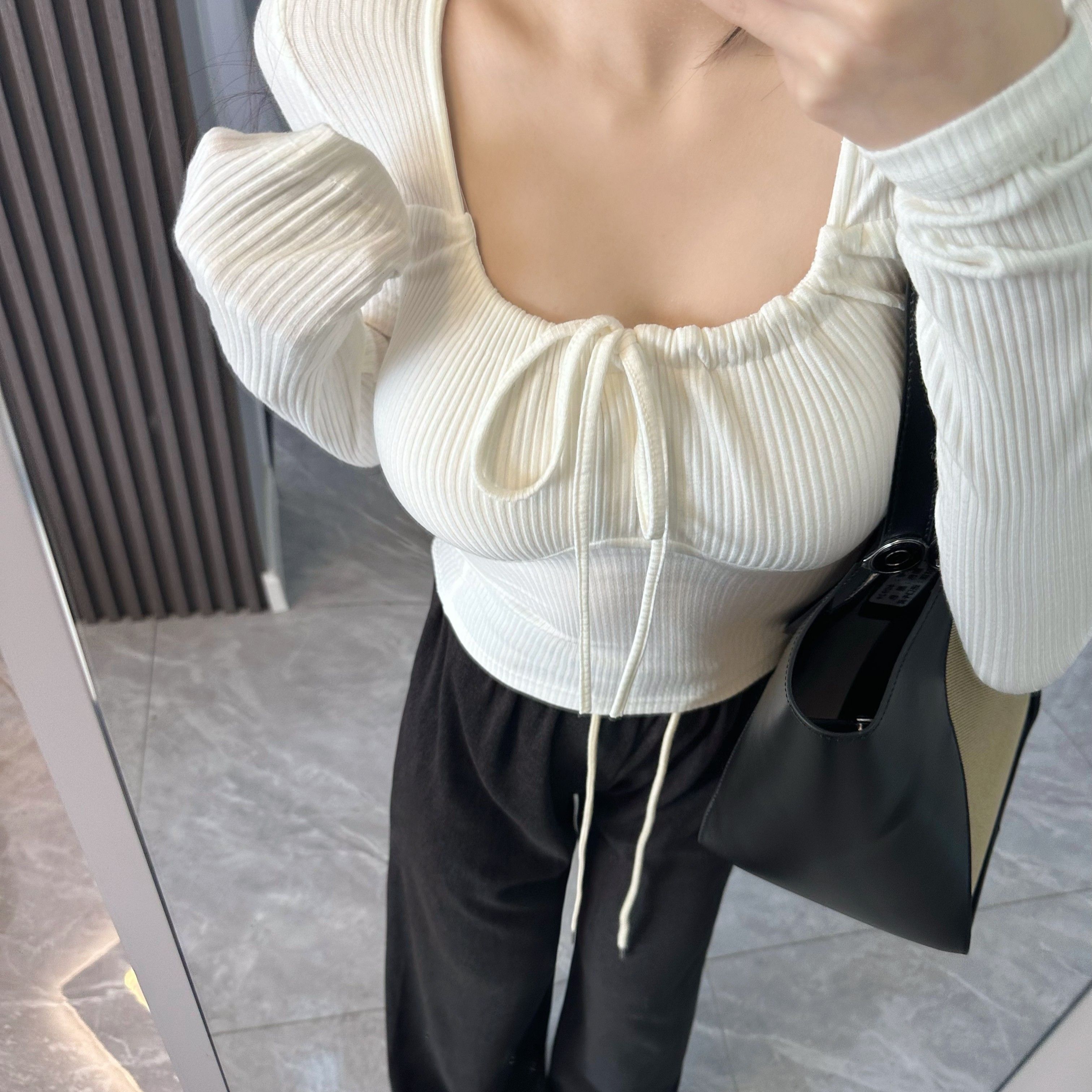 【现货】酒心乳酪 纯欲立显胸大腰细4色绑带长袖打底衫内搭上衣
