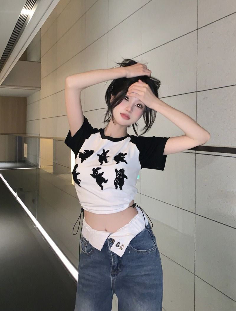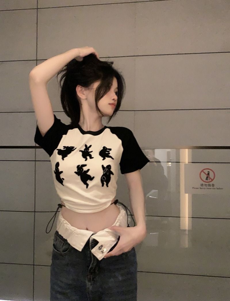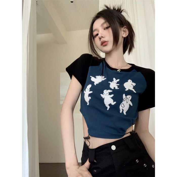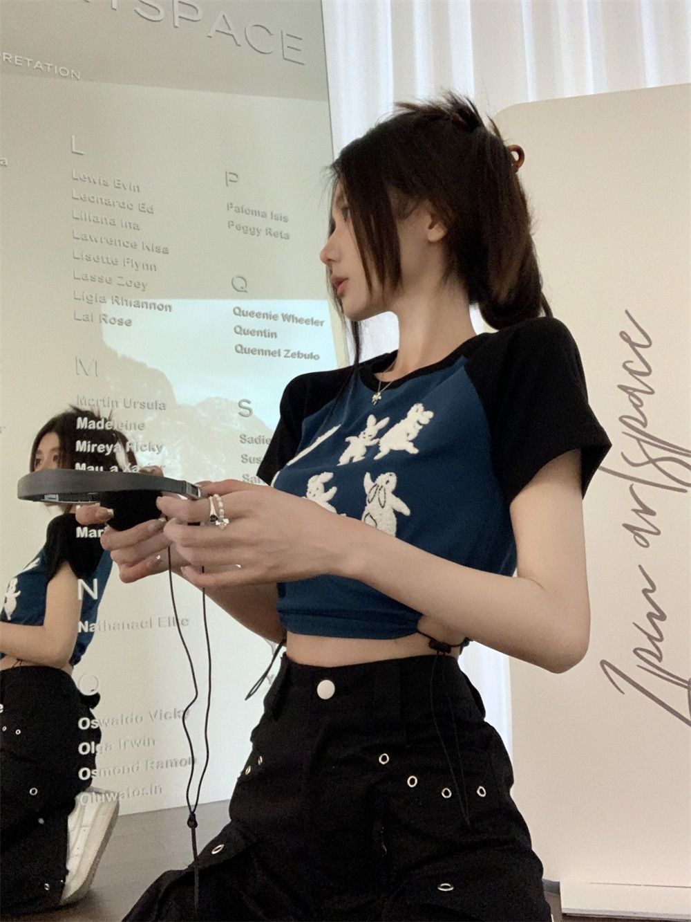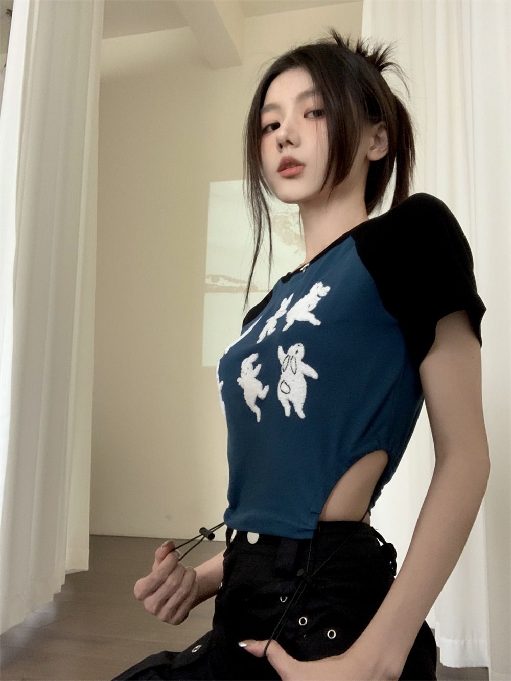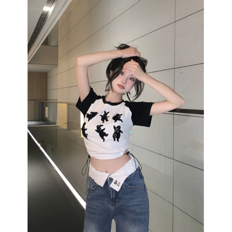 - 1*1纯棉 高弹力新款女三条杠条纹设计感上衣