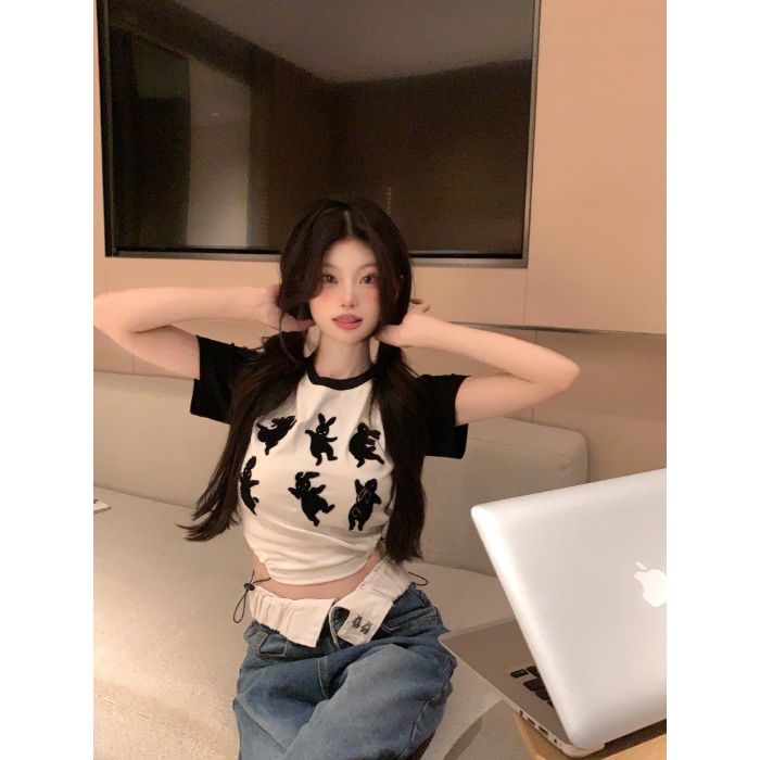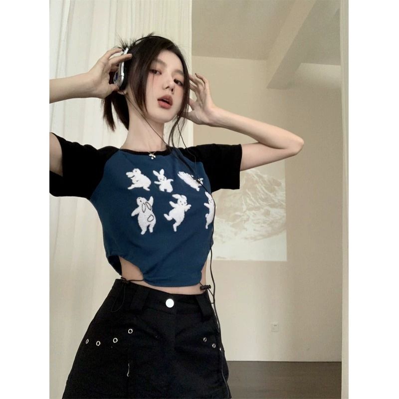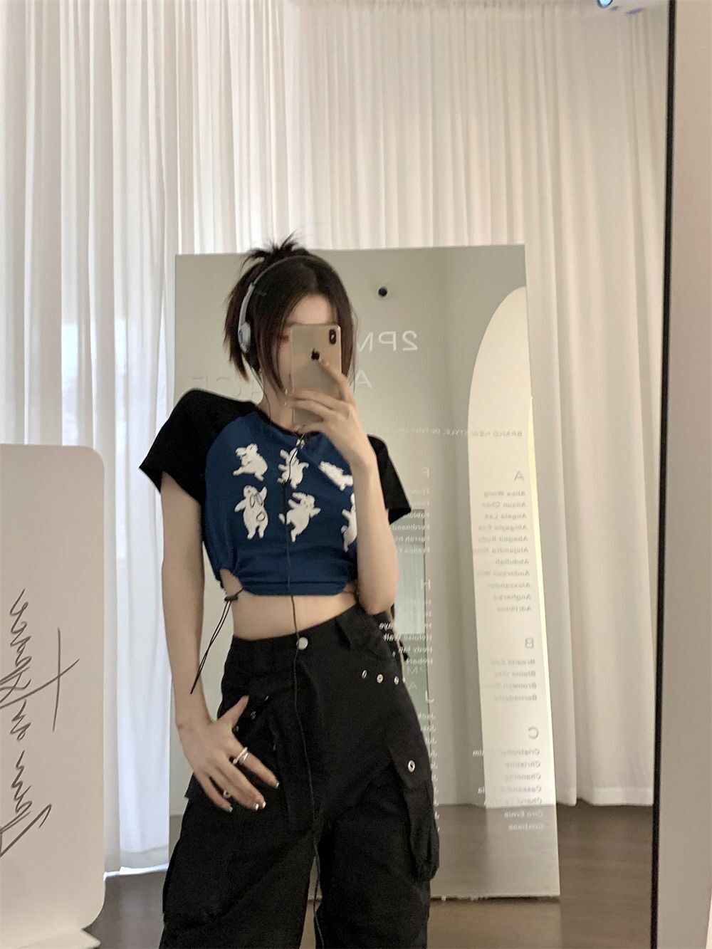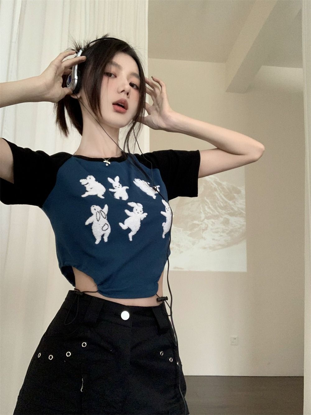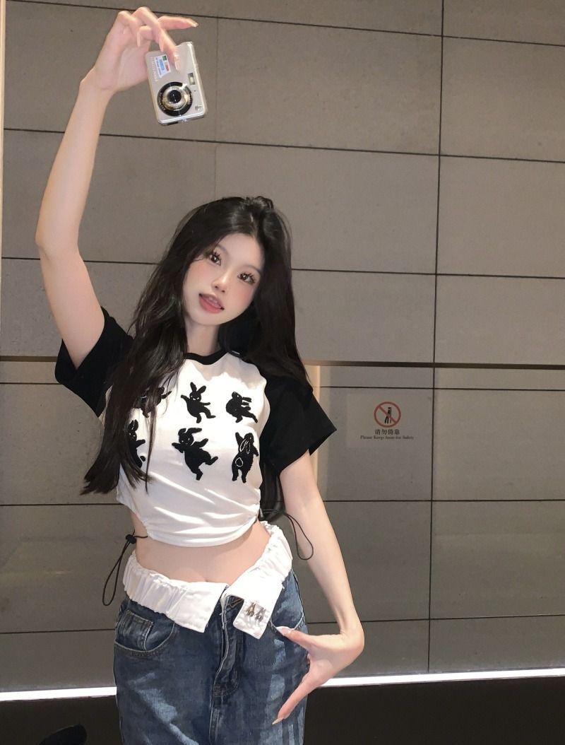 - 1*1纯棉 高弹力新款女三条杠条纹设计感上衣