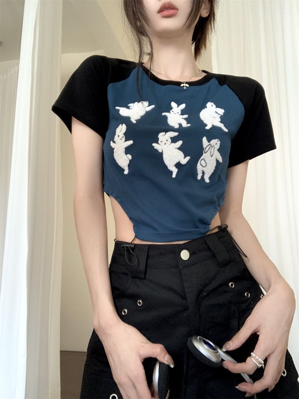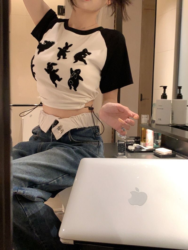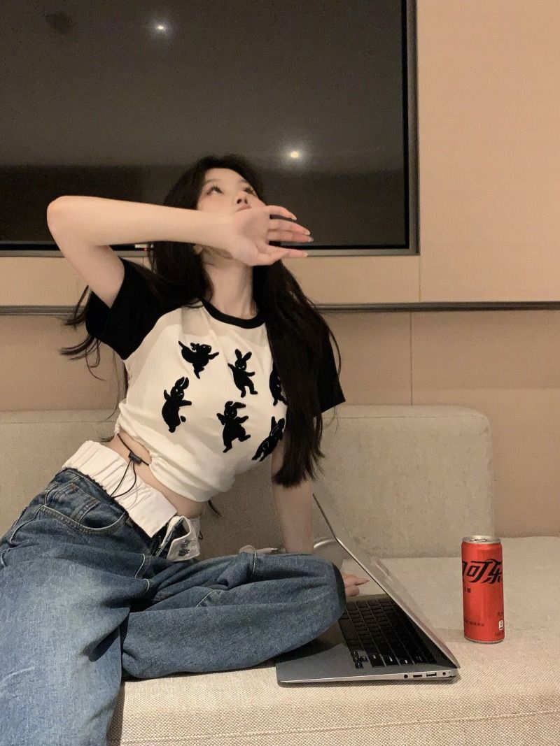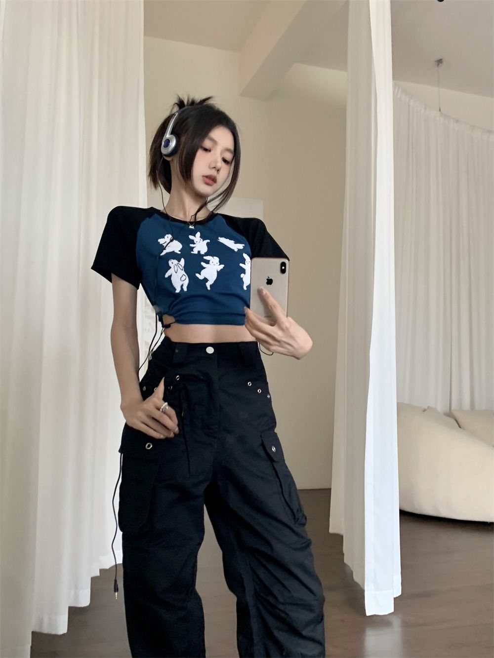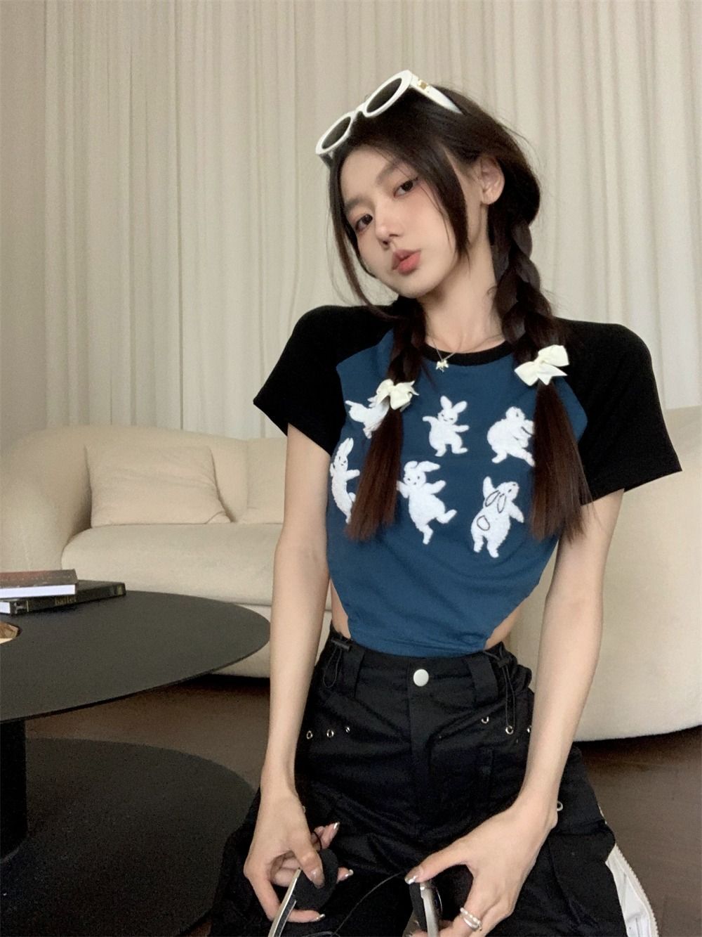- 1*1纯棉 高弹力新款女三条杠条纹设计感上衣
