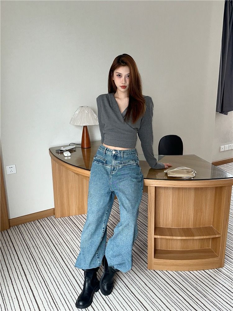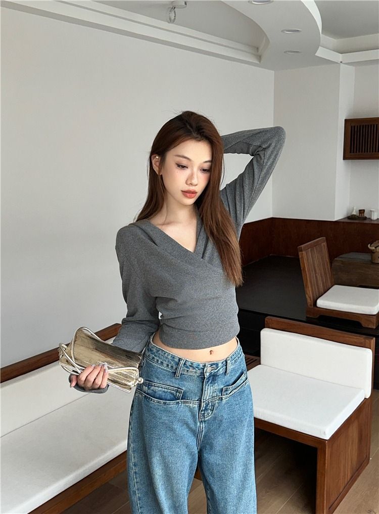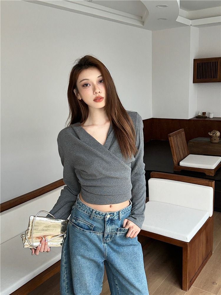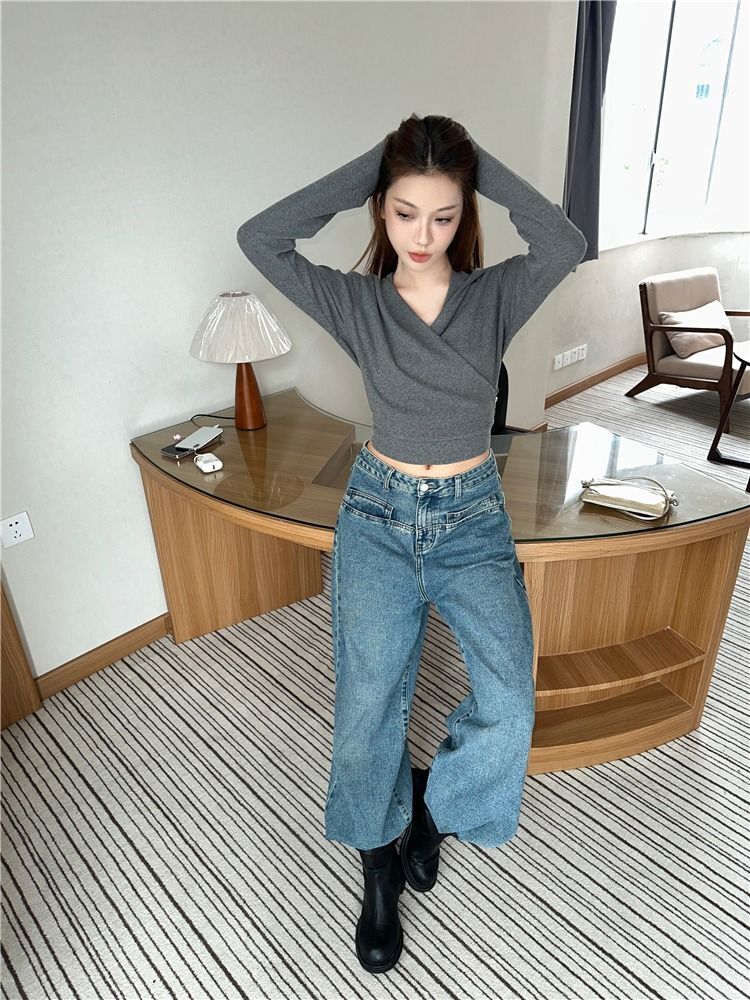 • MR【天猫质量 螺纹德绒】复古设计感交叉连帽长袖T恤女早秋短