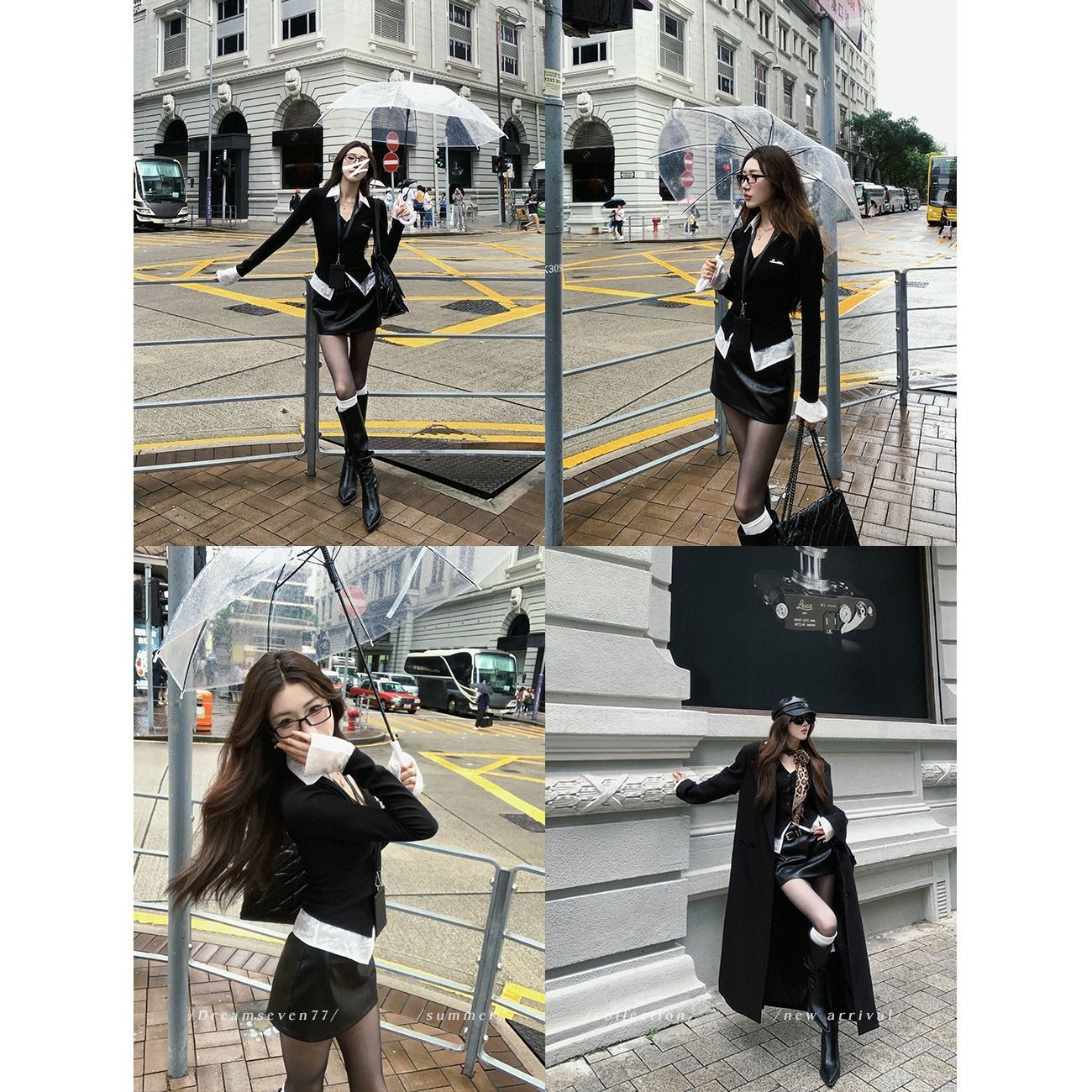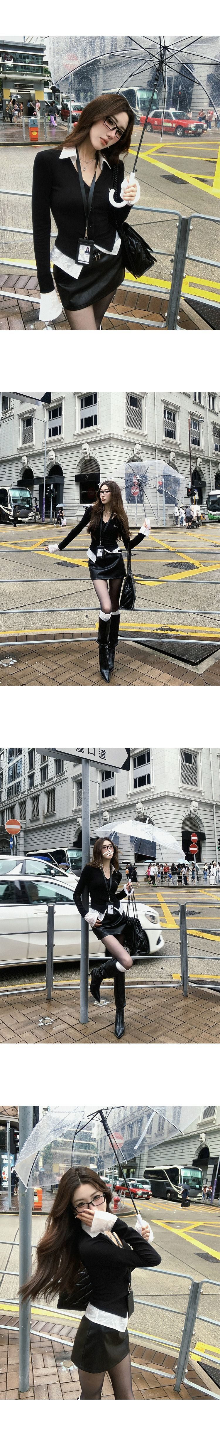 - 1*1纯棉 高弹力新款女三条杠条纹设计感上衣
