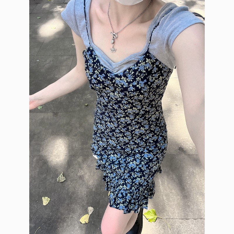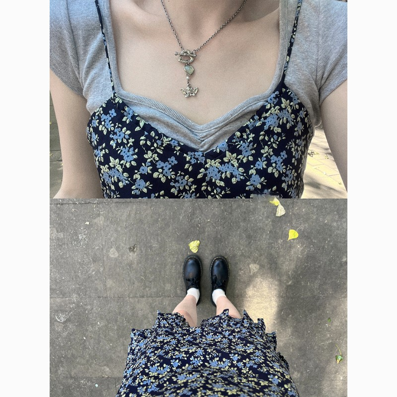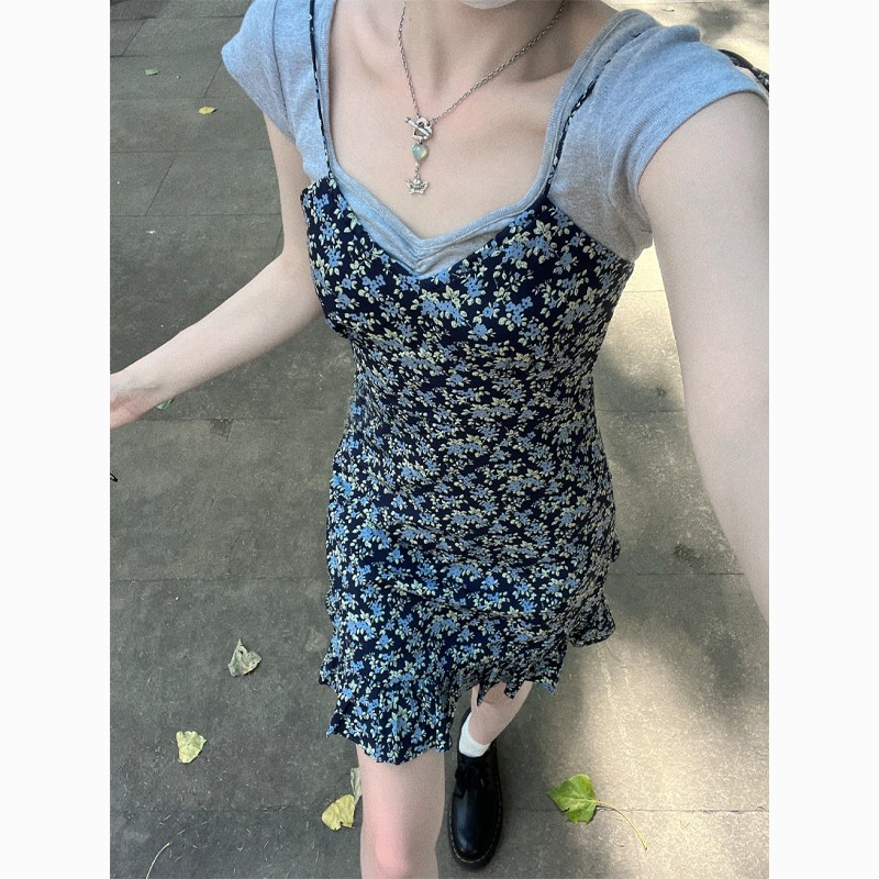 • 法式辣妹性感碎花吊带连衣裙子女夏季2024新款显瘦小个子短裙