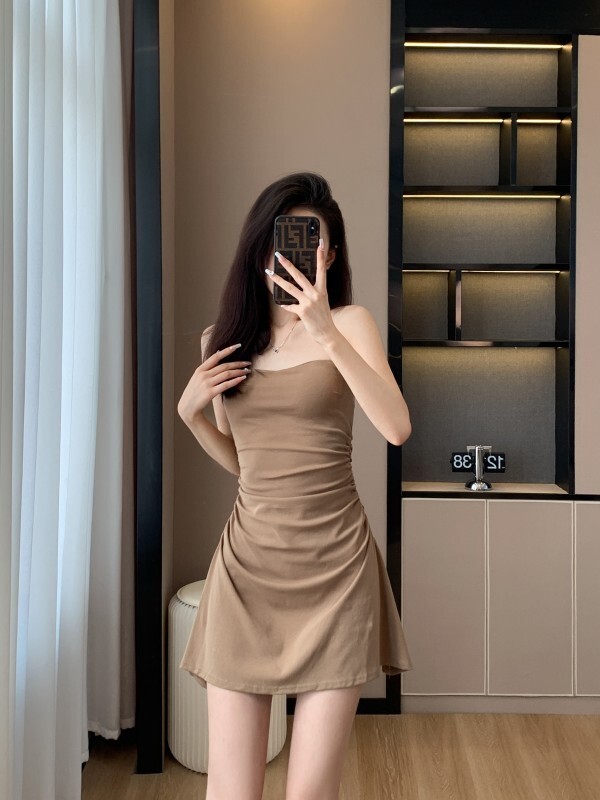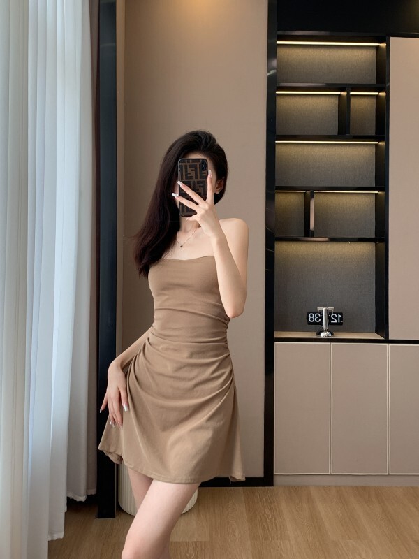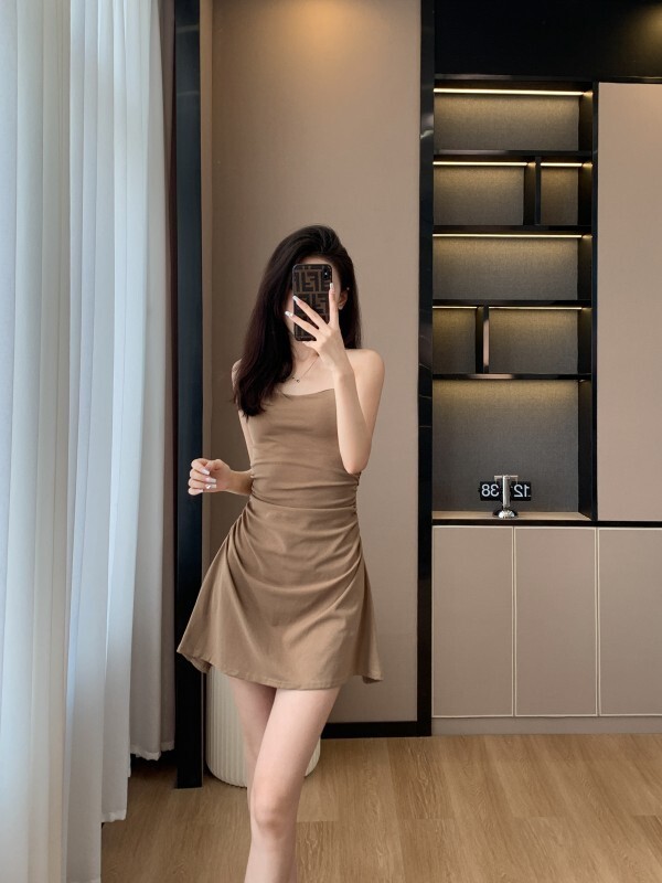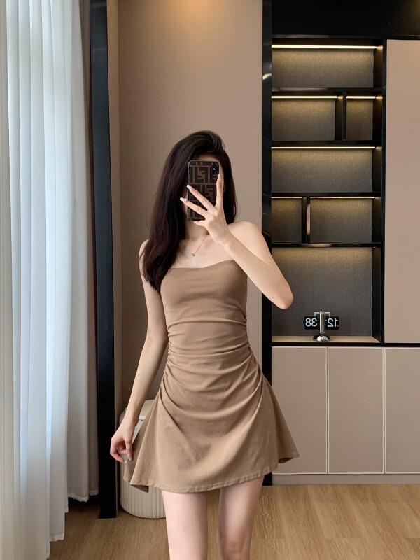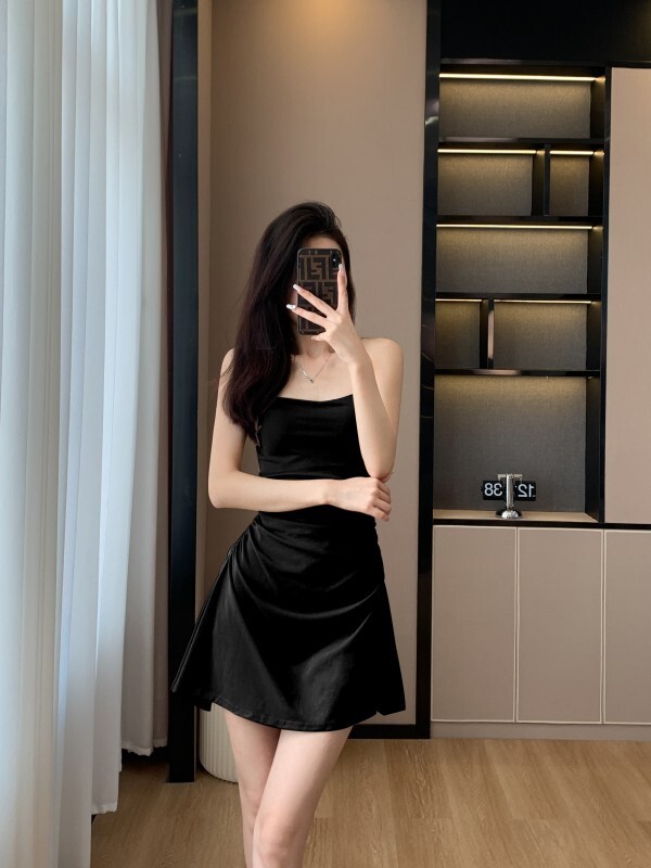 - 韩系假两件碎花吊带长裙修身收腰显瘦垂坠连衣裙