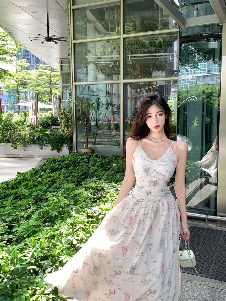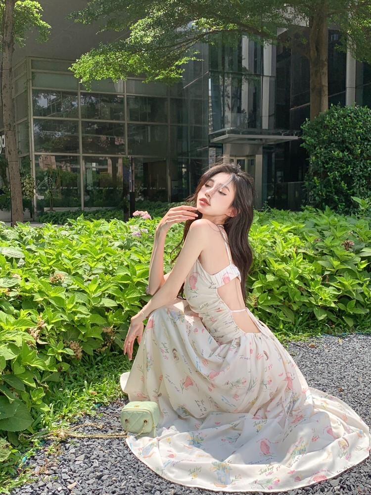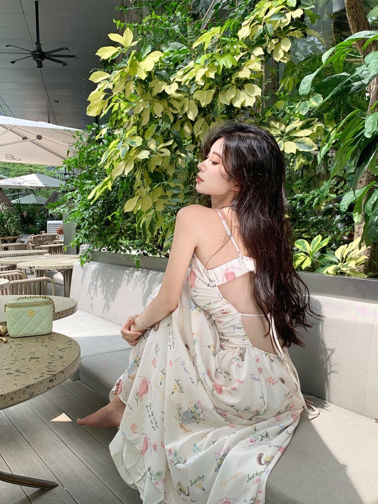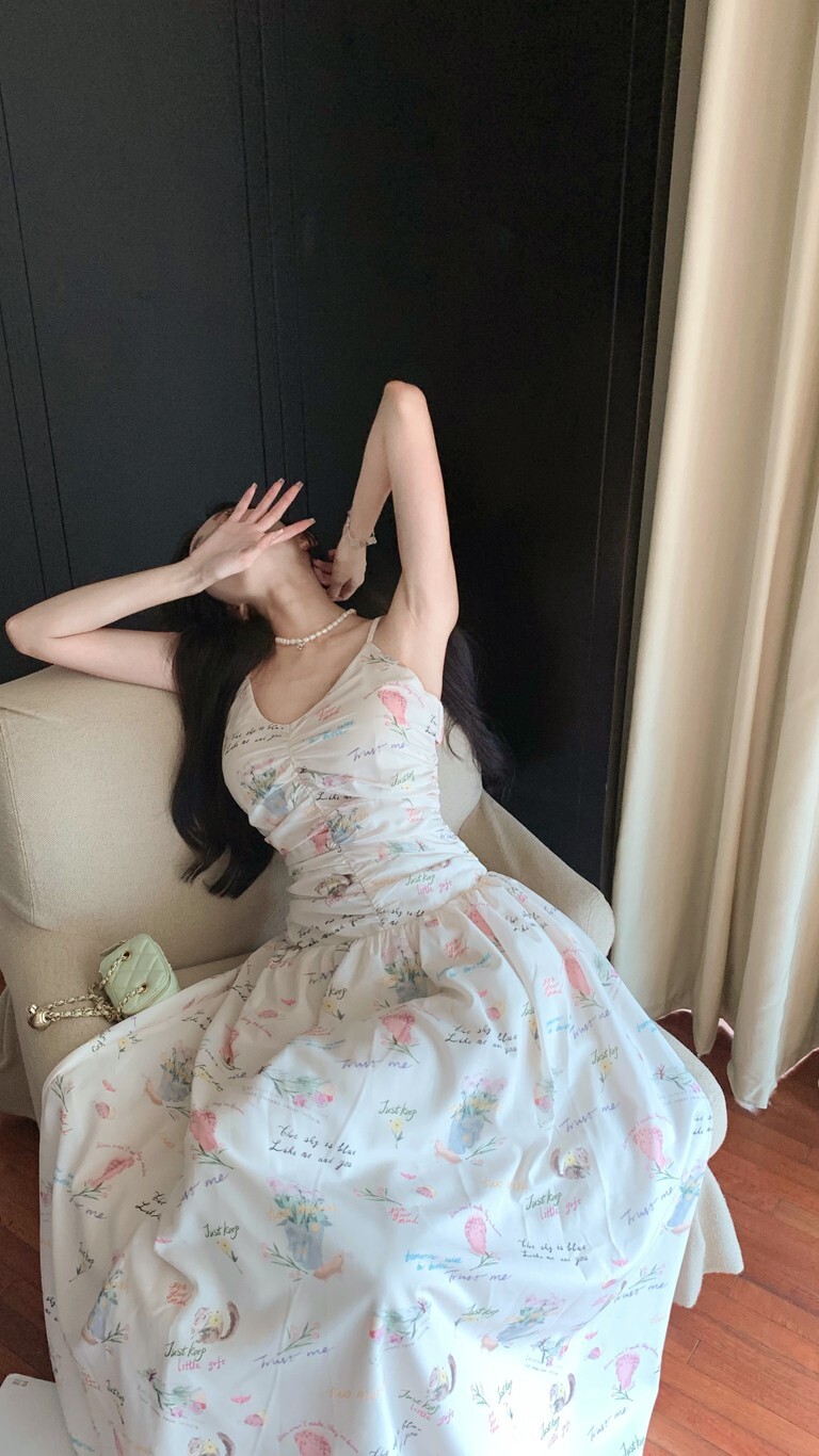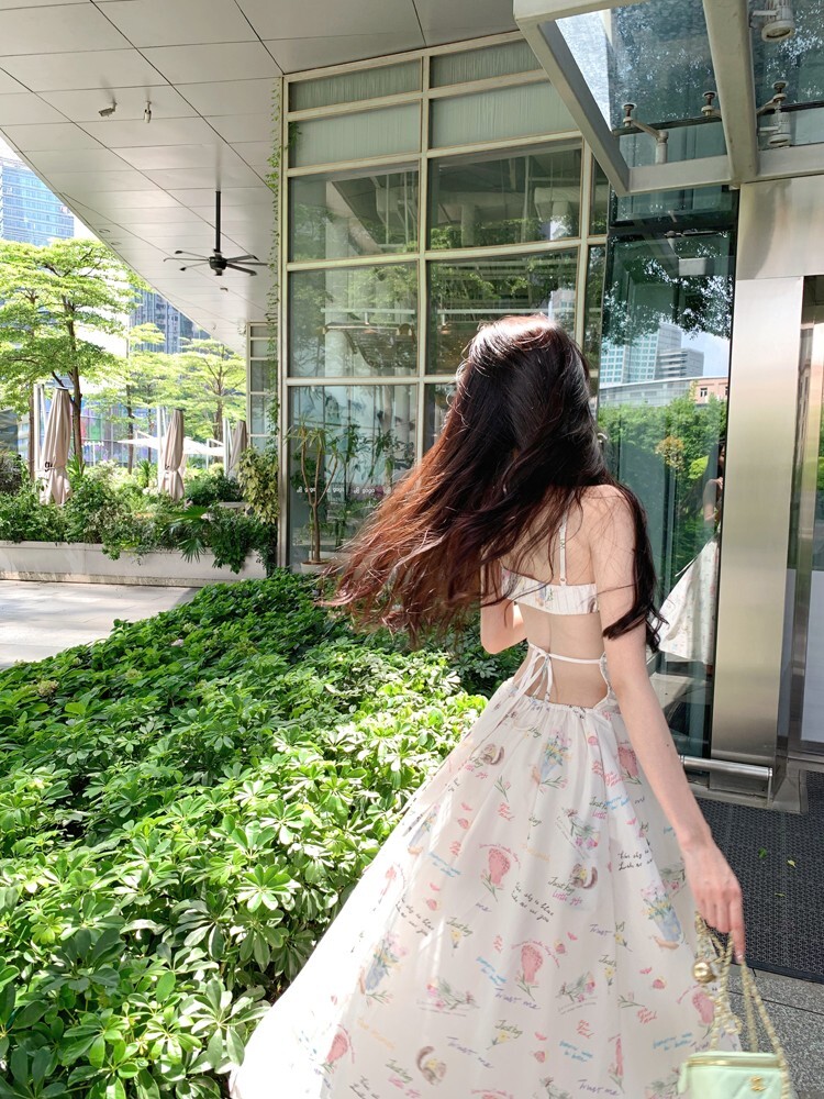 - 复古海边度假风格子连衣裙简约气质背心裙