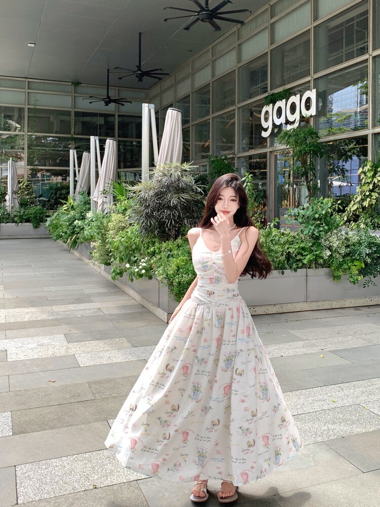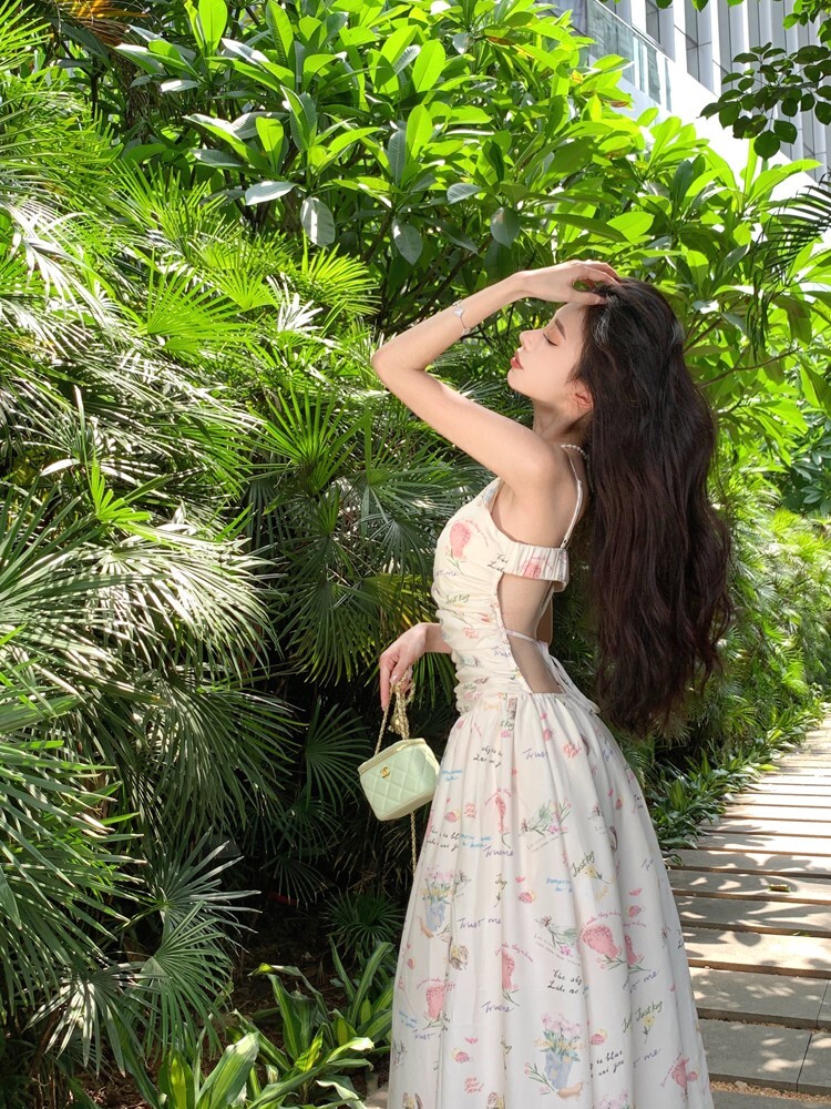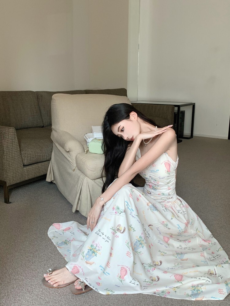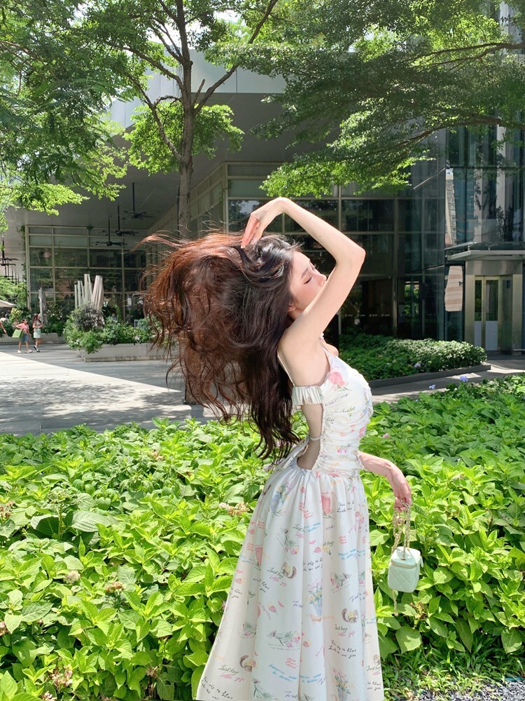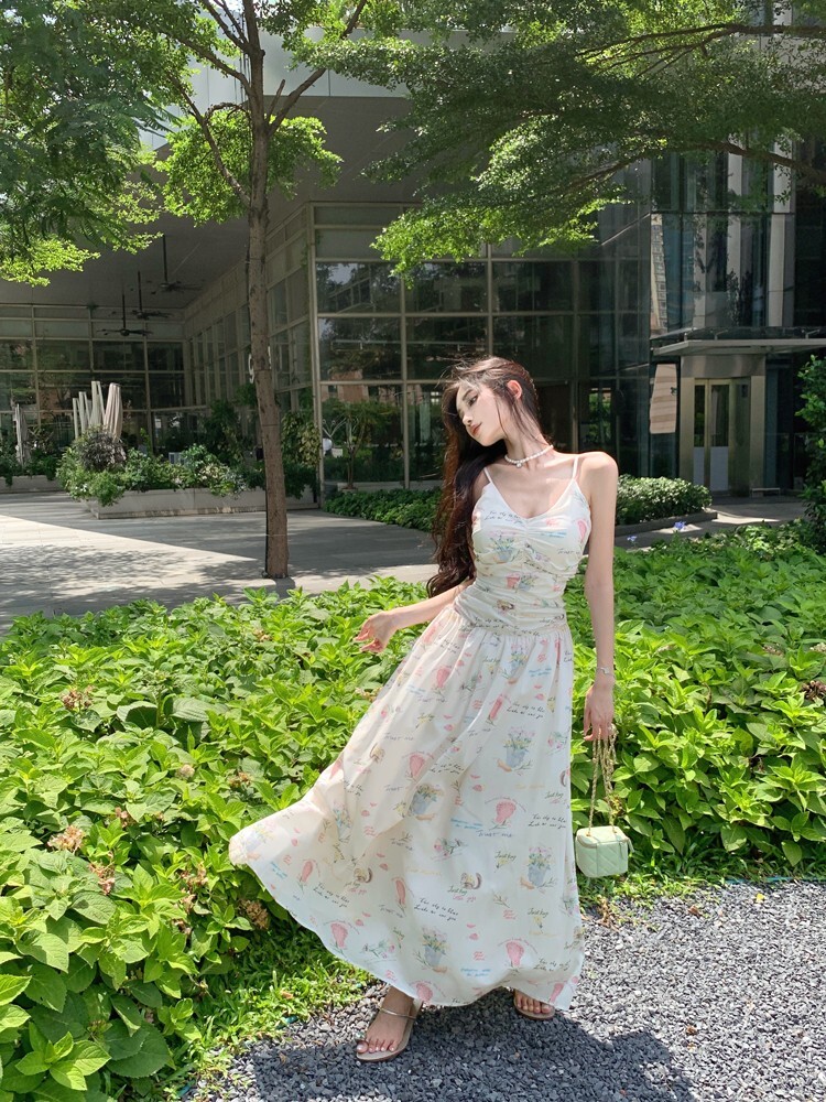 - 复古海边度假风格子连衣裙简约气质背心裙