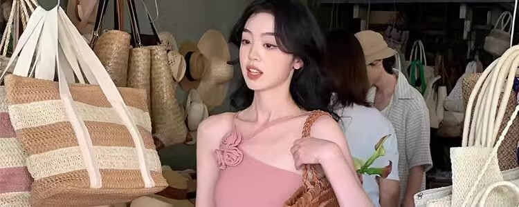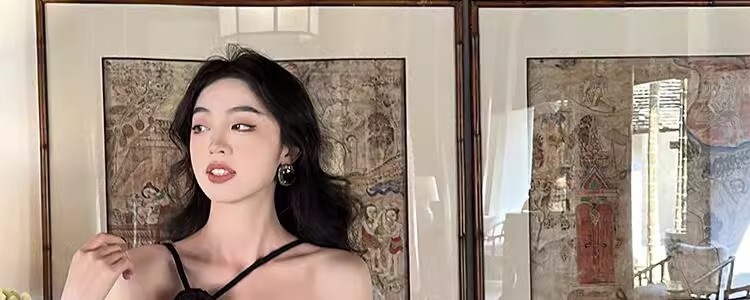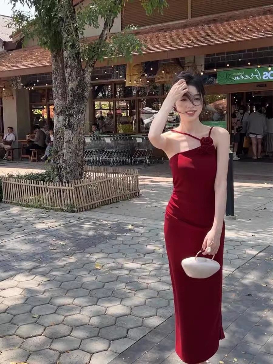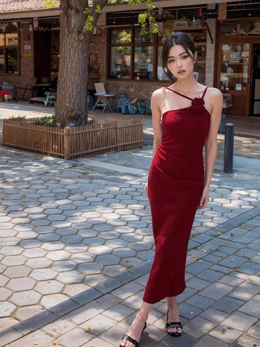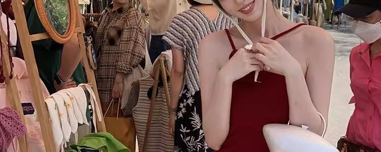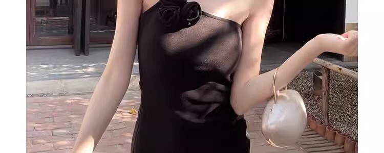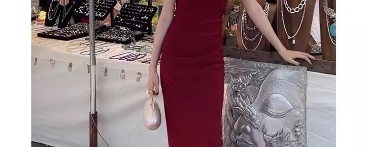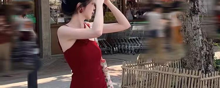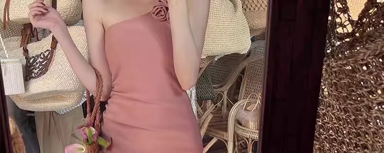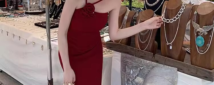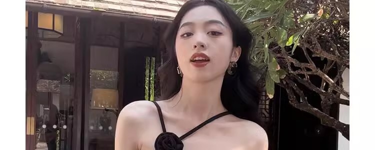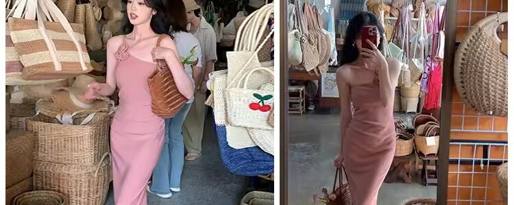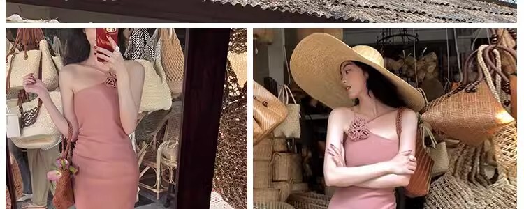 • 法式复古花朵挂脖吊带连衣裙女2024春季新款设计感修身显瘦肯