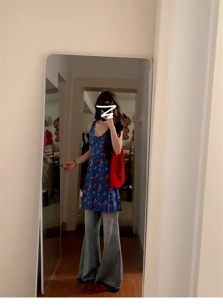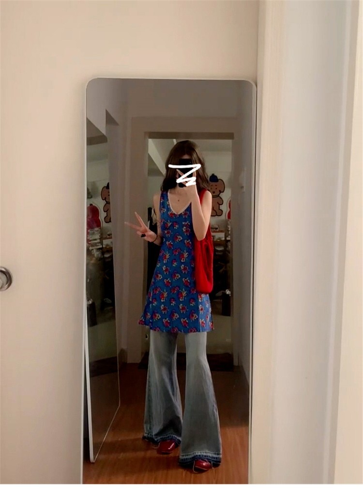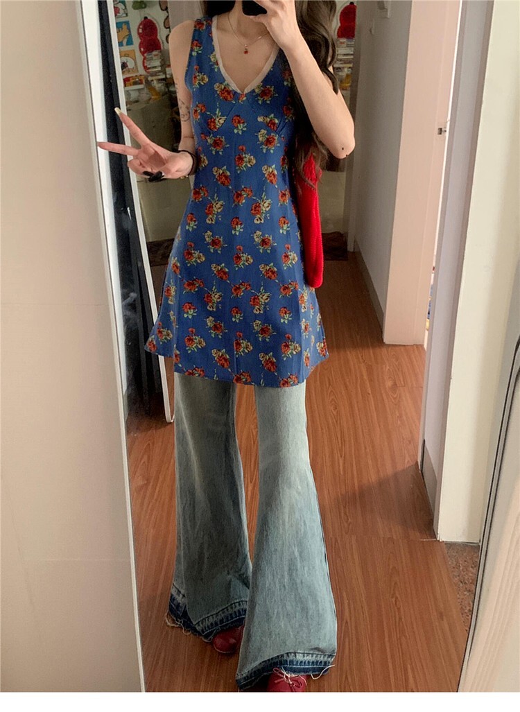 • 法式蓝色无袖碎花背心连衣裙子女夏季2025新款海边度假风气质