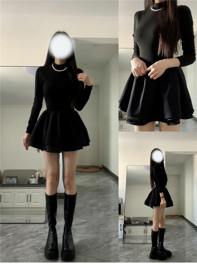 • 千金小黑裙公主连衣裙女秋冬季大衣内搭蓬蓬裙法式气质收腰短裙子