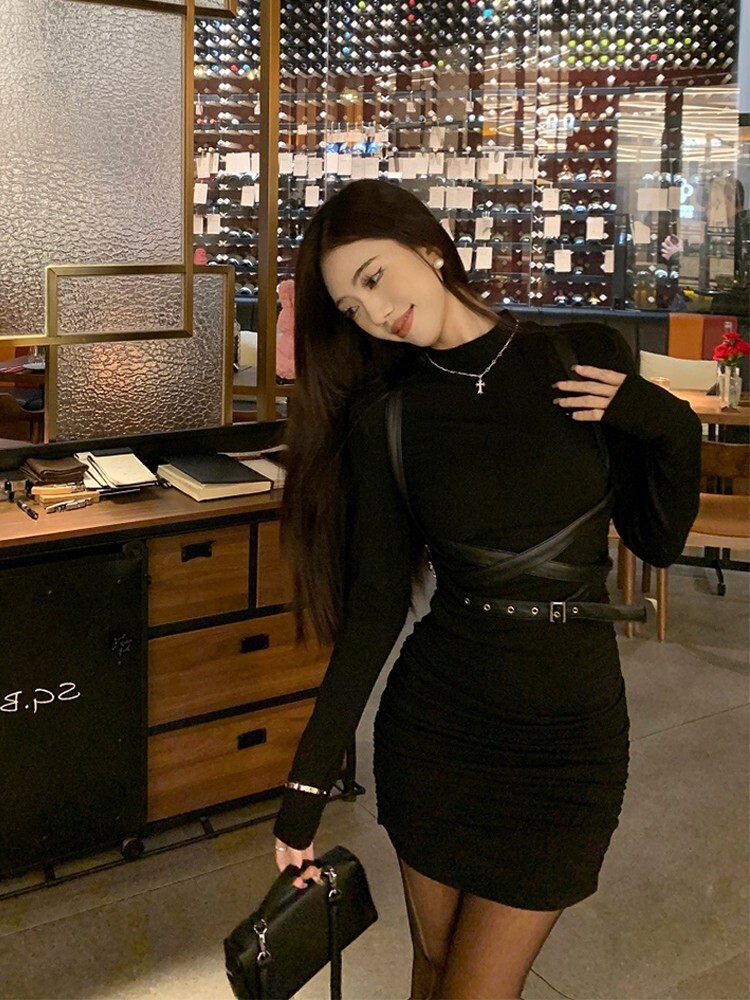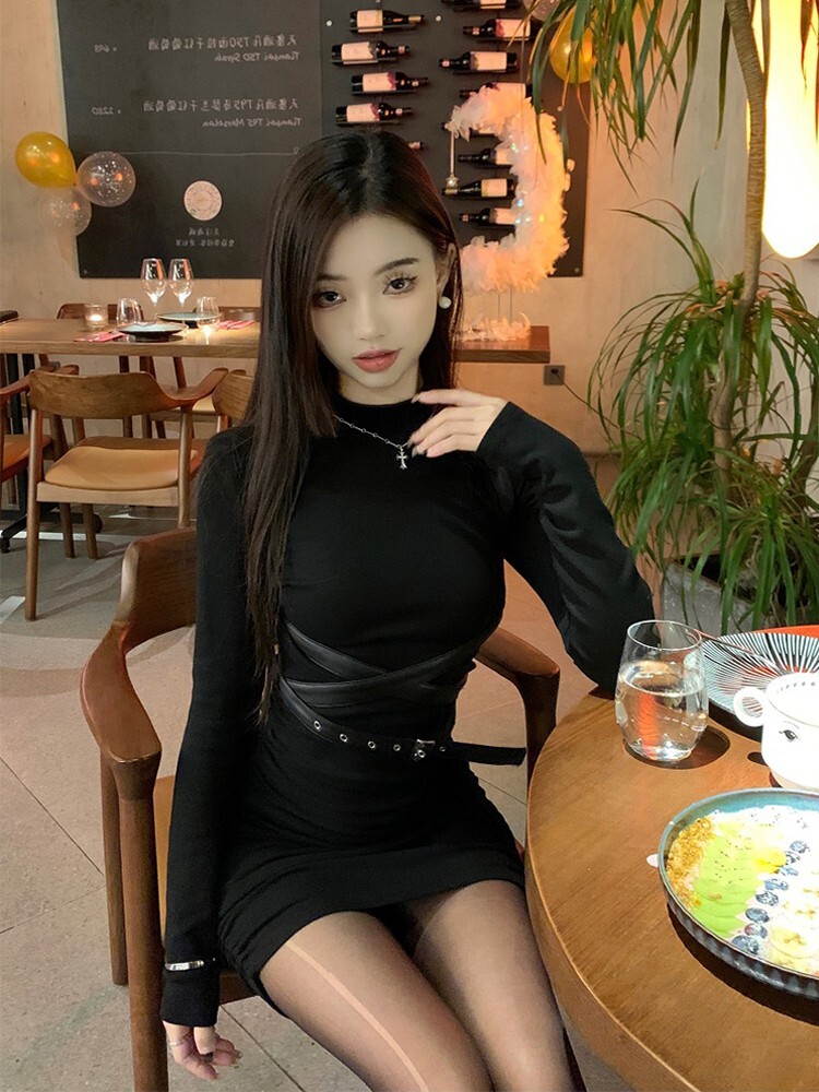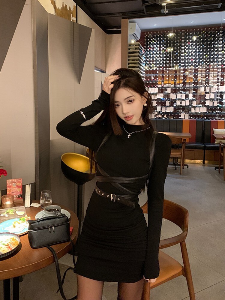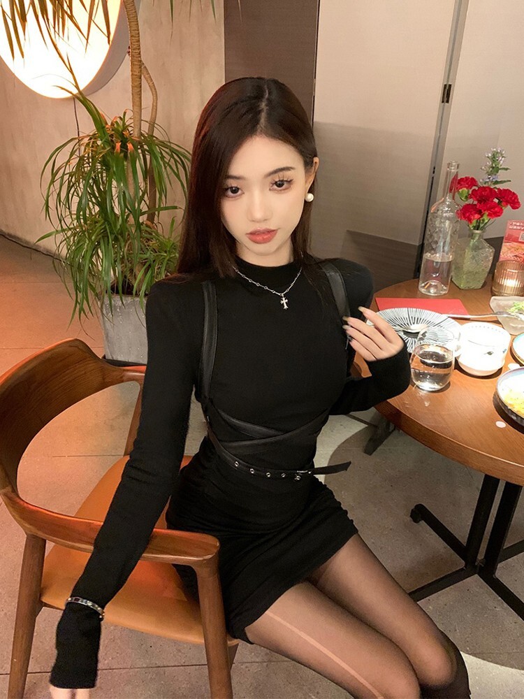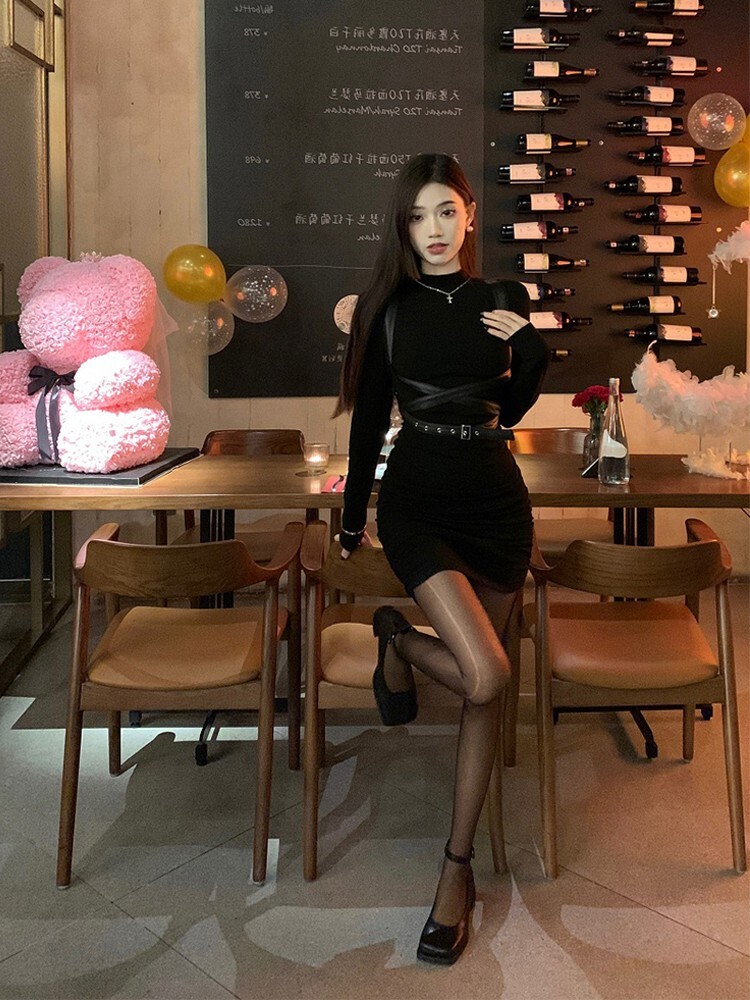 • 黑色性感辣妹连衣裙子女早秋季2024年新款内搭打底紧身收腰包
