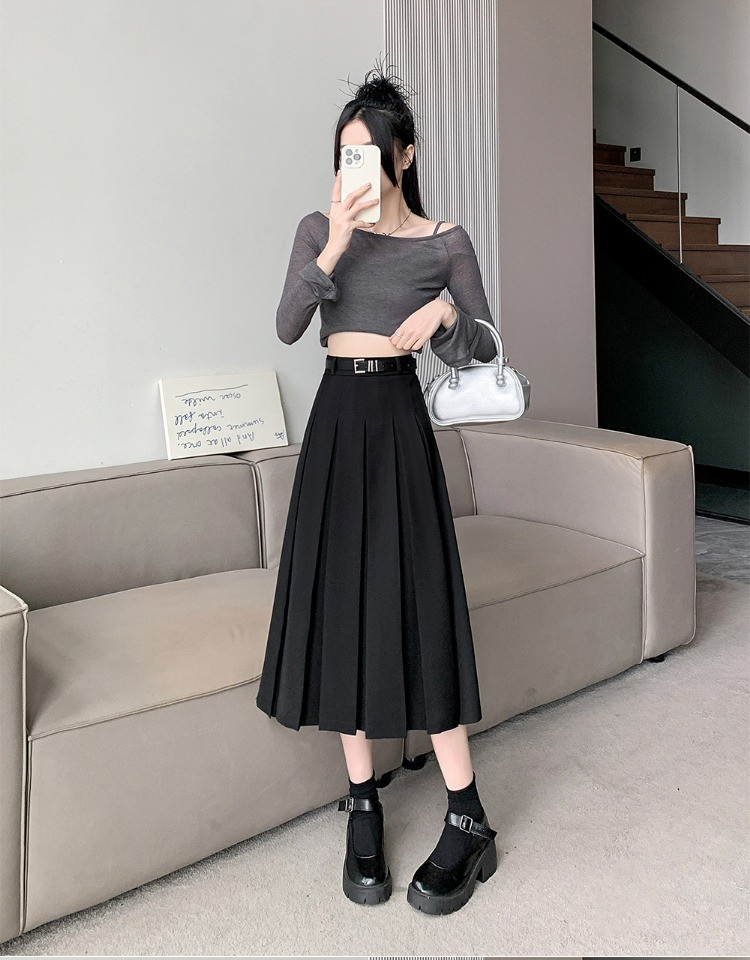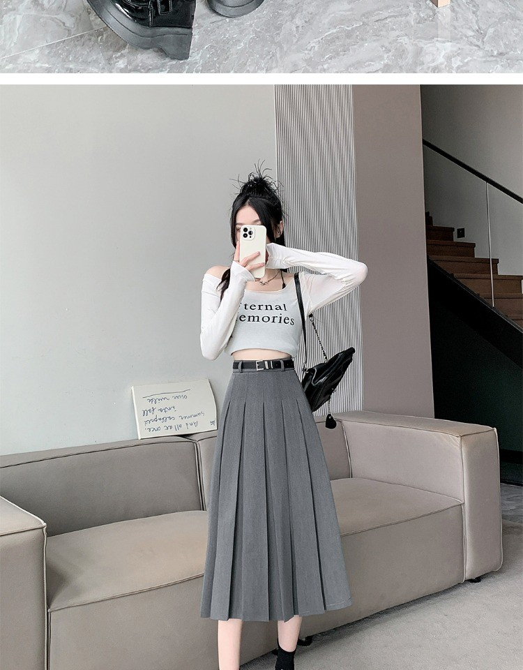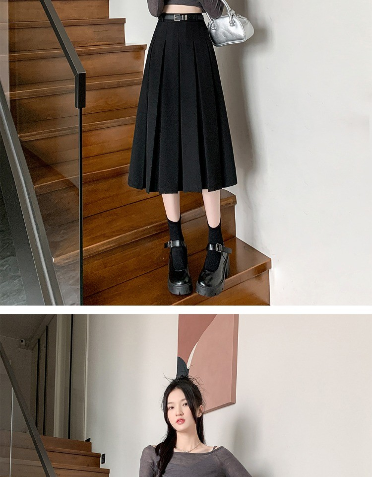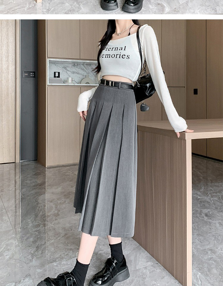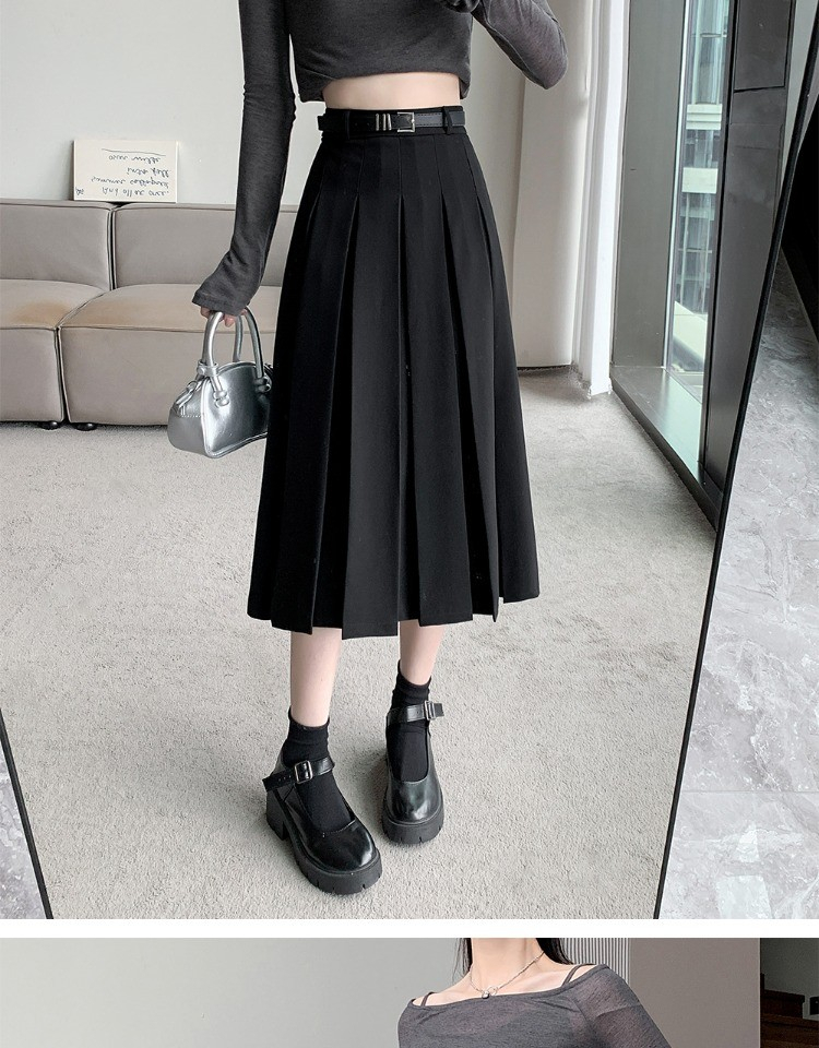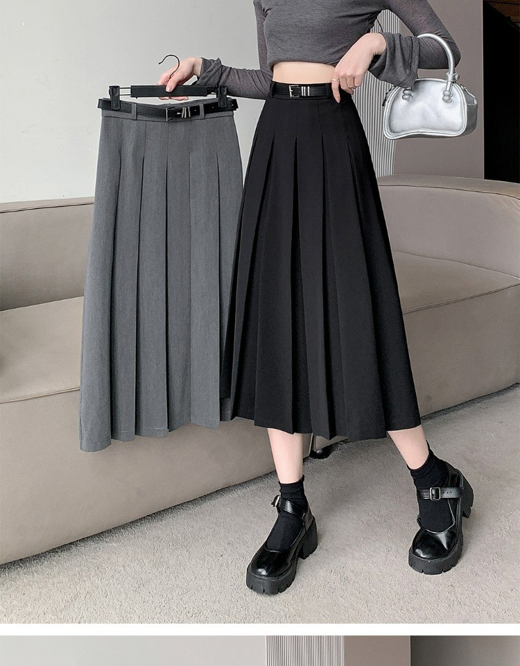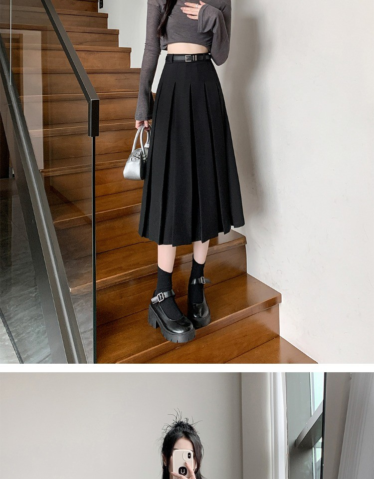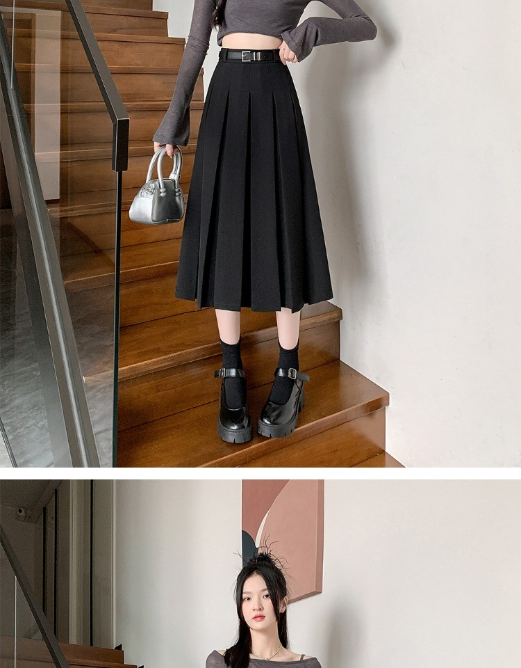 • 大码纯色西装半身裙女春季百搭中长款裙子胖mm高腰显瘦休闲百褶