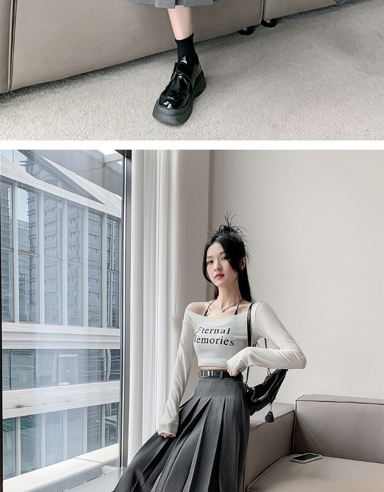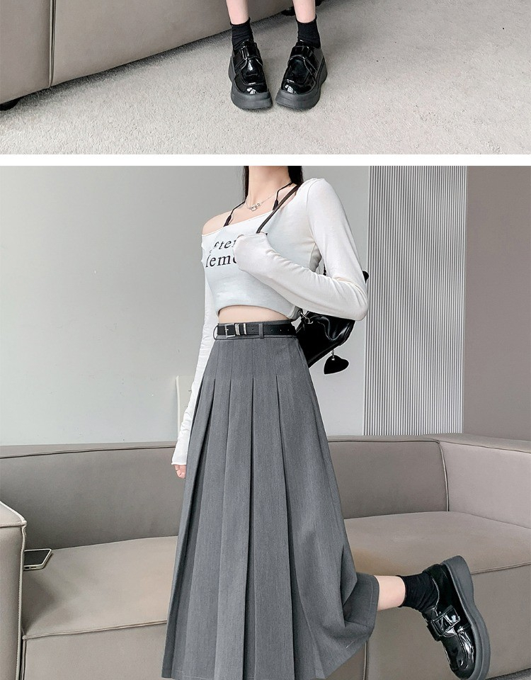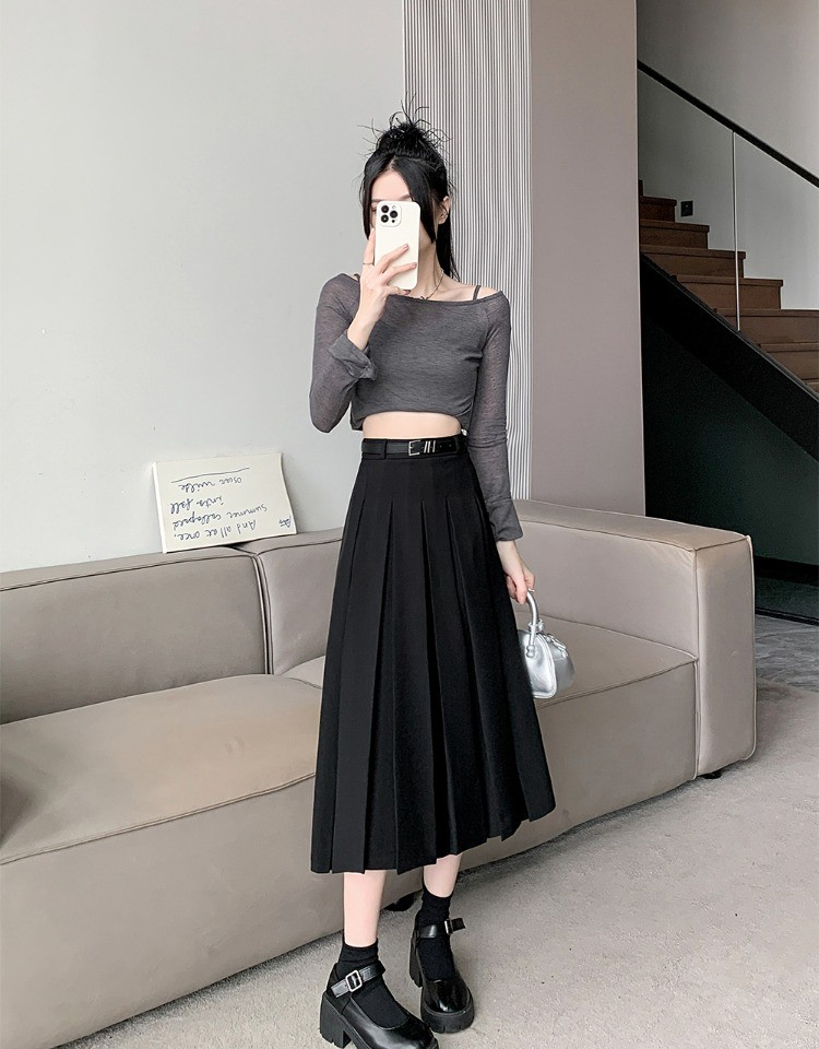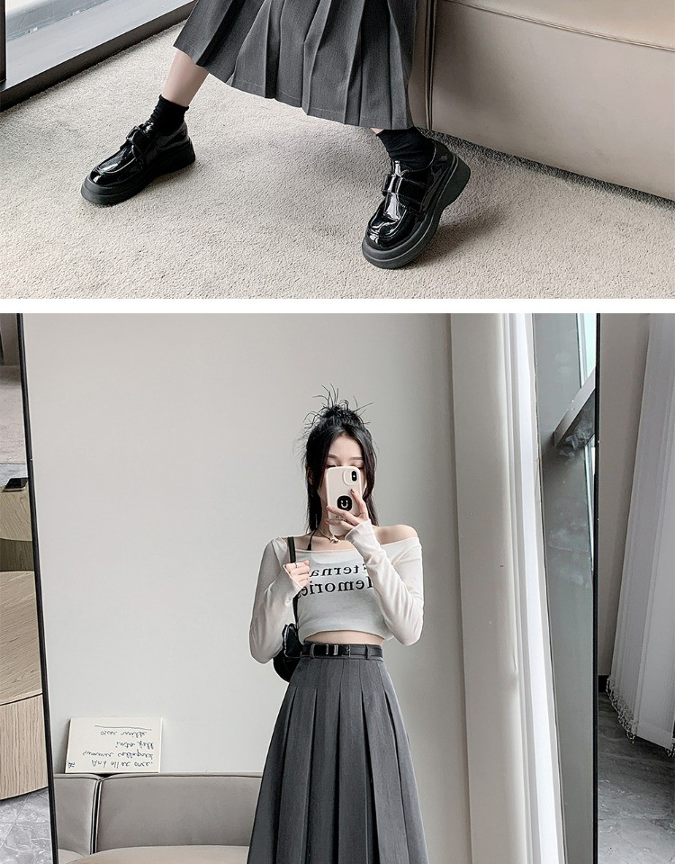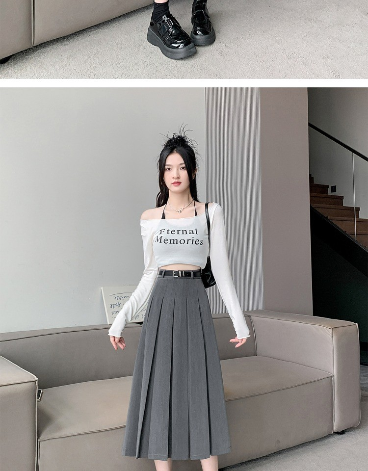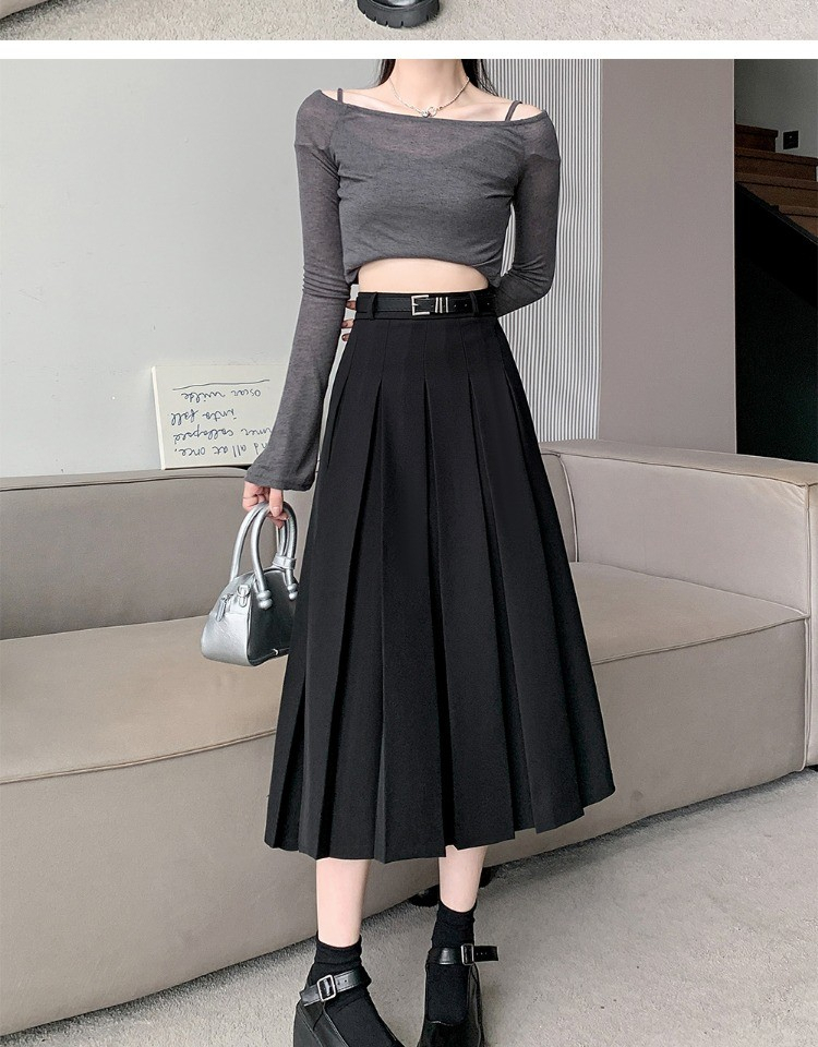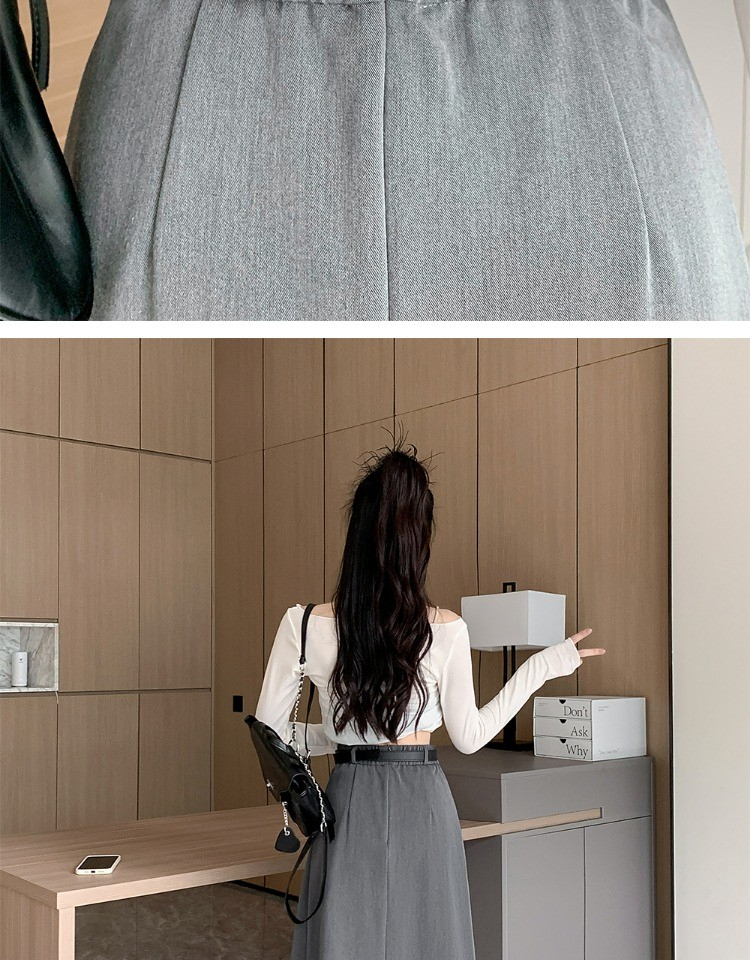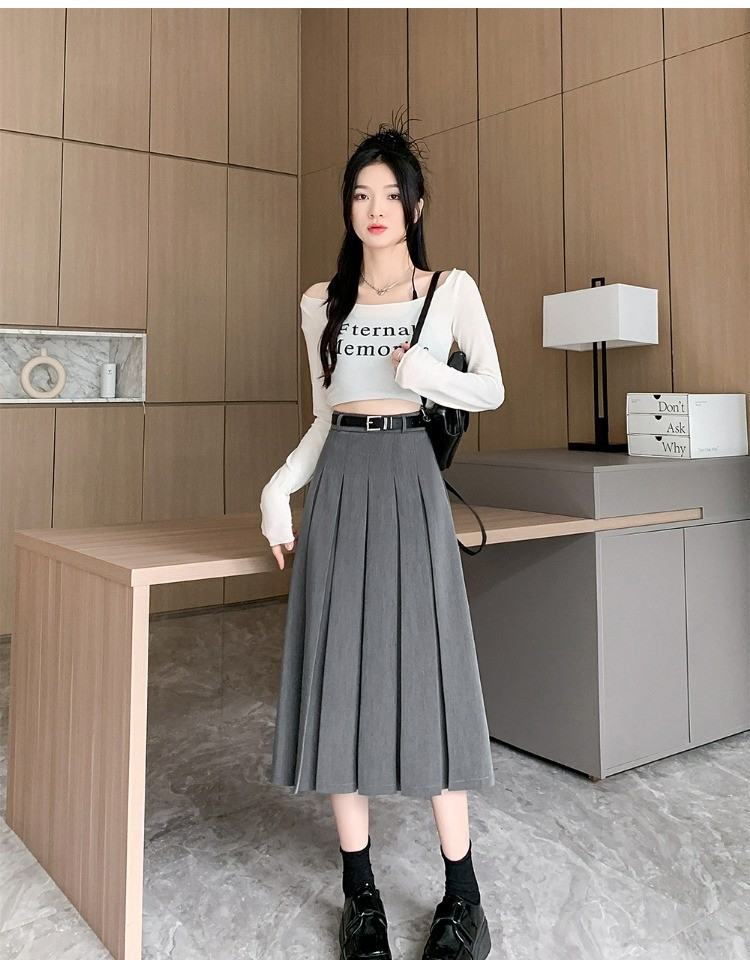 • 大码纯色西装半身裙女春季百搭中长款裙子胖mm高腰显瘦休闲百褶
