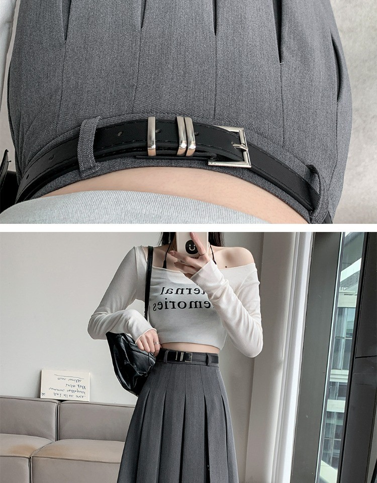 大码纯色西装半身裙女春季百搭中长款裙子胖mm高腰显瘦休闲百褶