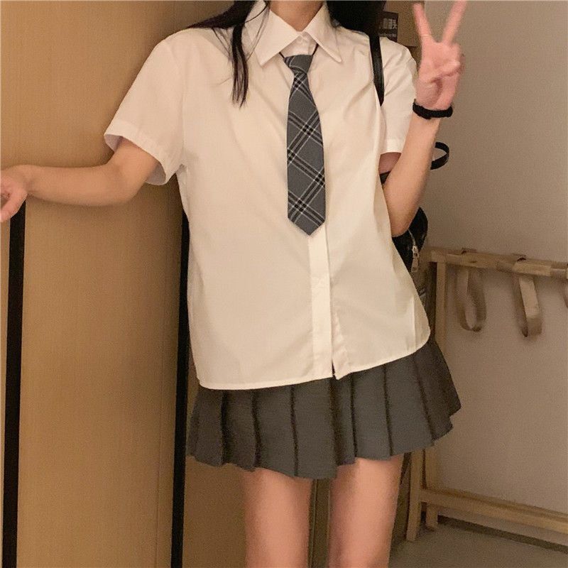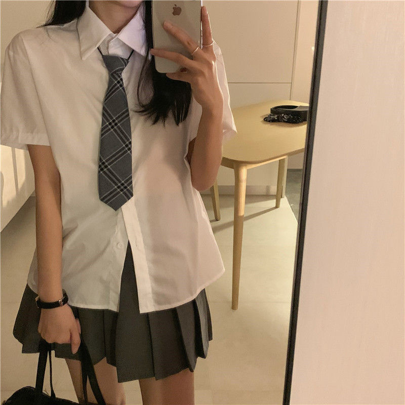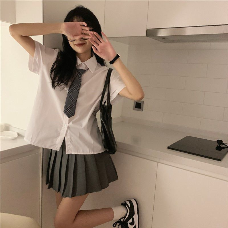 短袖衬衫t恤半身裙连衣裙子百褶裙女夏季两件套装短裙衬衣休闲裤