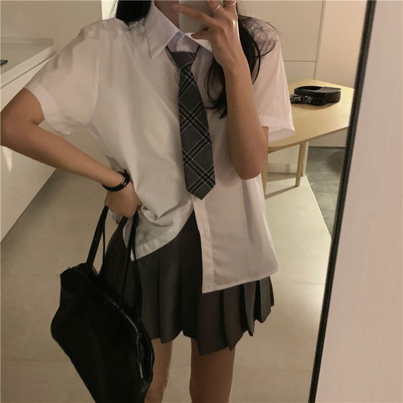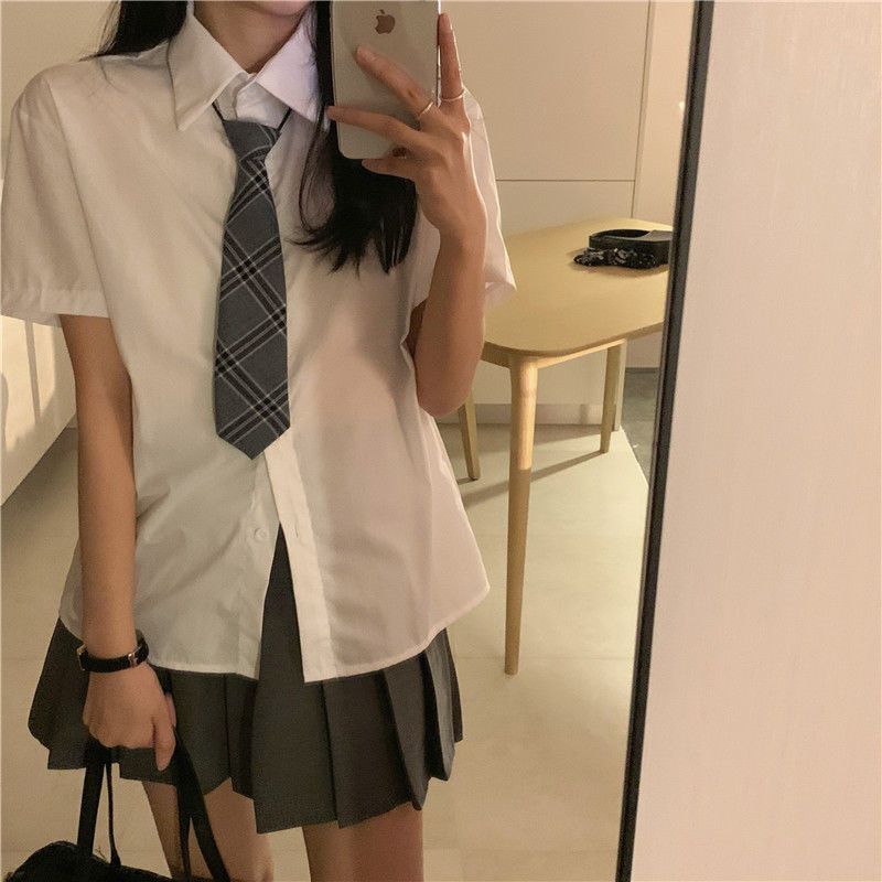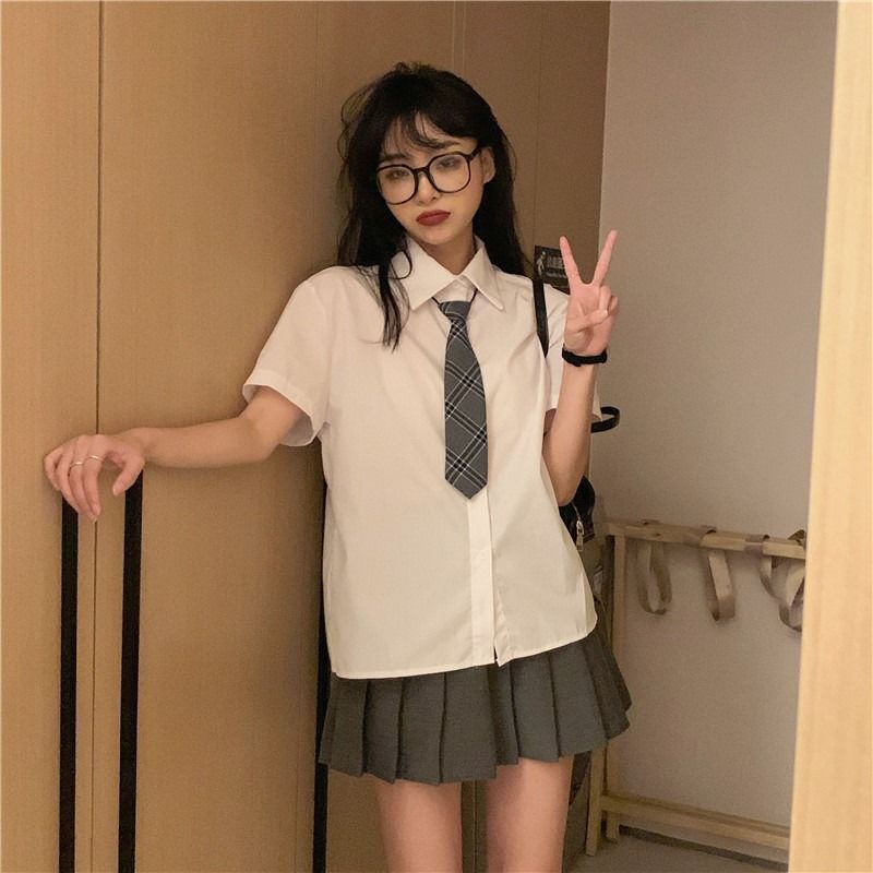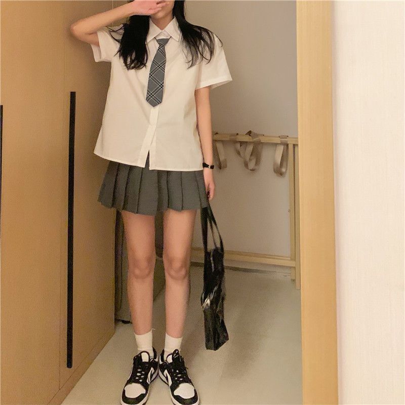 • 短袖衬衫t恤半身裙连衣裙子百褶裙女夏季两件套装短裙衬衣休闲裤